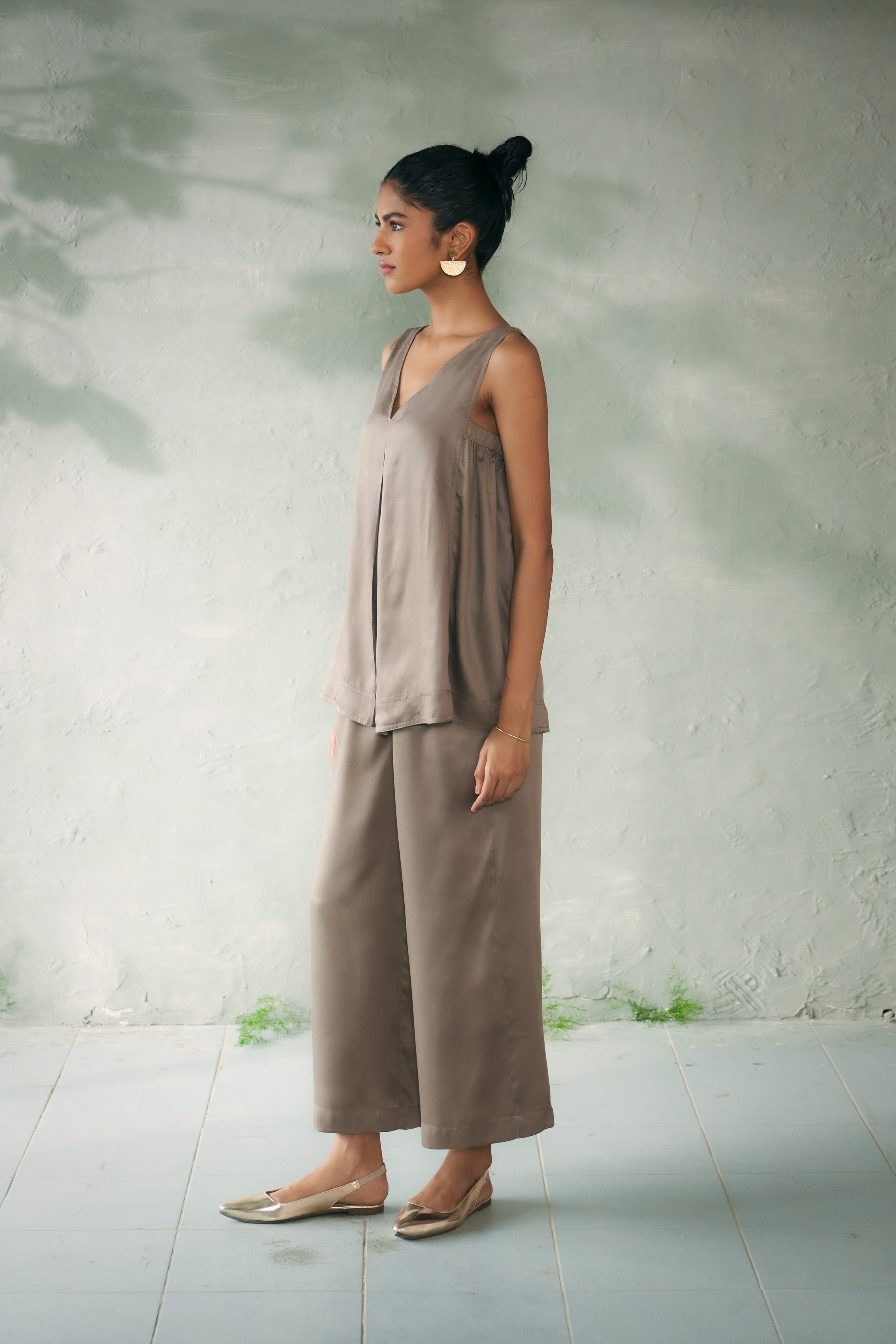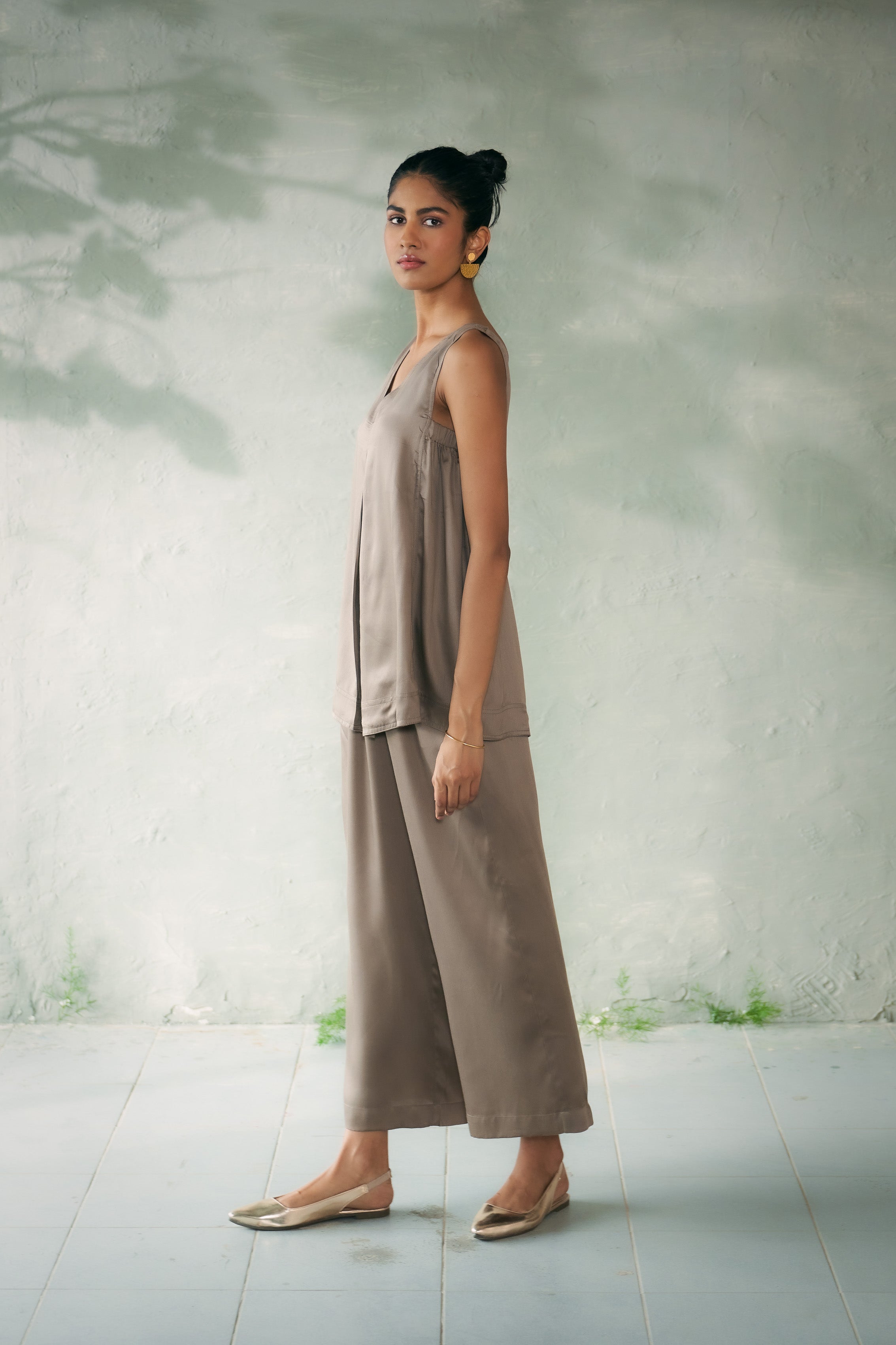 Light as a thought and grounded in grace — the Skywriting Co-ord Set in mousse hue is soft, fluid, and quietly celebratory. The sleeveless top flows in an A-line cut with a flattering V-neckline and front pleat, while elasticated side panels add gentle gathers for movement. A golden flying kite, hand-embroidered with care, lends a poetic touch — like skywriting in thread. The matching flared pants come with a drawstring waistband and side pockets, offering comfort with an elevated finish. Wear it to: intimate festive evenings, artistic events, or when you want your look to feel effortless and meaningful.