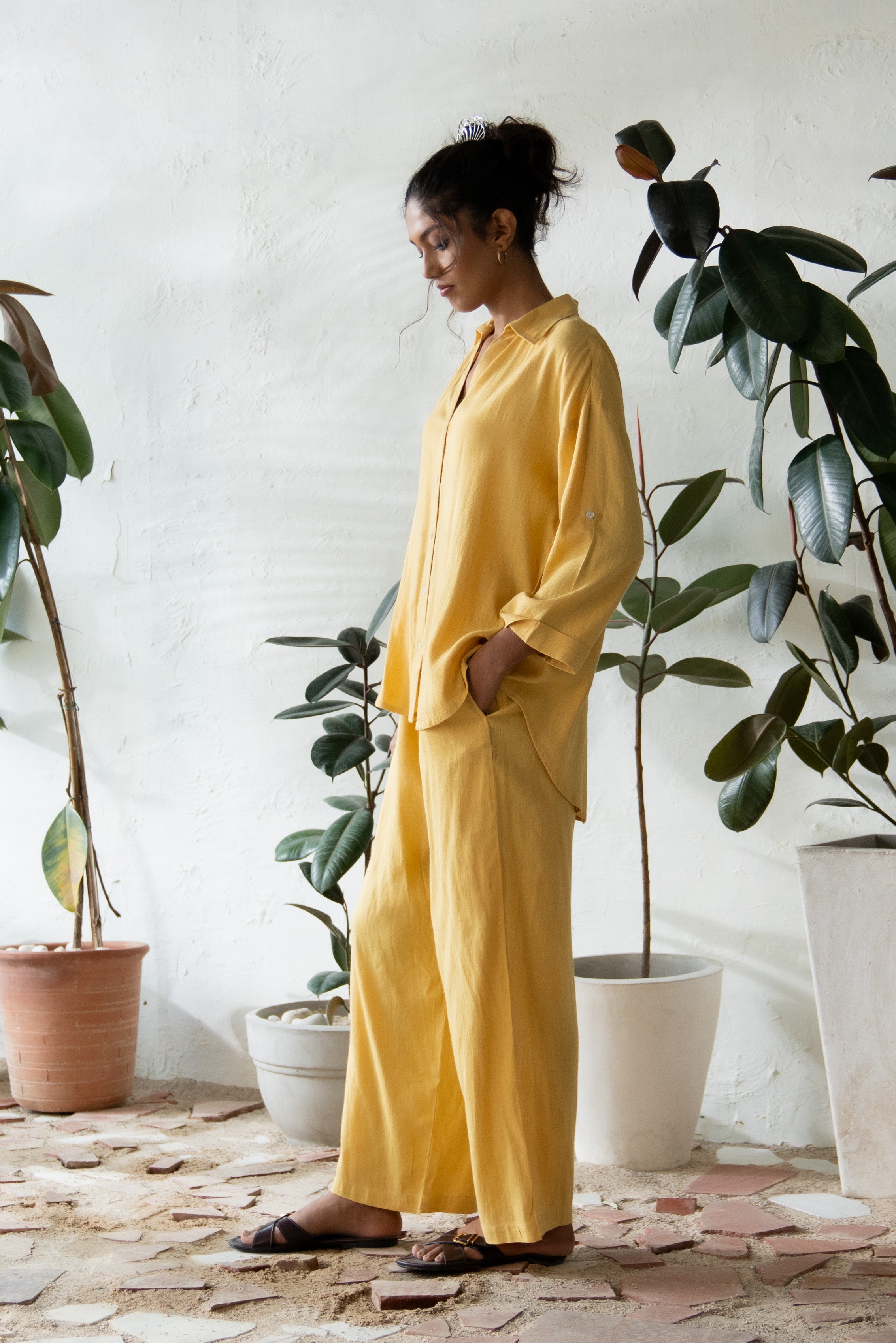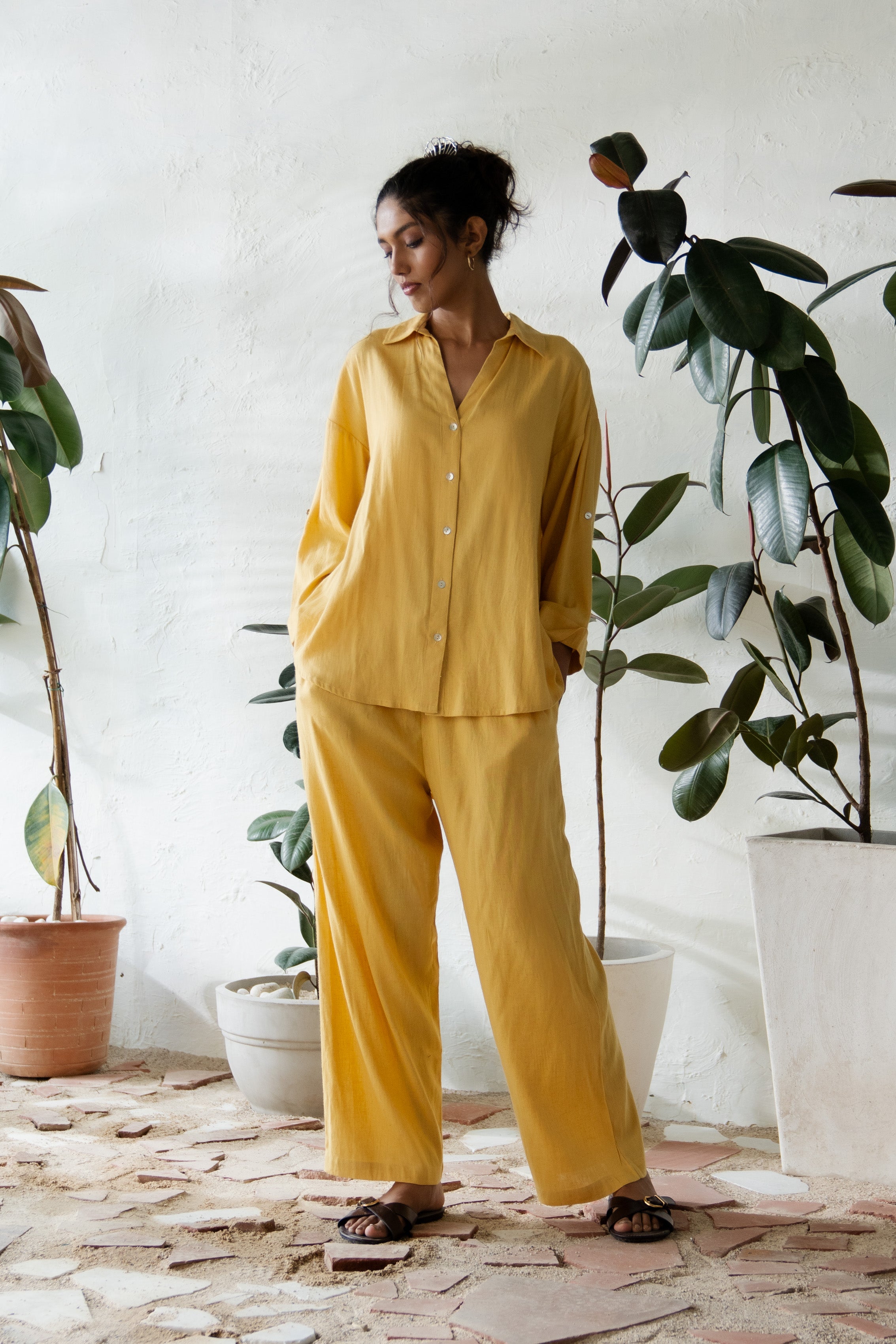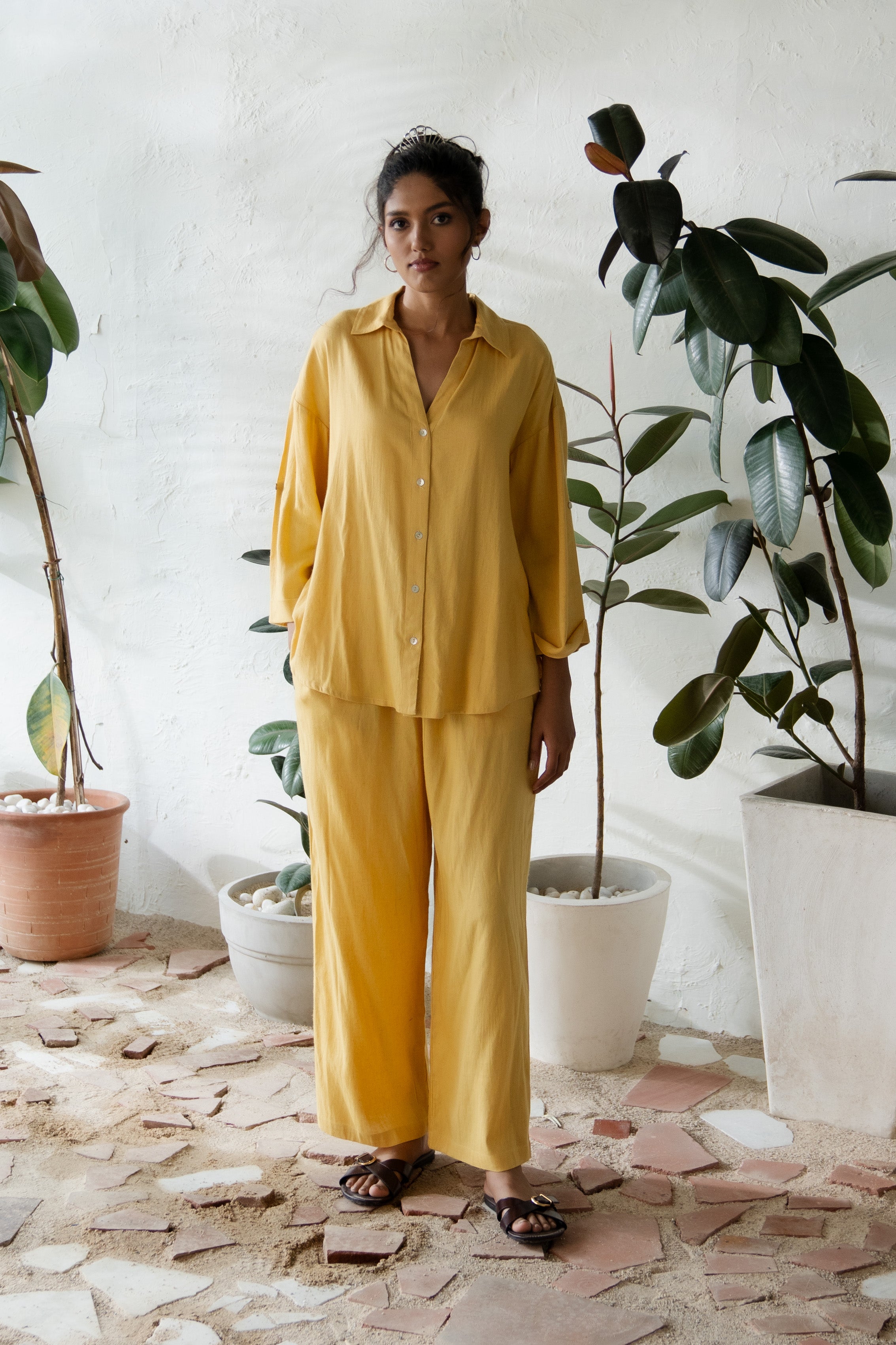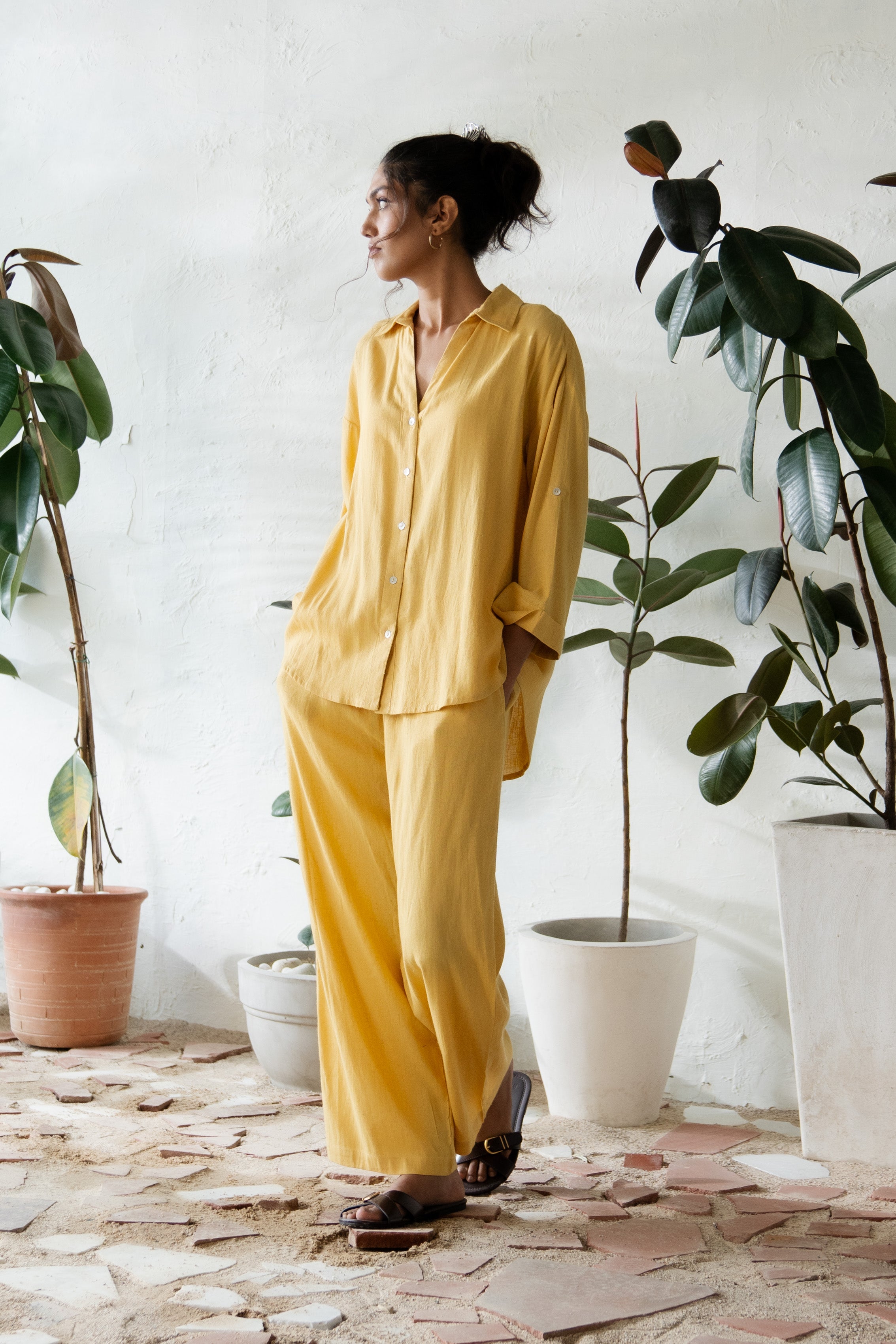 Effortlessly stylish and versatile, the Sunlove Coord Set combines comfort and spontaneity like never before. Crafted from breathable flex fabric, the oversized shirt features a flattering V-neck and a gently curved hemline. Paired with narrow elasticated pants with a drawstring and practical side pockets, this set ensures you're always ready to step out in style, wherever and whenever.