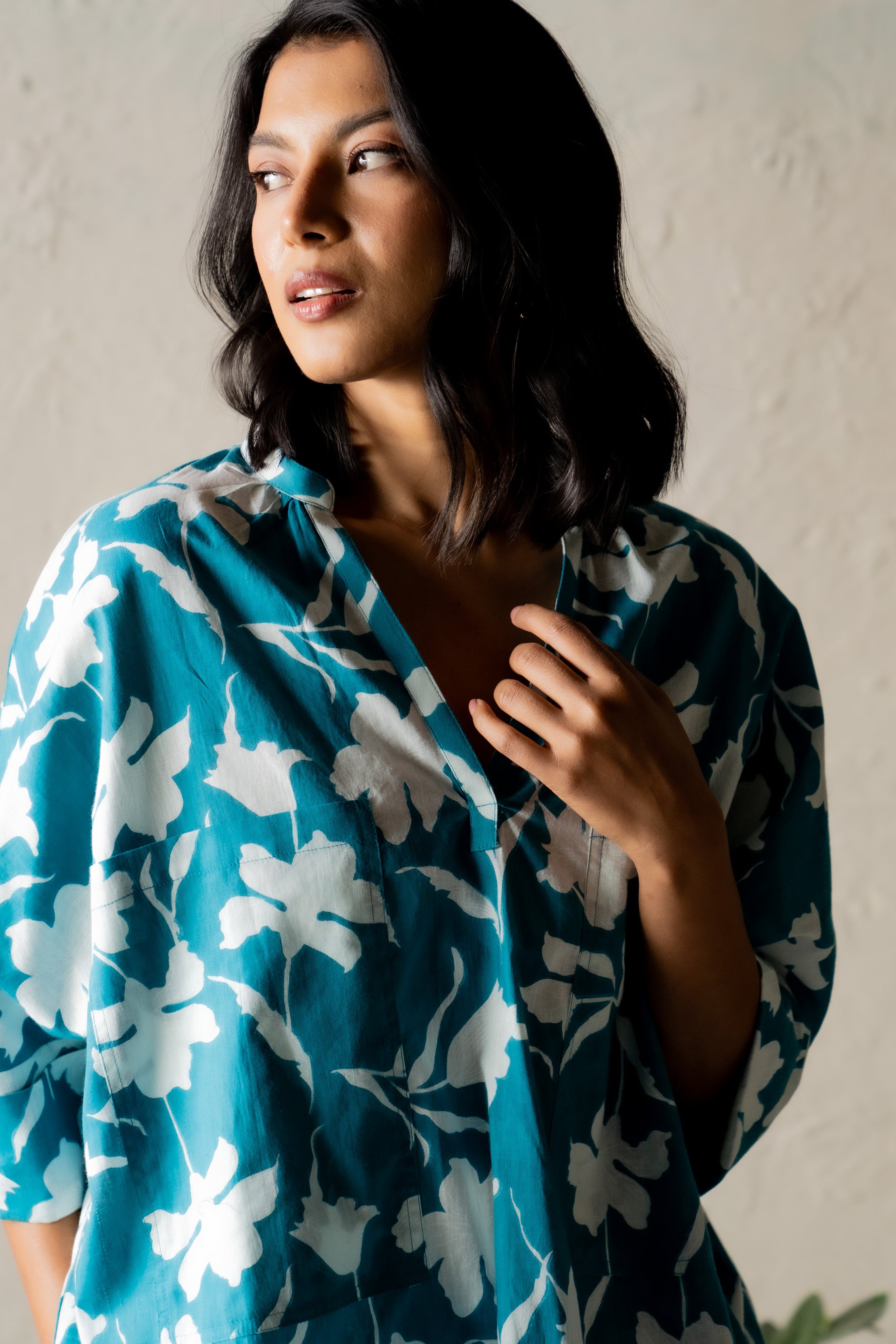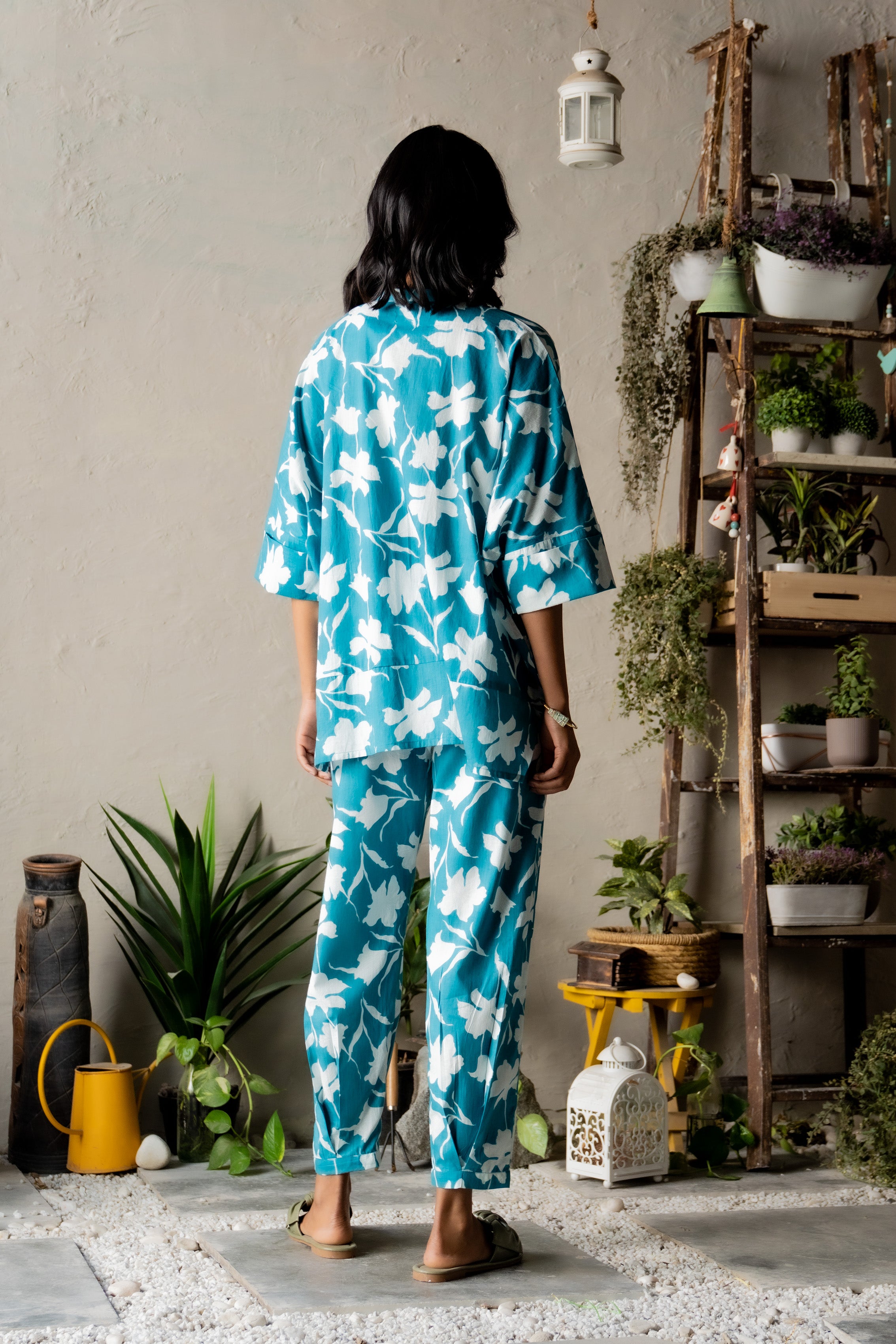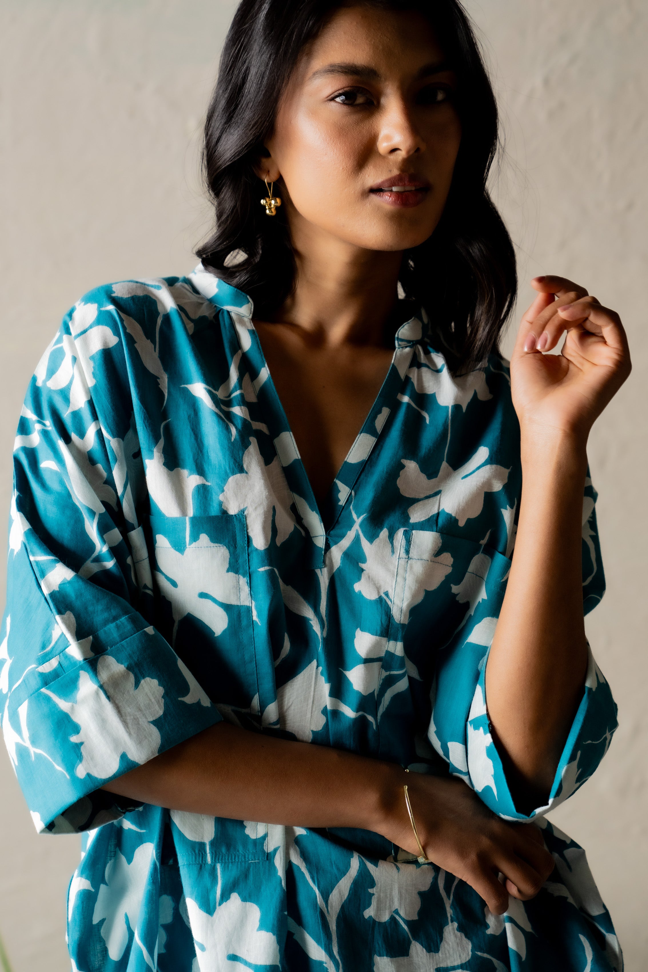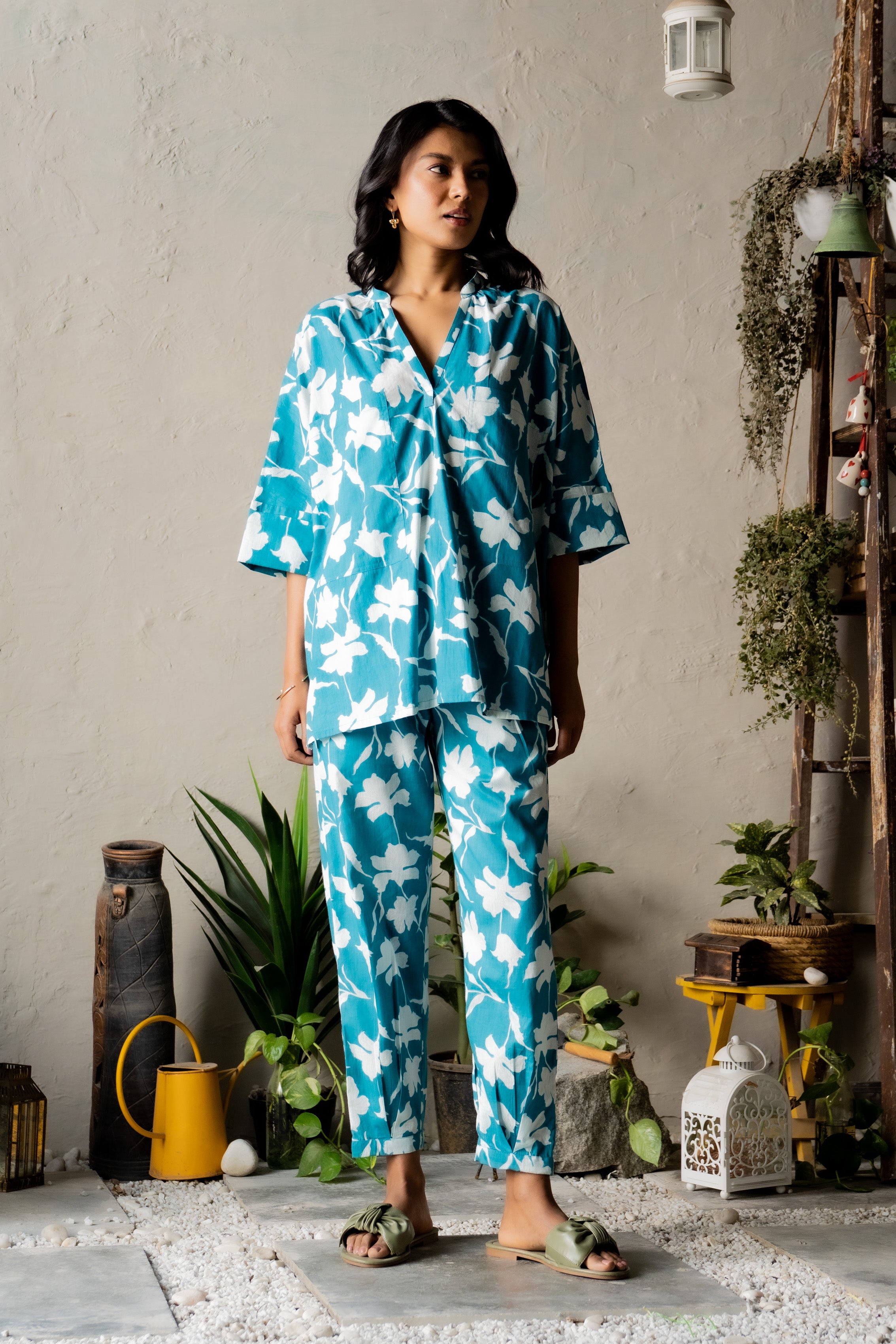 Experience the carefree sensation of freedom with the Teal Timber Coord. The top boasts a relaxed silhouette, a flattering V-neckline, and bold front pockets, combining style with functionality. Crafted from lightweight cotton, it offers a barely-there feel for ultimate comfort. Paired with breezy, easy-fit pants, this set is perfect for those laid-back, free-spirited moments.
