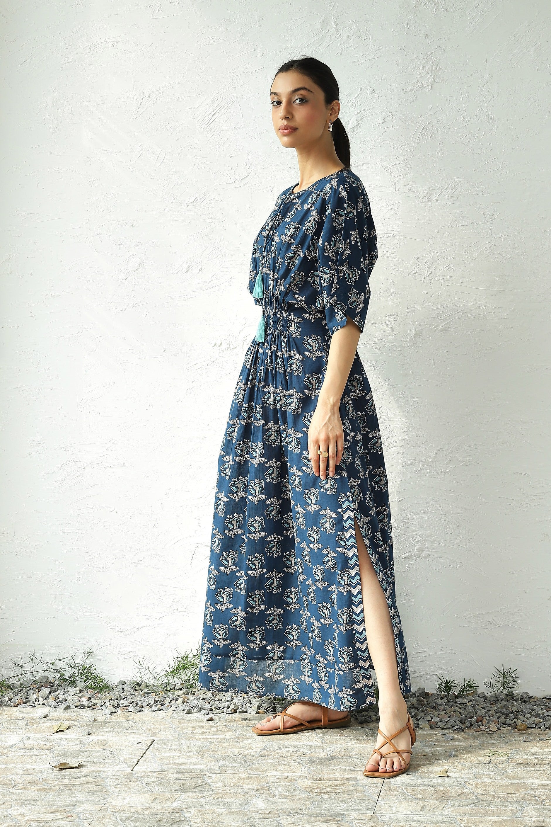 Indigo Side Slit Dress