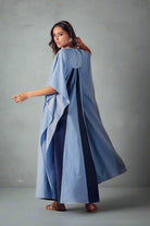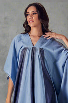 Step into effortless elegance with this V-neck multipanel kaftaan, crafted in super-soft denim. Designed for ease and style, the silhouette flows freely while the subtle V-neckline flatters the frame. An interplay of light and dark denim panels adds depth and dimension, giving this relaxed piece a contemporary edge.