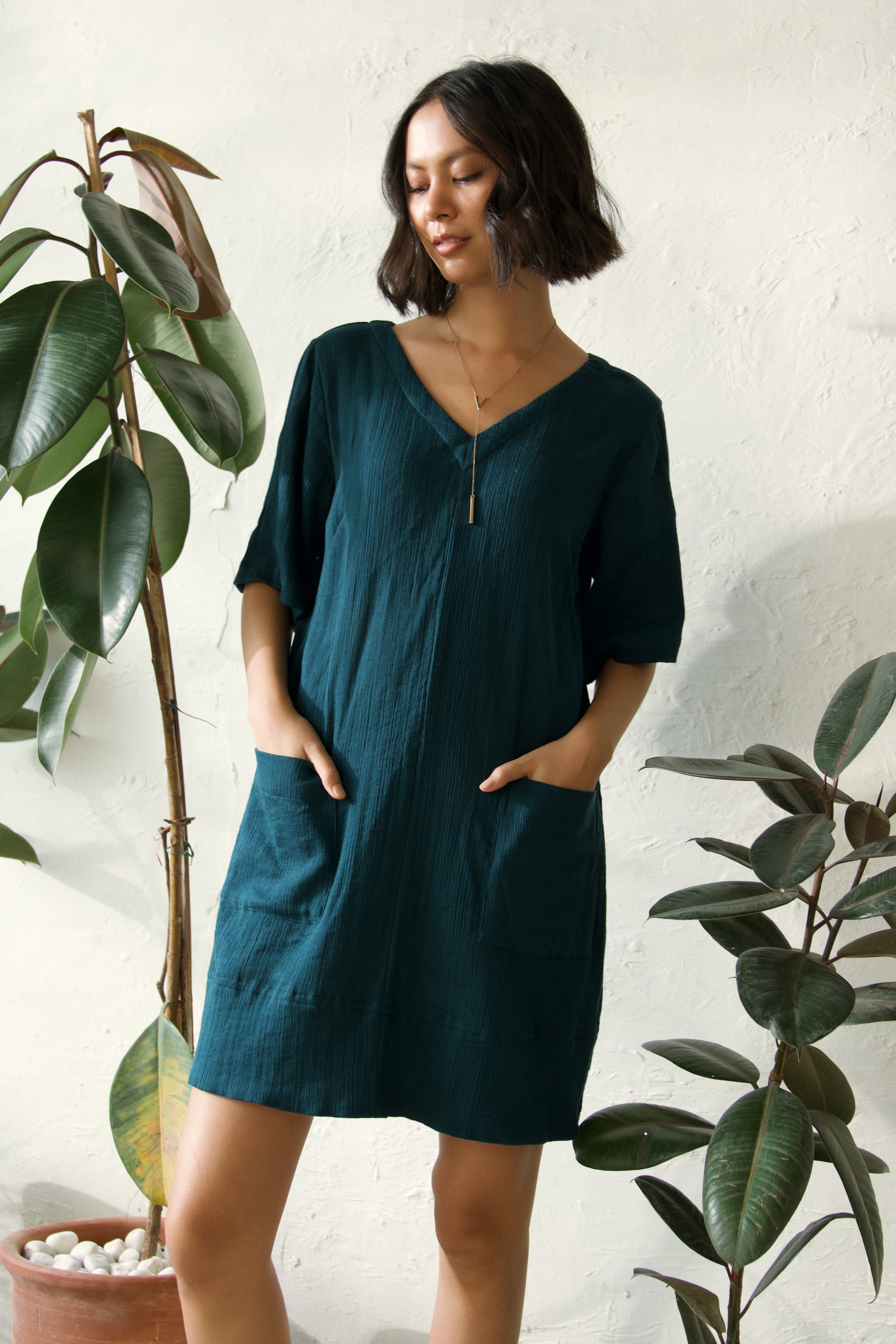 Discover the ultimate in effortless style with our Double Pocket Dress, designed for those days when you want to look put-together without any fuss. This short dress features an easy-breezy fit, perfect for casual outings or running errands. With its subtle stitch details and convenient double pockets, it offers both style and functionality. Just slip it on, and you're ready to go, feeling comfortable and looking great. This versatile dress is a wardrobe staple you'll reach for again and again, combining a smart design with all-day comfort.