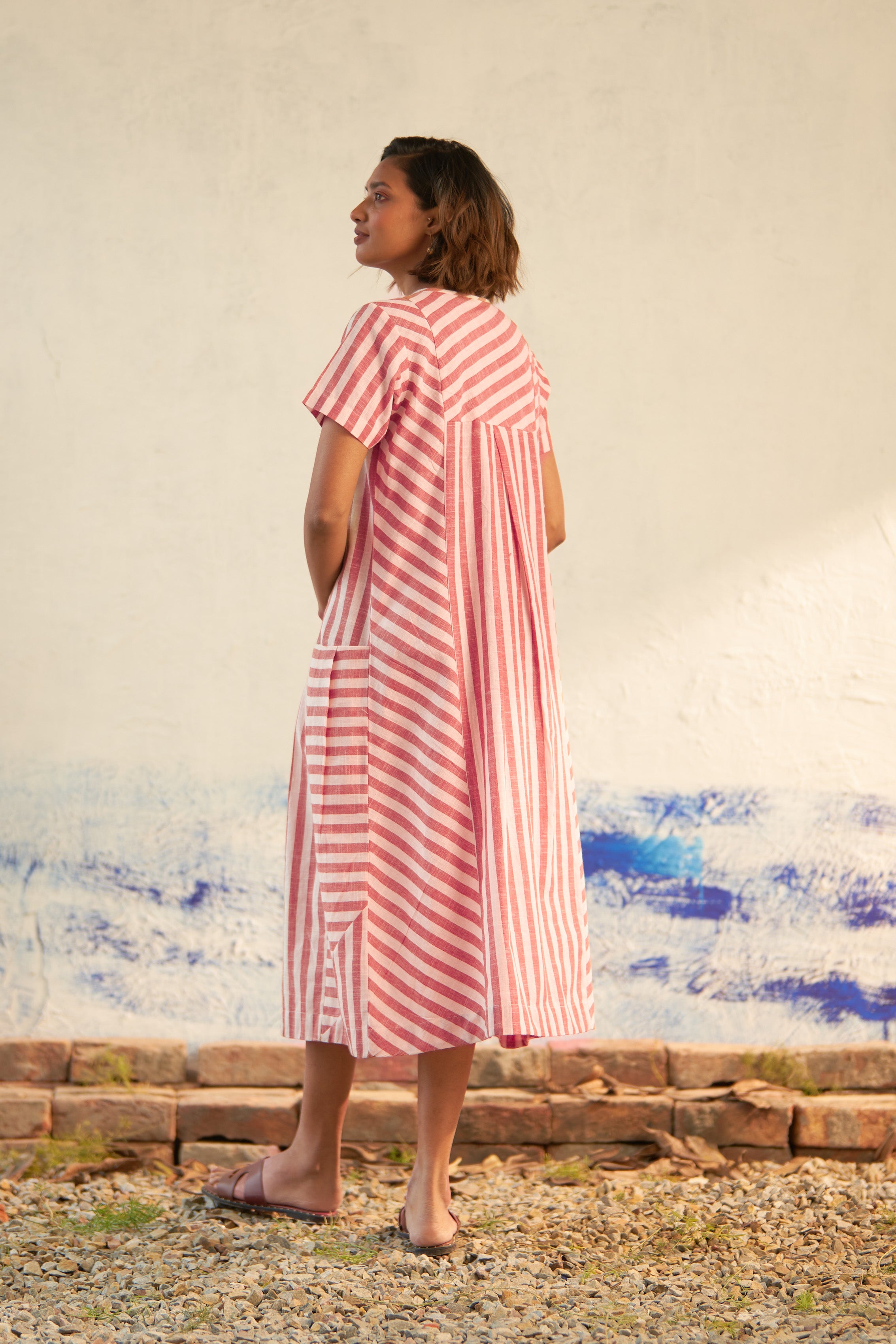 Canoopi Must-Have: Elevate your summer wardrobe with this charming rossa striped dress that's equal parts fun and functional. The bold stripe pattern creates instant visual interest, while over-sized front pockets keep your essentials close. Playful patch details add an unexpected twist to the classic striped silhouette, making this piece a delightful everyday favorite that doesn't compromise on style or practicality.