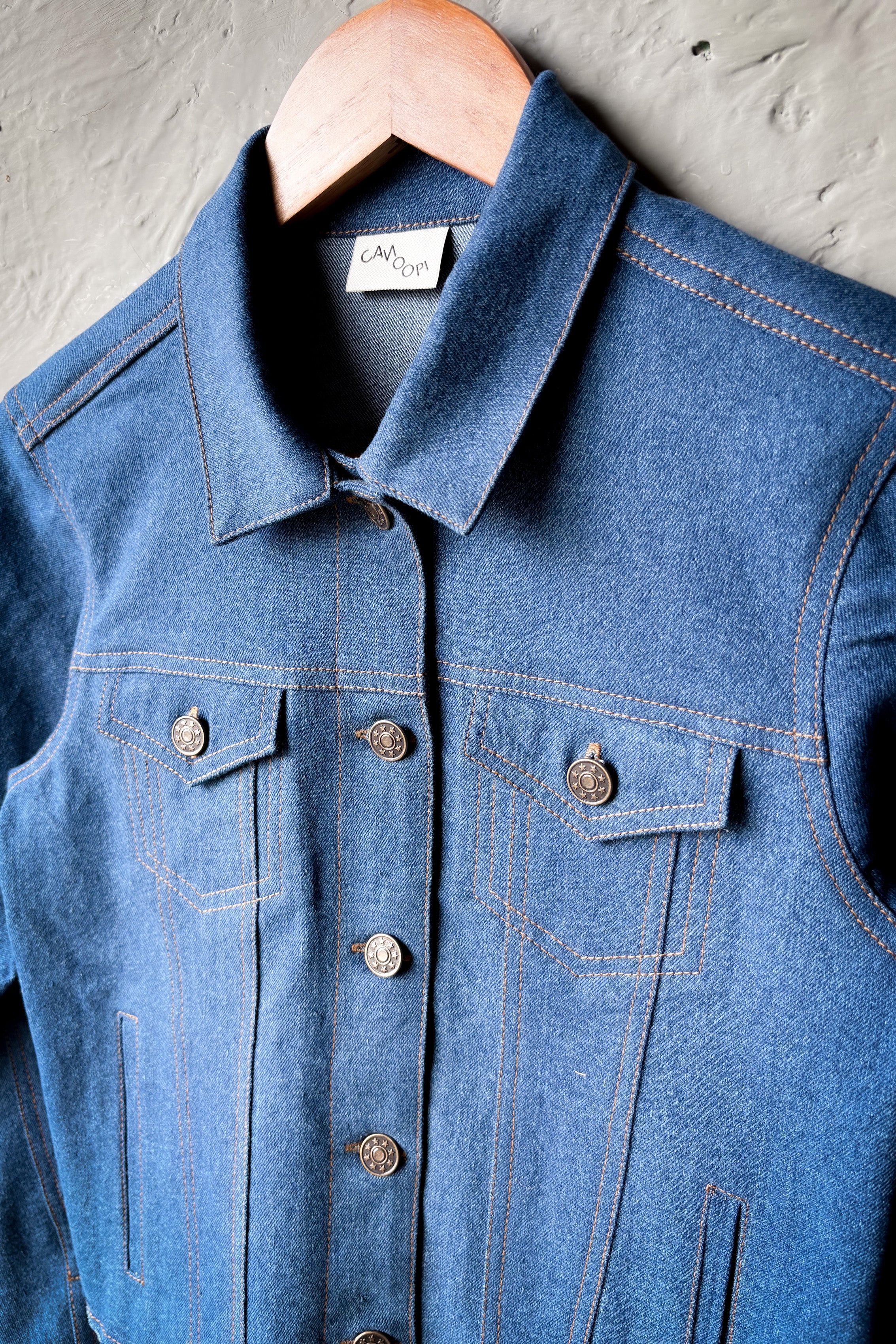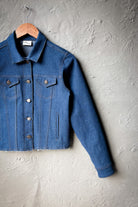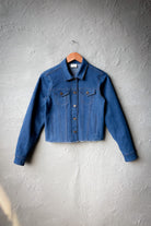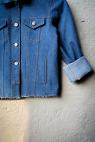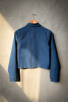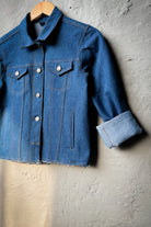 A modern twist on the classic. This cropped denim jacket comes in the just-right blue wash, elevated with a fringed hem for contemporary charm. Made from soft, medium-weight 100% cotton denim, it brings freshness to a timeless silhouette — easy, stylish, unforgettable. Nothing else to say. Fill it, shut it, forget it.