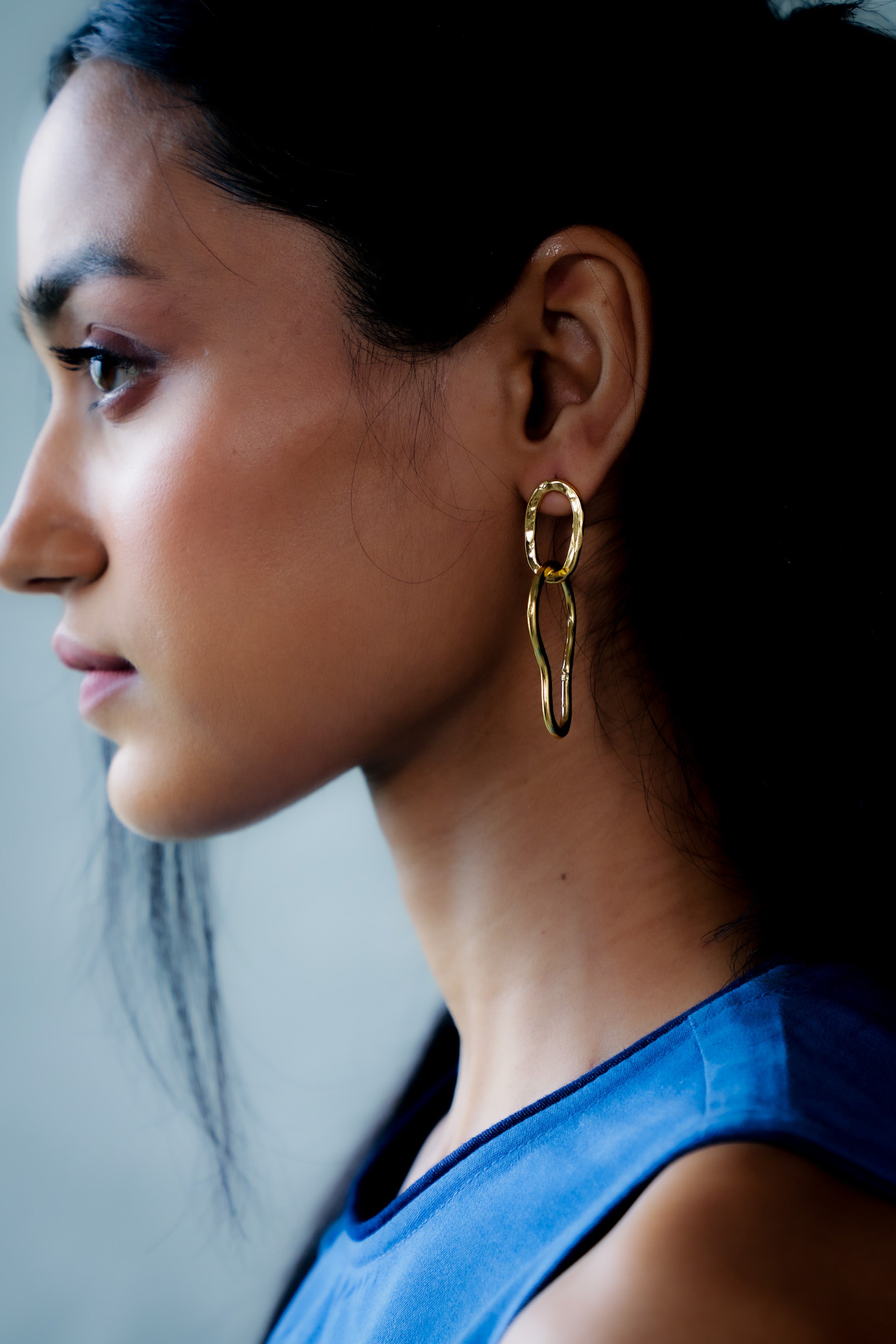 Gracefully capturing the charm of rippling pools, these hoops bring a touch of serene elegance to your everyday look, handcrafted in brass.
