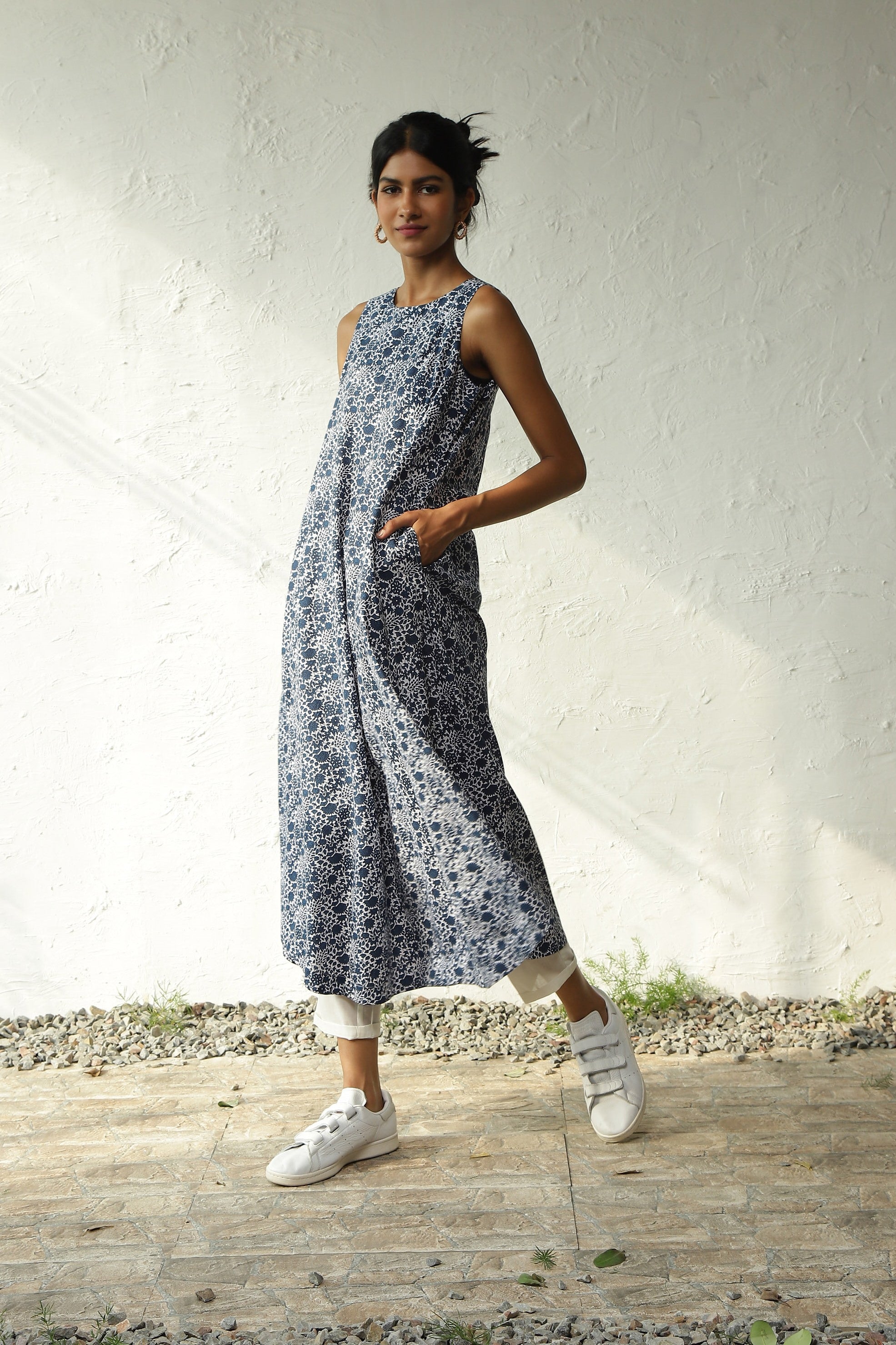 Spring up your style with this captivating floral print long set. Designed from Lightweight Cotton Fabric, it complements all body types with a Round Neckline, Deep Shoulder Cuts, and a U-Shaped Hemline. Paired seamlessly with Straight Narrow Pants featuring an Elasticated Waist and Drawstring. The top offers versatility as it can also be worn as a dress, enhancing your wardrobe options.