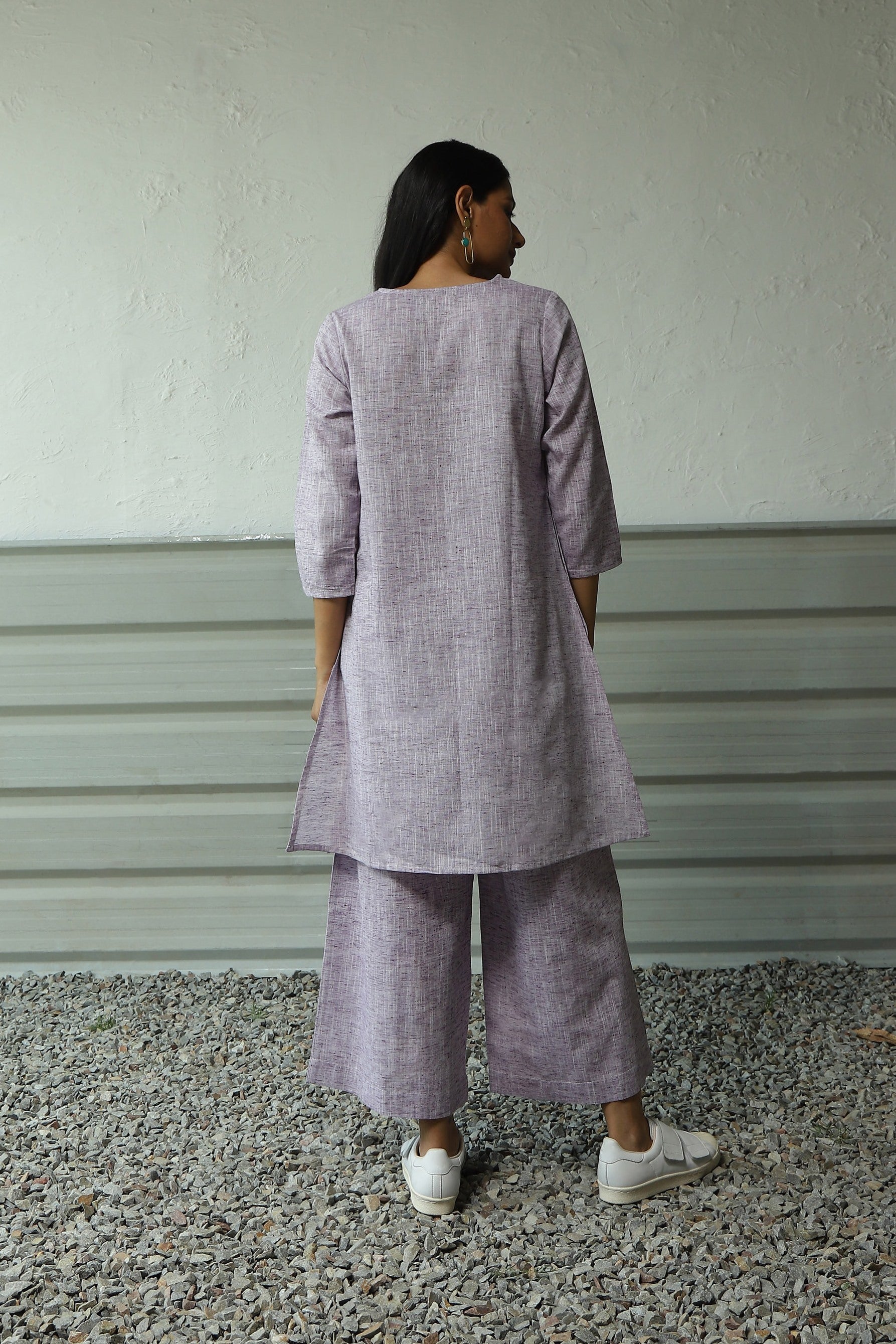 Refreshing vibes of a sunday breeze with our grapevine co-ord set. This ensemble offers a modern take on the traditional style using the textured cotton. The tunic is a take on the short kurti, it is seemless and features convenient side pockets and pairs elegantly with the ultra-flared palazzo. The palazzo features an elasticated waist and drawstring, ensuring perfect fusion for unparalleled comfort.