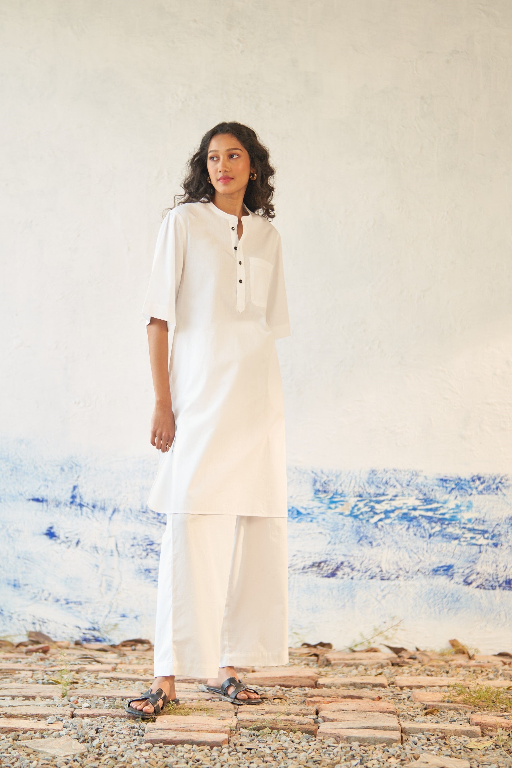 A perfect blend of style and leisure, this coord set is designed with a minimalist approach. Crafted in premium cotton fabric with a band collar and tonal buttons on the placket, it is cut in an oversized silhouette to elevate comfort.