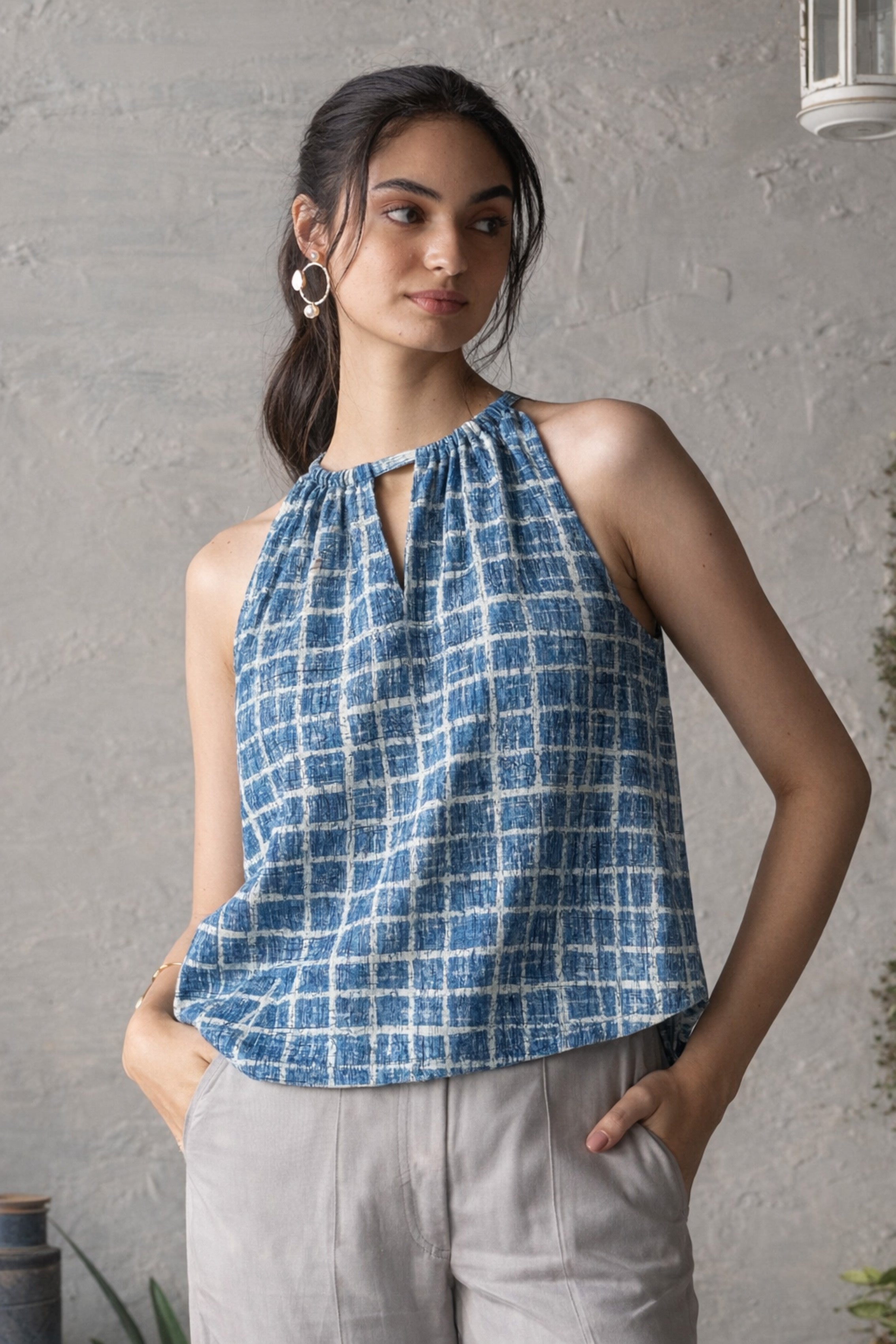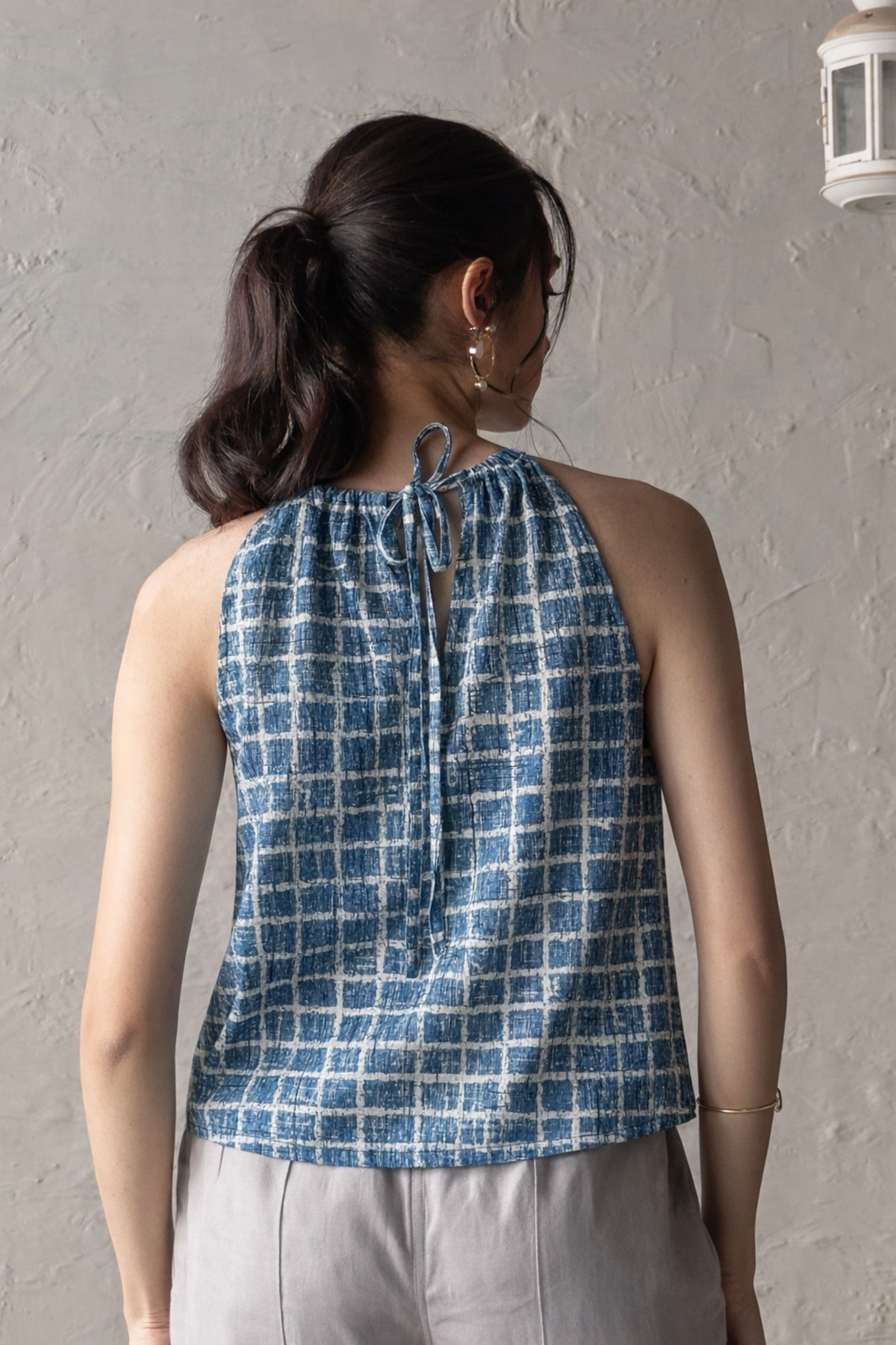Blue Brick Tie-Up Top