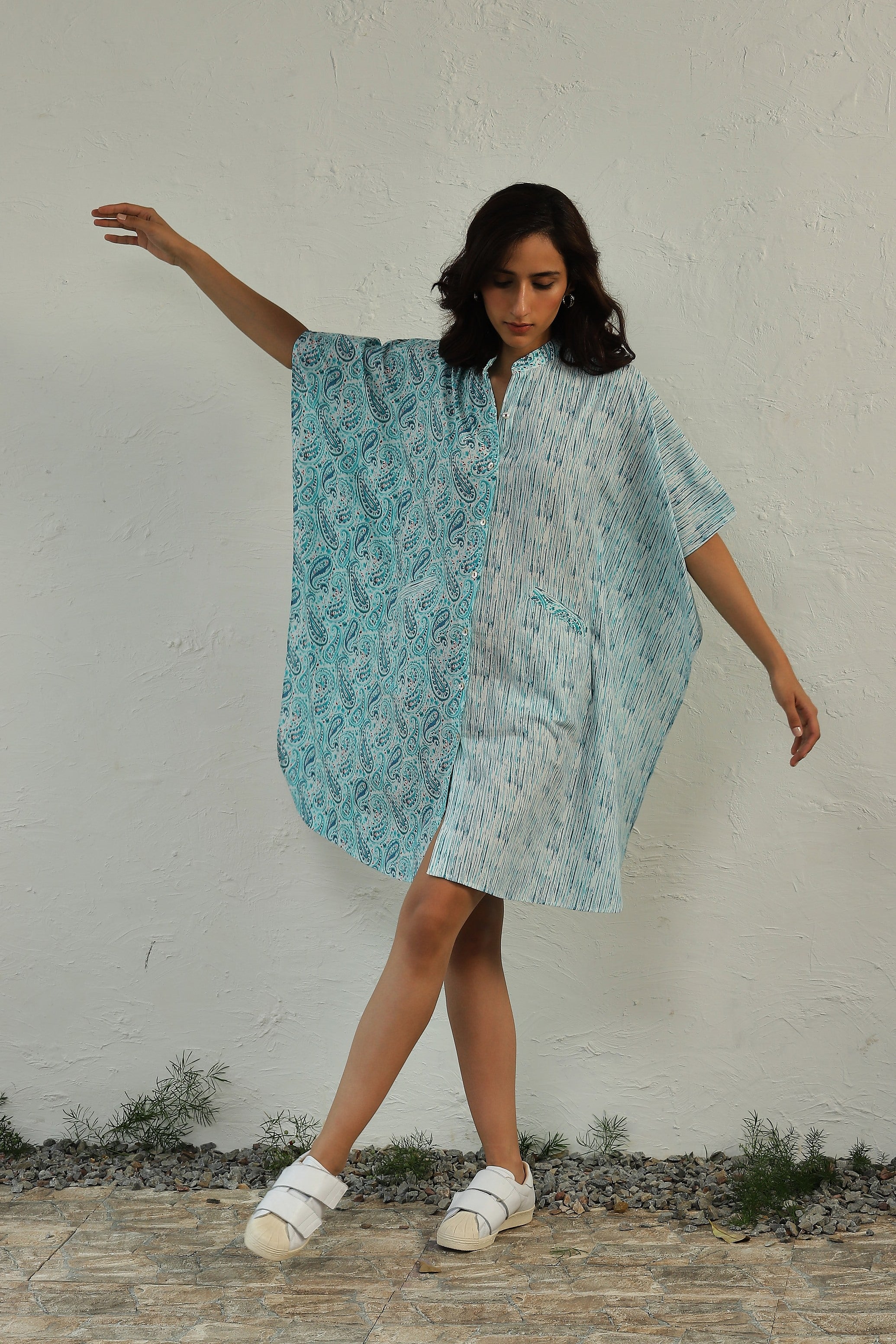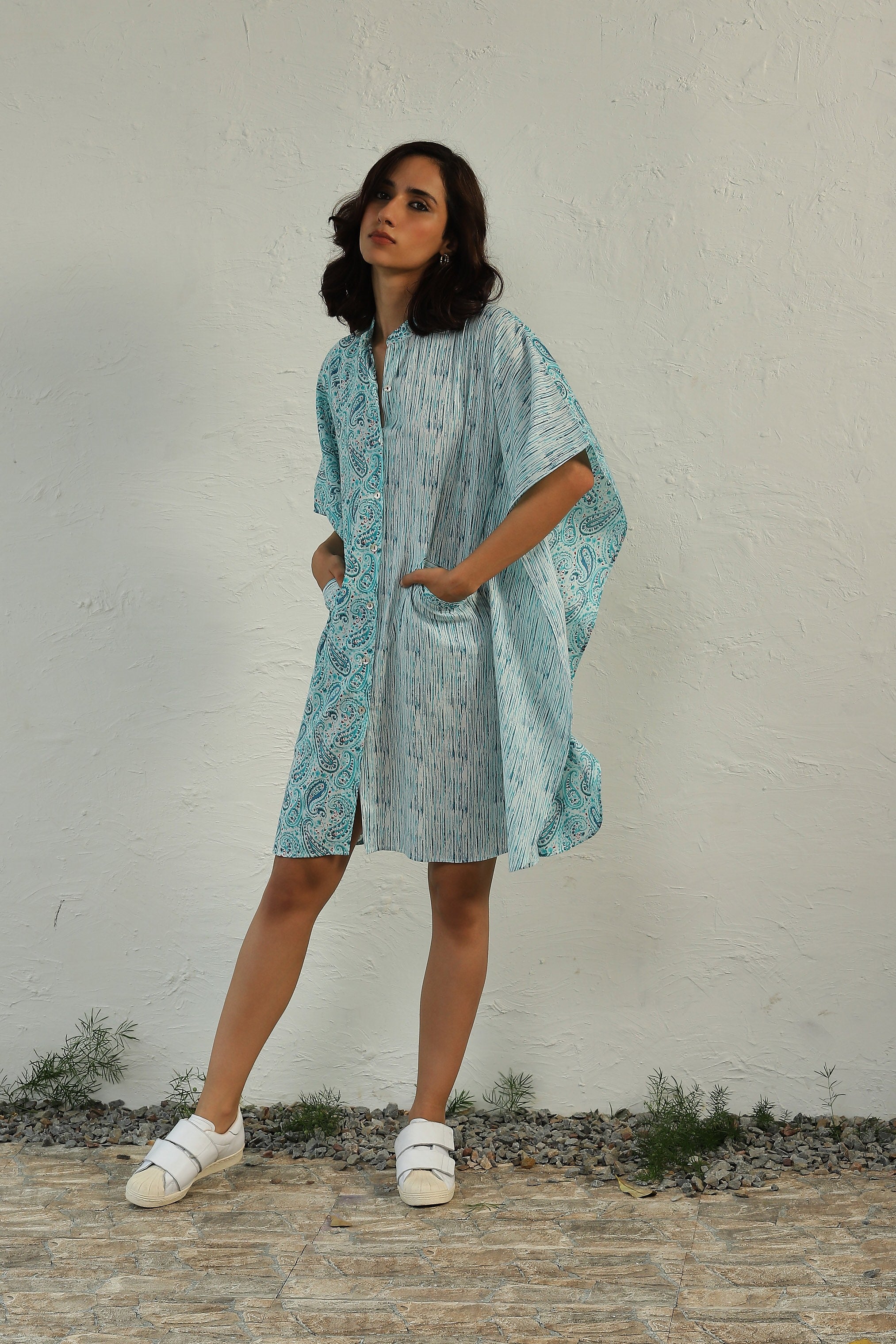 Awaken you boho spirit by adorning this paisley print short dress. Designed from lightweight cotton fabric, the dress features collared neckline, front placket with buttons that go along the length of the dress. It has side kaftan panels that enhances the free spirited look.
