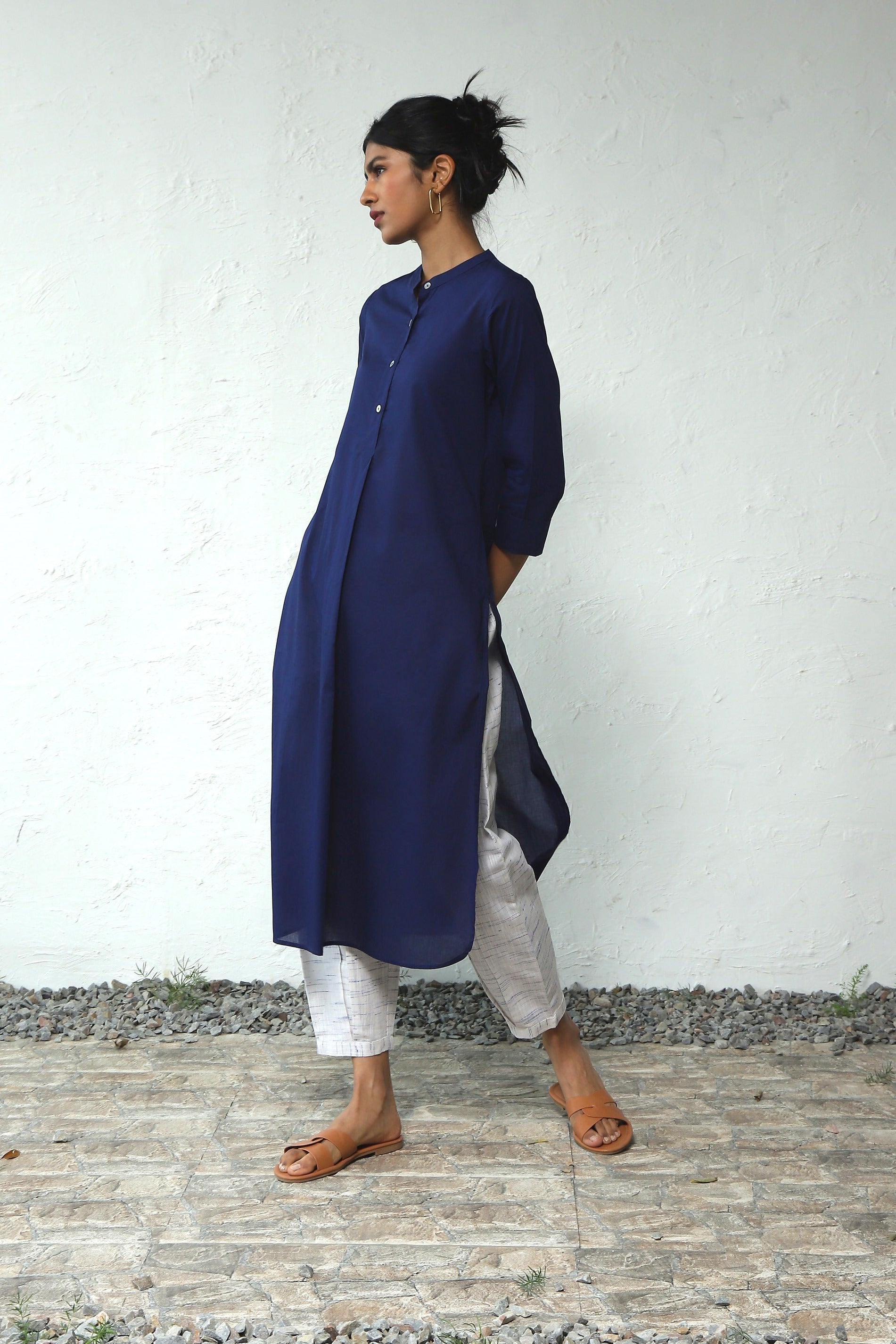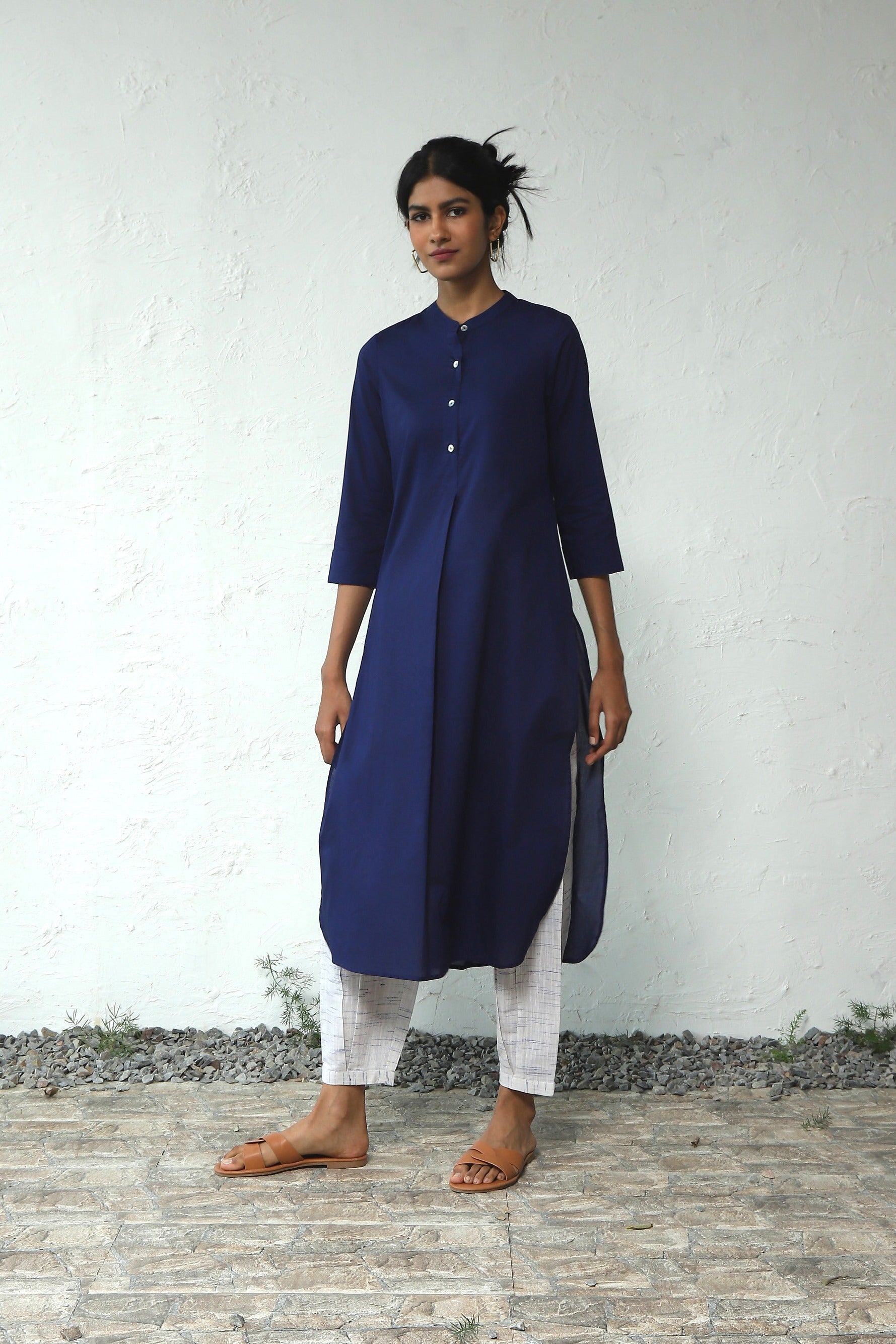 High-Line No Collar Kurta (with Pyjama)