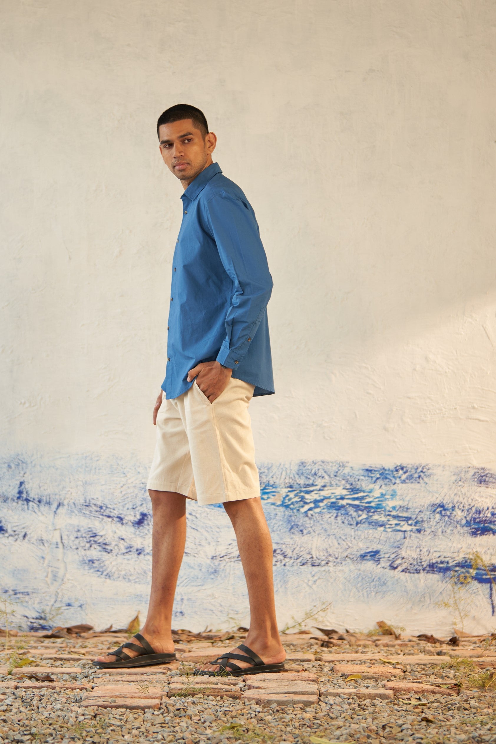 A gentleman's must-have ensemble: a timeless blue shirt paired with European alley Shorts. Crafted in a regular fit, the shirt boasts curved sides and hem for both comfort and style, making it perfect for city life and everyday discoveries.