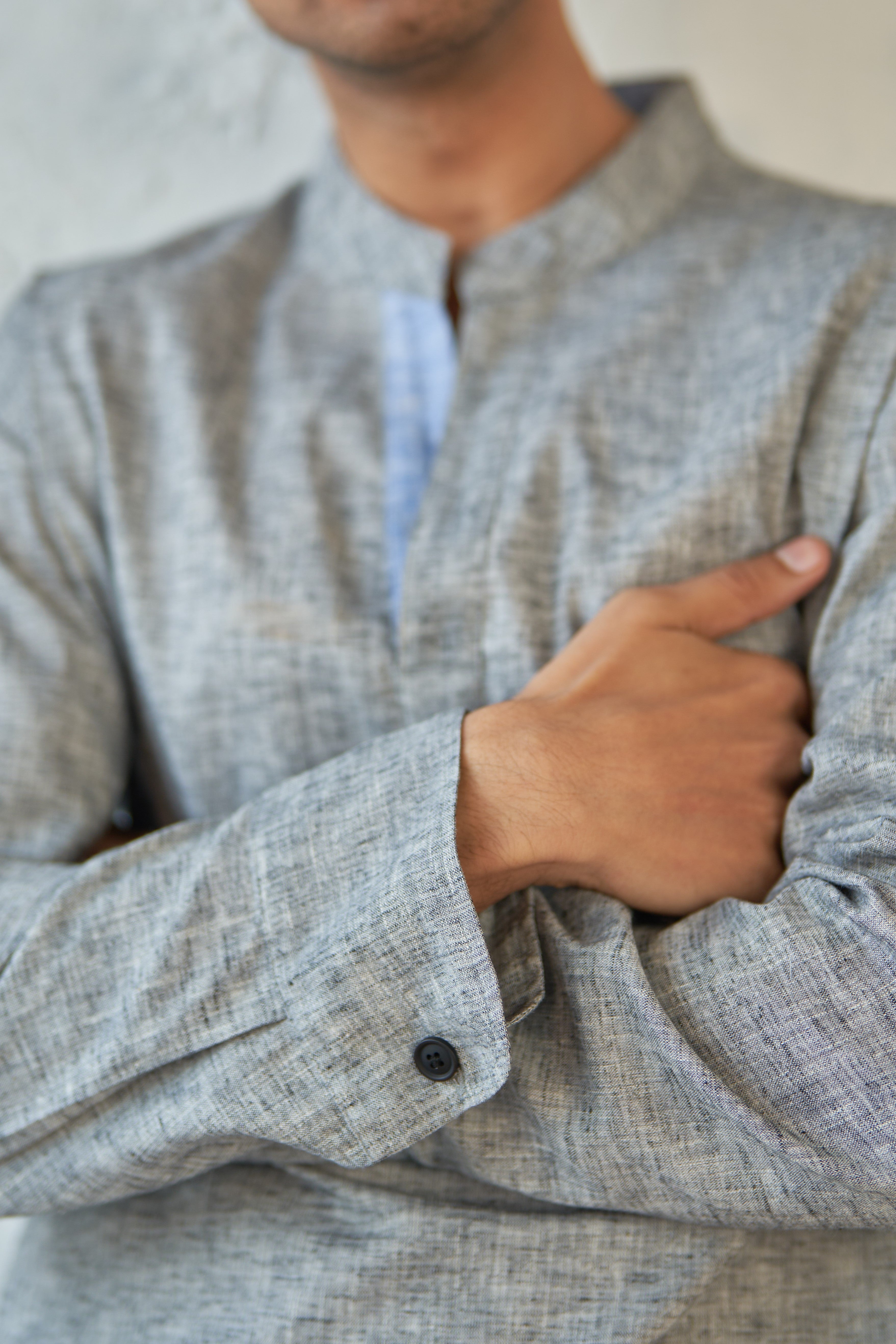Refined polo kurta shirt, crafted in textured cotton for elevated style. Tailored in a relaxed shape with an overlapping placket, creating a stylish v-neck opening. The broad back yoke ensures comfort reminiscent of a kurta.