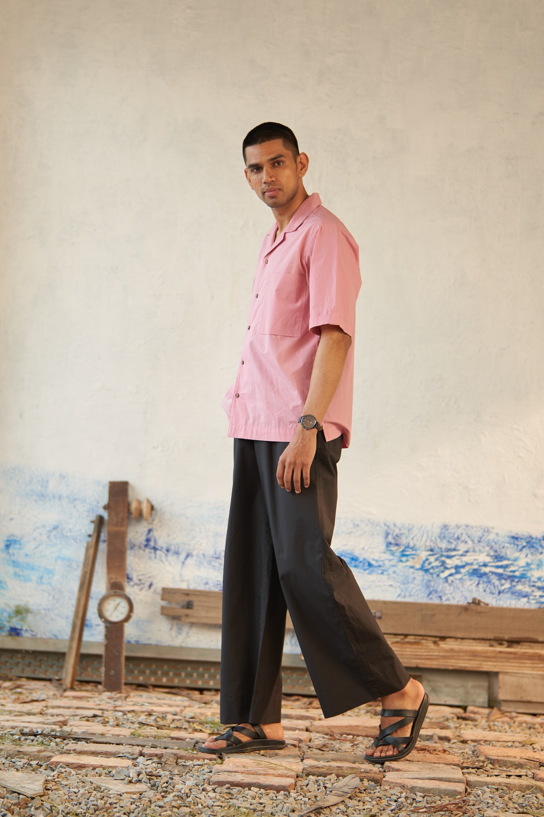 Crafted from breathable cotton, our shirt is the epitome of effortless style. With its camp collar and short sleeves, it offers a laid-back vibe perfect for any casual occasion. The unique double-sided patch pocket adds a touch of individuality, featuring a stitchless bottom edge that creates a subtle cave-in effect on the chest. For added flair, we've included side vents at the hem and a false lapel detail on the left sleeve, elevating this shirt to a new level of sophistication.