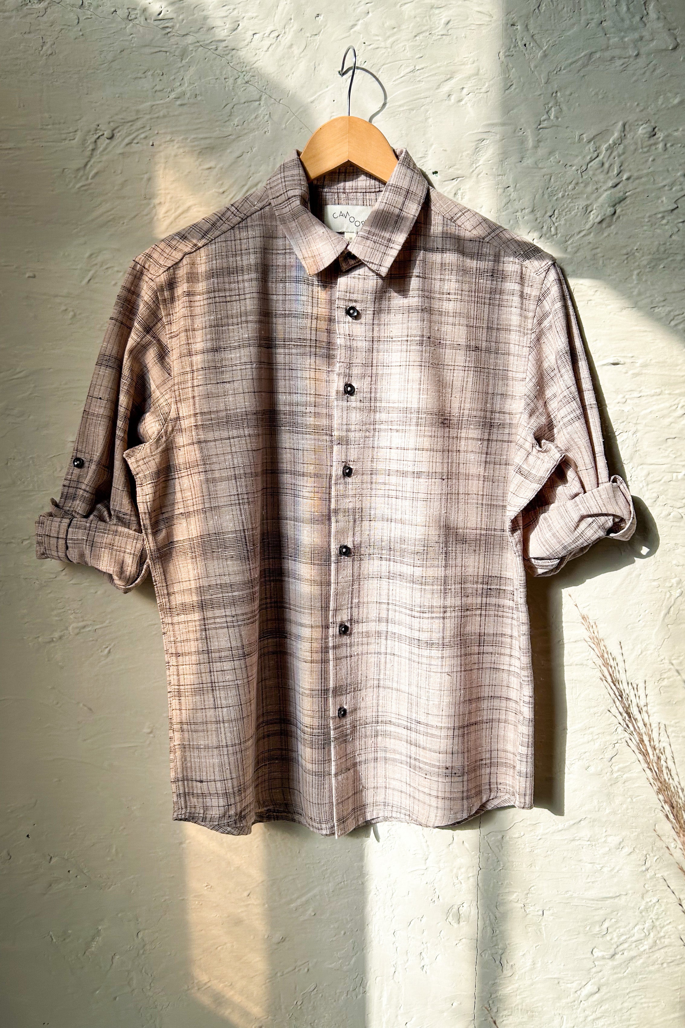 Experience the timeless allure of vintage craftsmanship with the Earthen Weave Shirt. Crafted from textured cotton fabric, this classic piece embodies understated elegance and everyday sophistication. Featuring a pointed collar and a standard fit, it blends tradition with modern versatility. A true wardrobe must-have for those who appreciate the charm of simplicity and durability in their style.