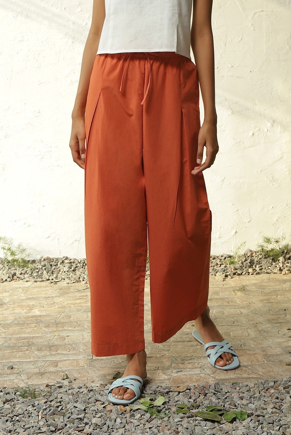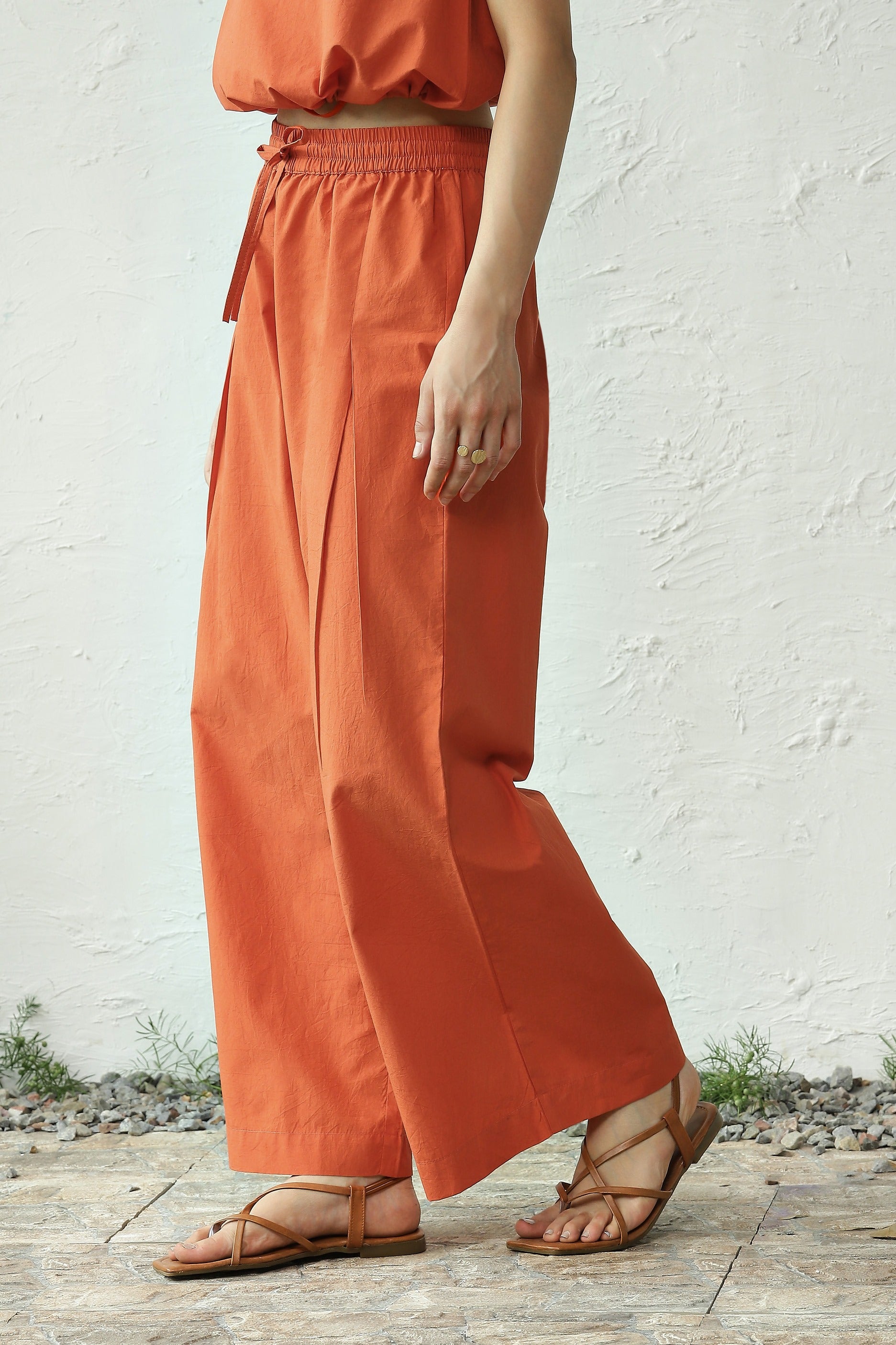 Elevate your summer wardrobe with Canoopi's drawstring pleated pants. Available in a lasting green hue, these pants effortlessly enhance a variety of summer outfits. Designed for comfort, they feature a convenient elasticated waistband and stylish inward box pleats. The wide legs create a relaxed, breezy silhouette. Crafted from high-quality cotton poplin, these pants prioritize both style and comfort.