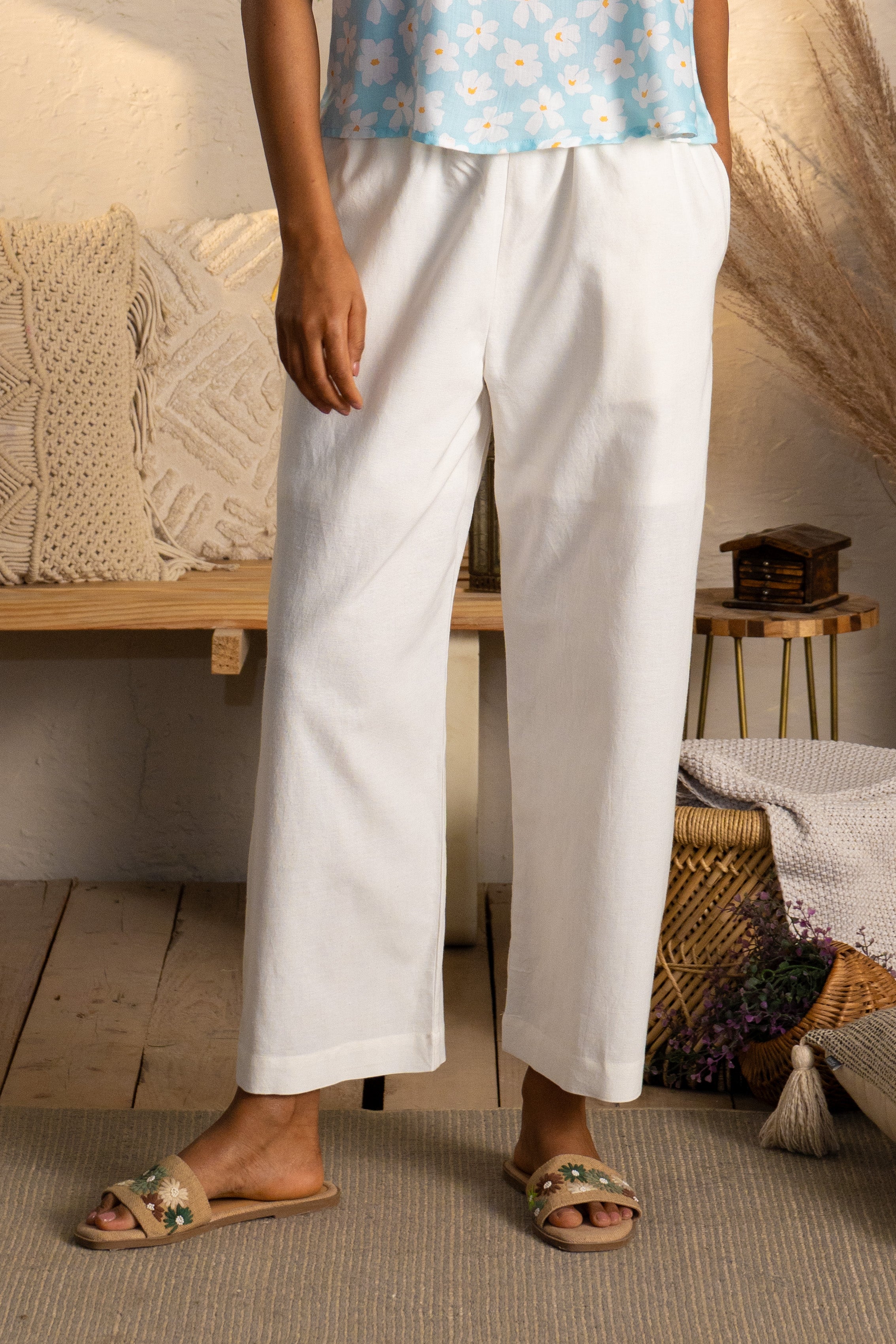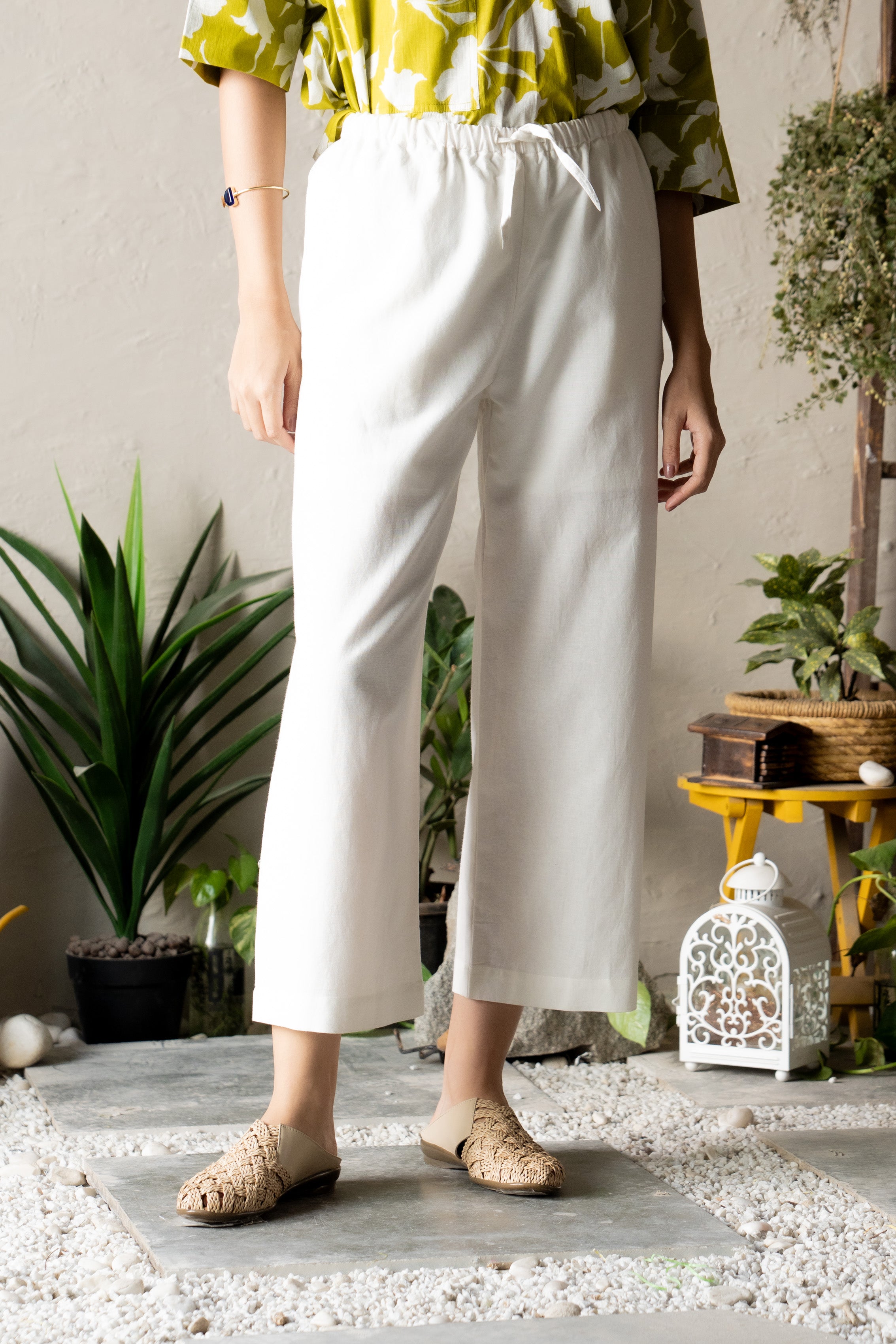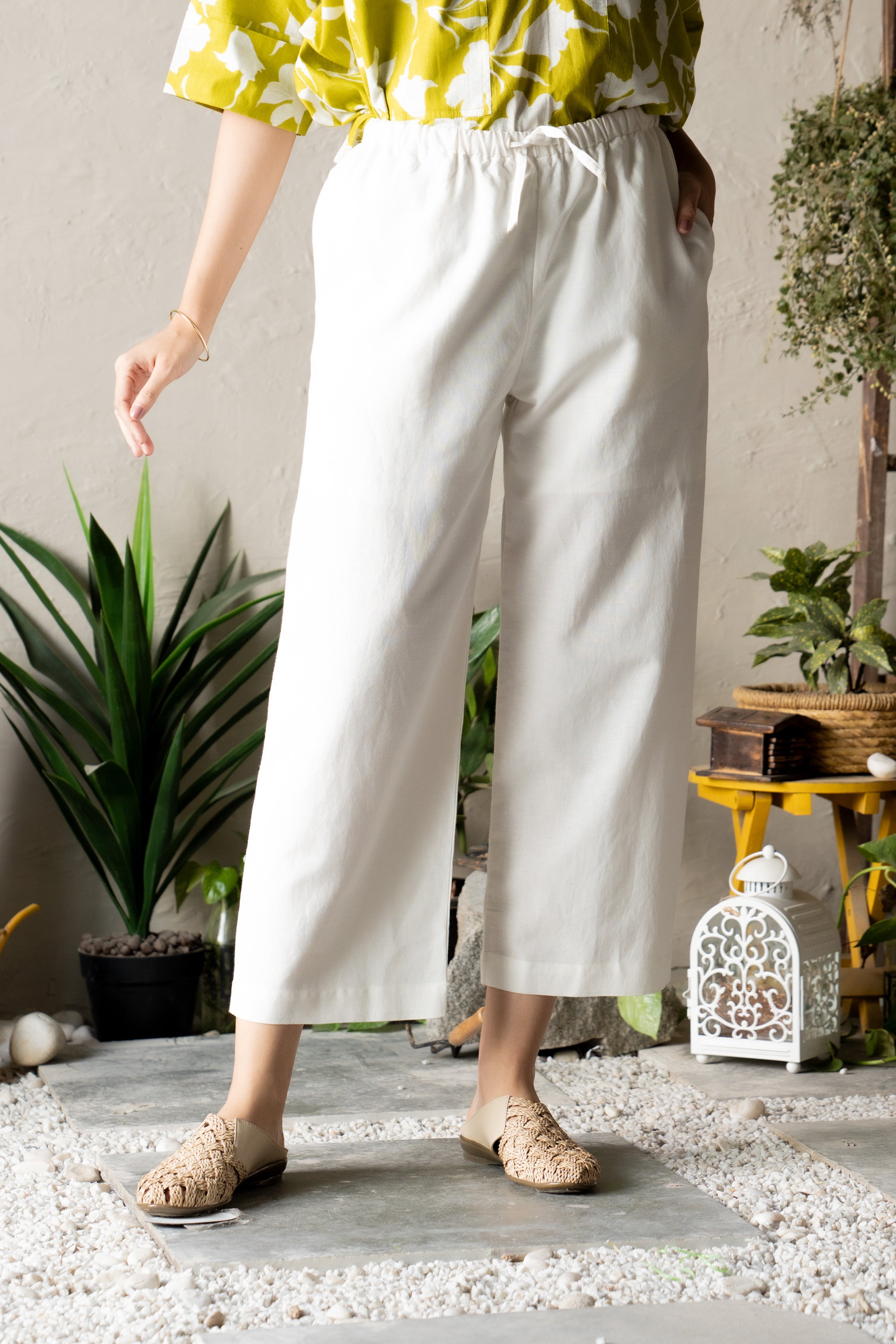 Experience a perfect blend of comfort and spontaneity with the Everyday Ease Pant. Designed with a narrow elastic waistband and a drawstring for an adjustable fit, these pants also feature practical side pockets for ultimate functionality. Crafted for ease and style, they are ideal for effortless everyday wear. Styling Note: The fabric may appear slightly transparent in certain lighting conditions.