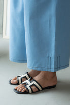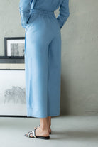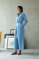 The Everyday Voyager Pants are designed for comfort with a contemporary edge. Tailored in soft denim, these ankle-length pants feature inverted box pleats that add structure and sophistication. The half-elasticated waistband with button closure ensures a personalized fit, while the relaxed silhouette makes them perfect for both everyday ease and refined styling.
