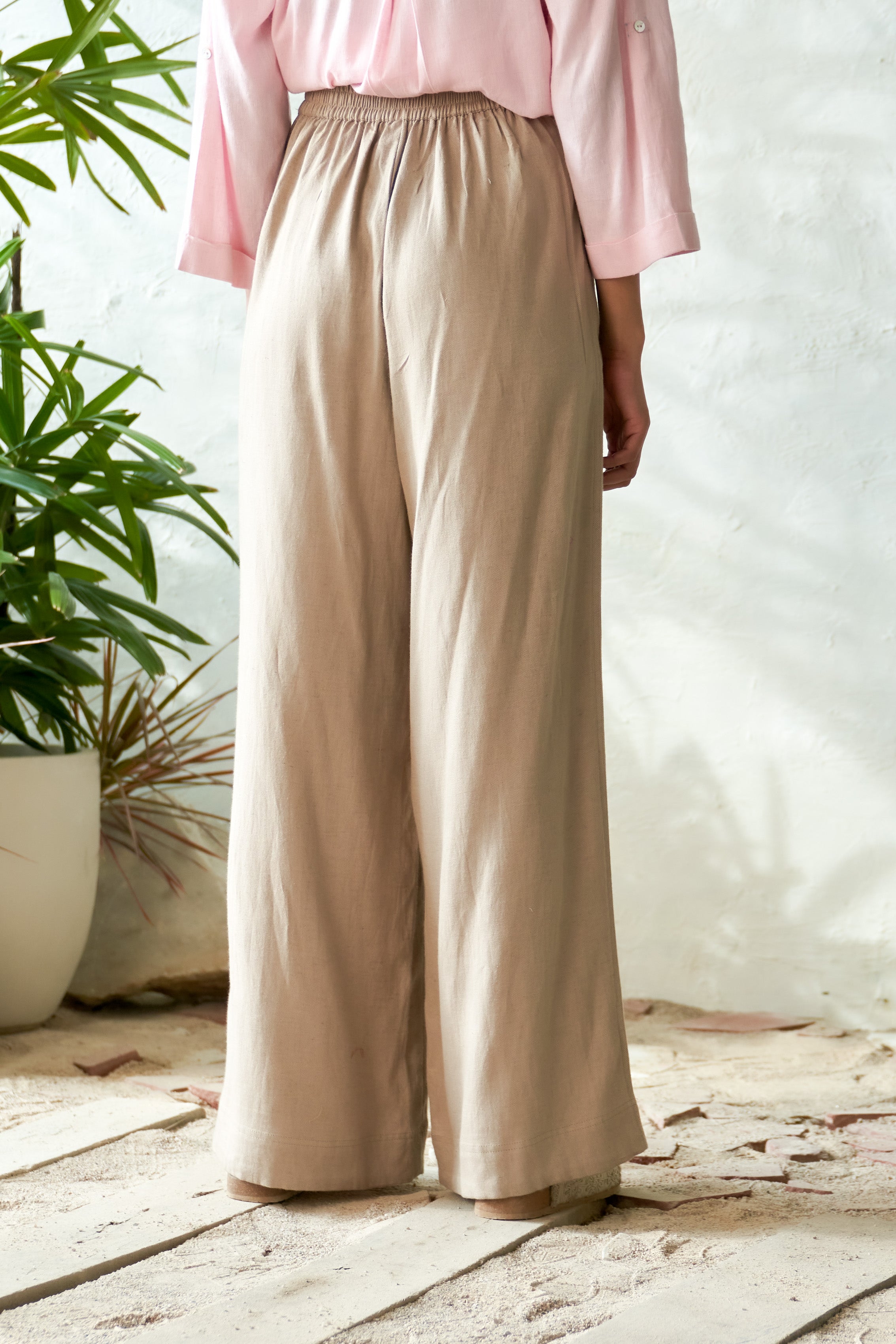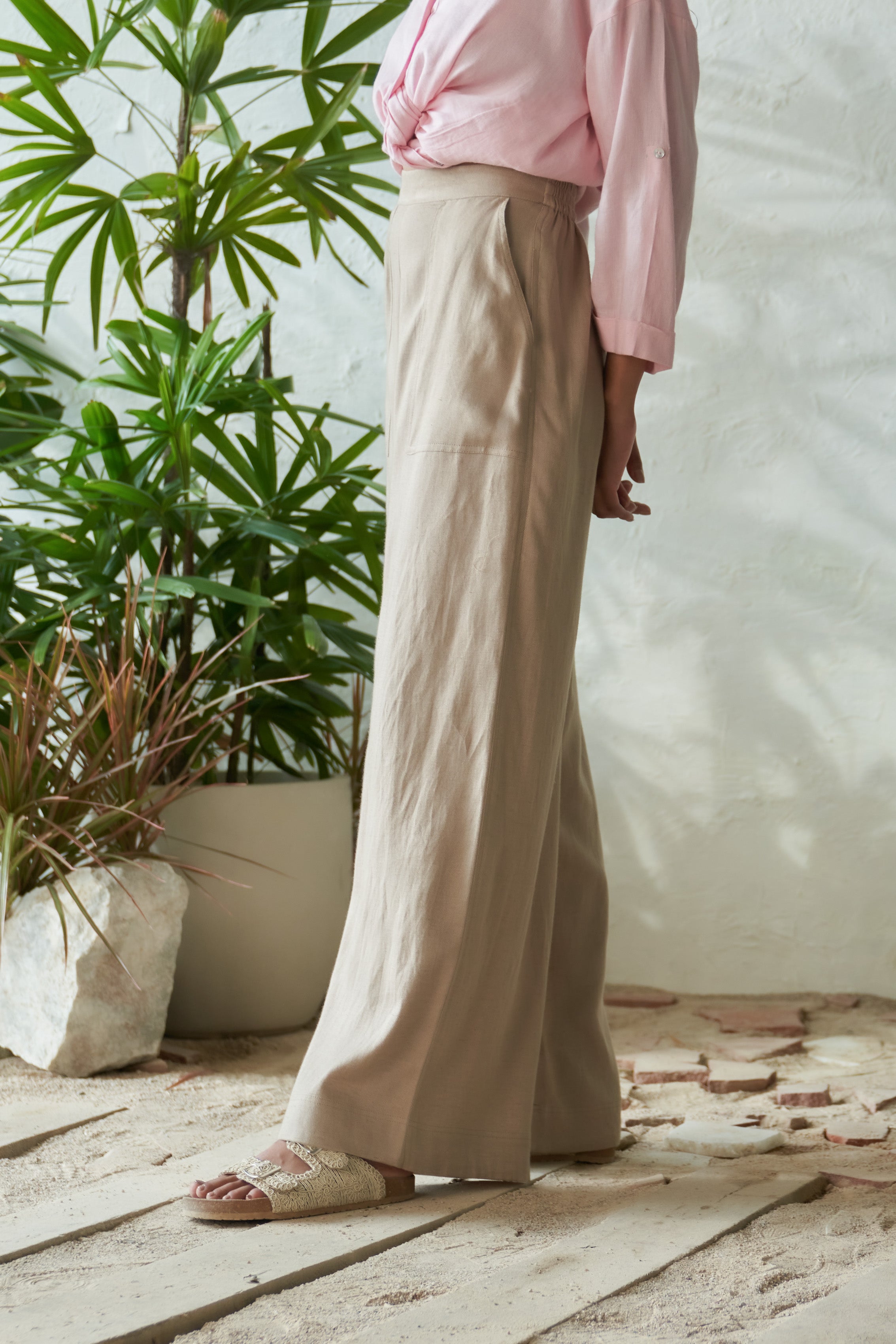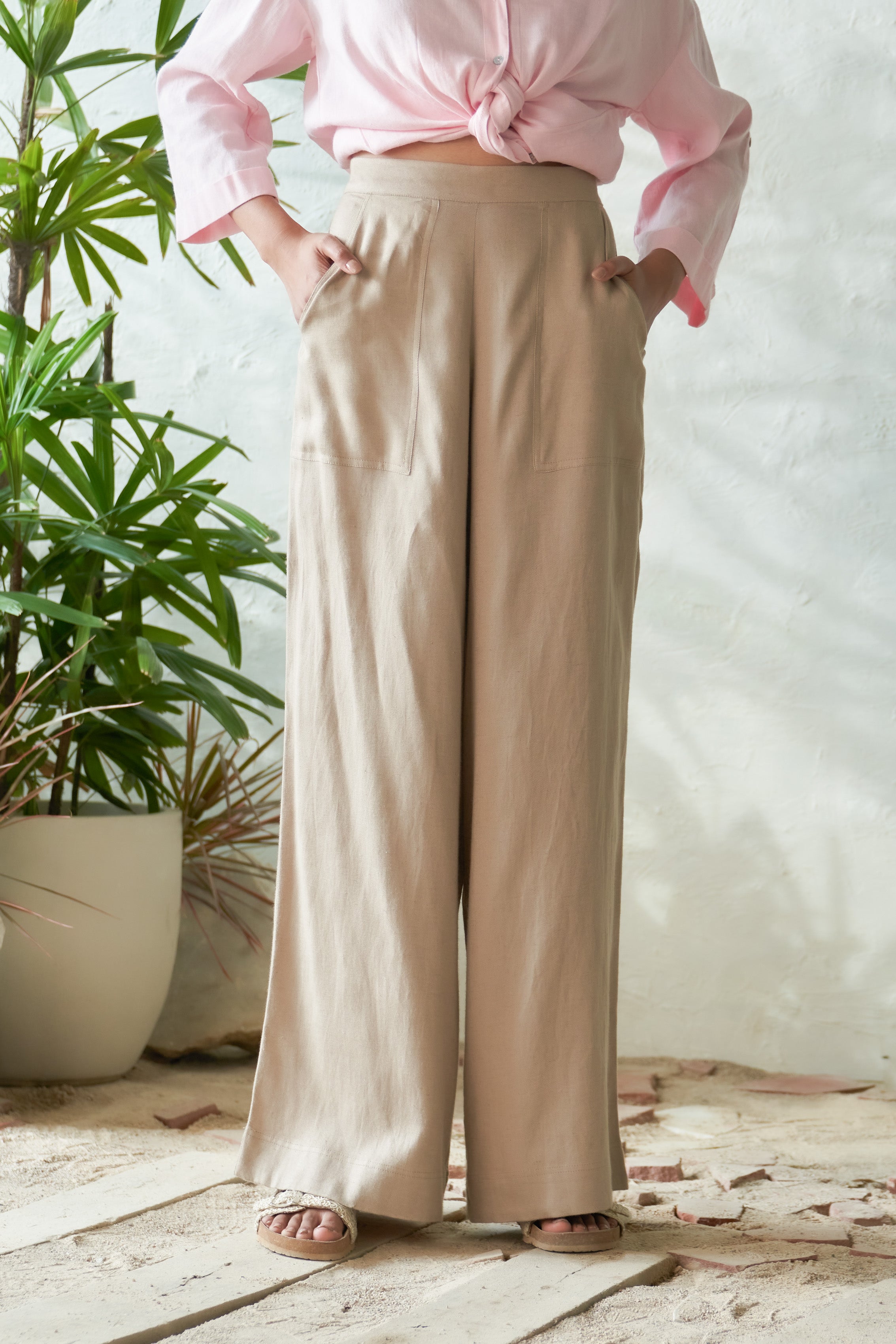 Effortlessly chic and comfortable, the Frappe Coffee Pant is designed with wide, full-length legs and stylish broad folds at the bottom for a refined look. Crafted with patch pocket stitch detailing and a flat front waistband paired with an elasticated back, these pants offer both structure and ease. Perfect for casual outings or dressed-up occasions, they blend sophistication with everyday comfort.