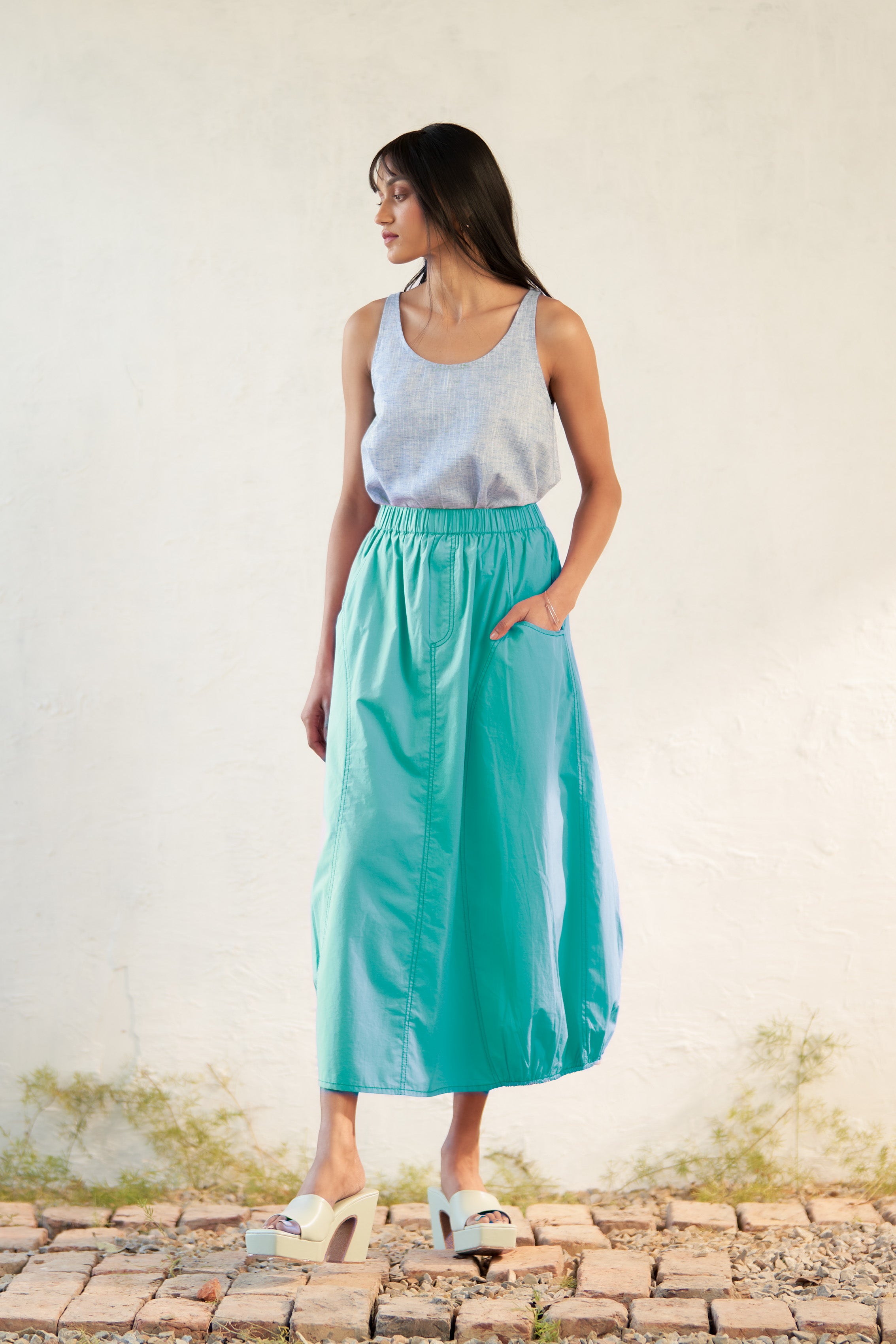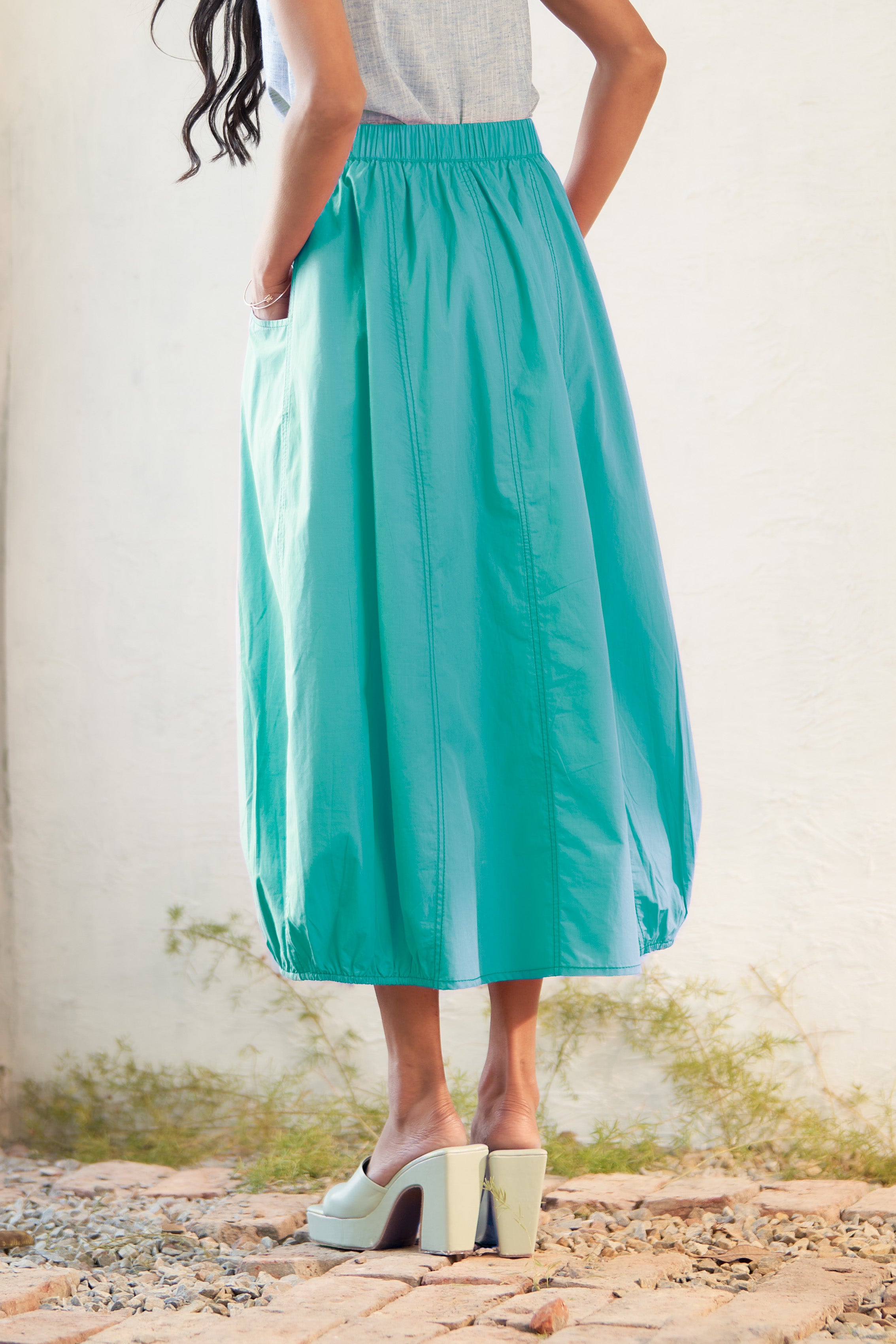 An effortless blend of comfort and modern style, the Mooncurrent Skirt is your go-to for casual chic dressing. Designed with a relaxed fit, it features a unique elasticated hem on both sides, an elasticated waistband, and intricate stitch detailing for a fashion-forward finish. Easy to style and endlessly versatile, this skirt is perfect for laid-back gatherings and everyday wear.