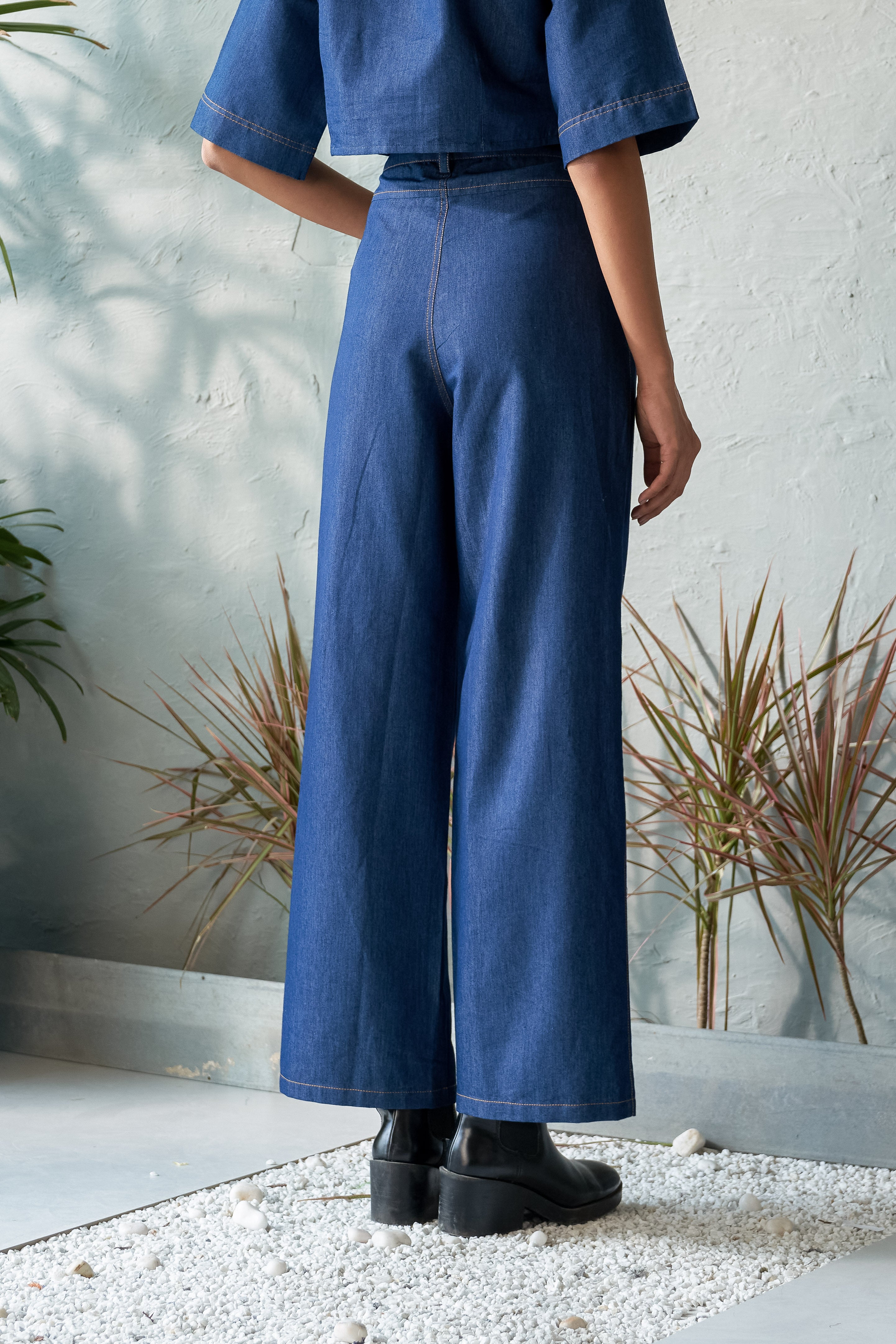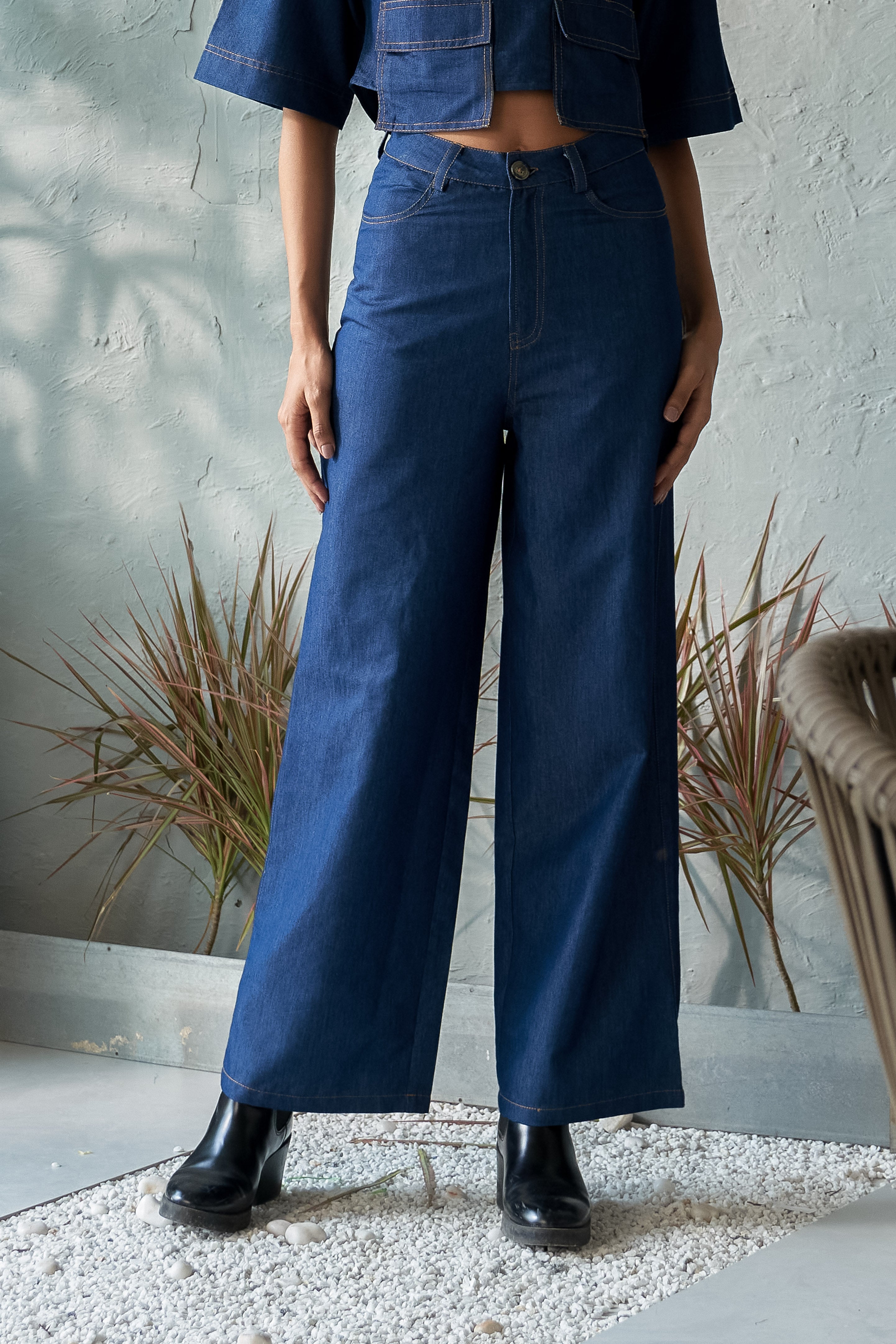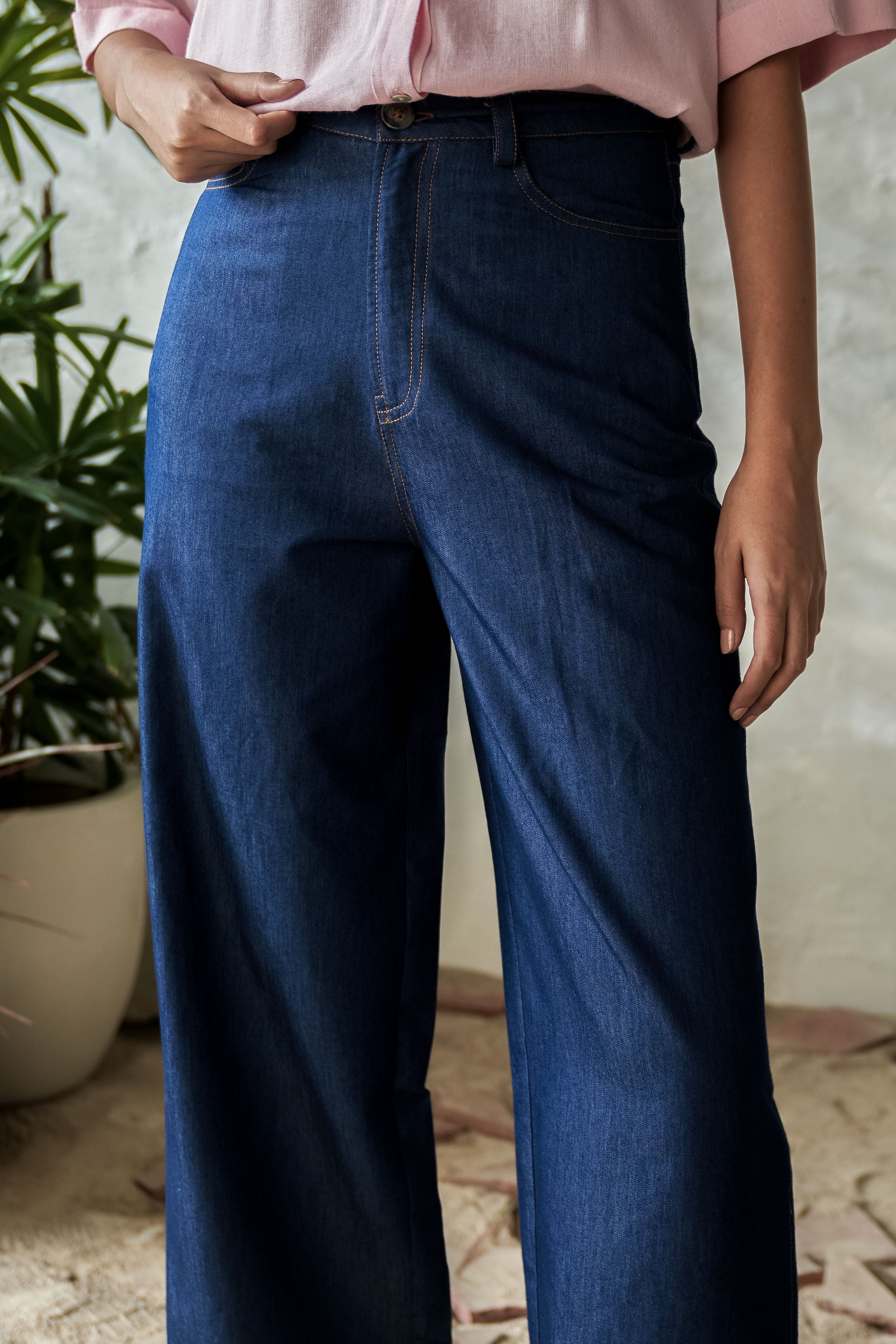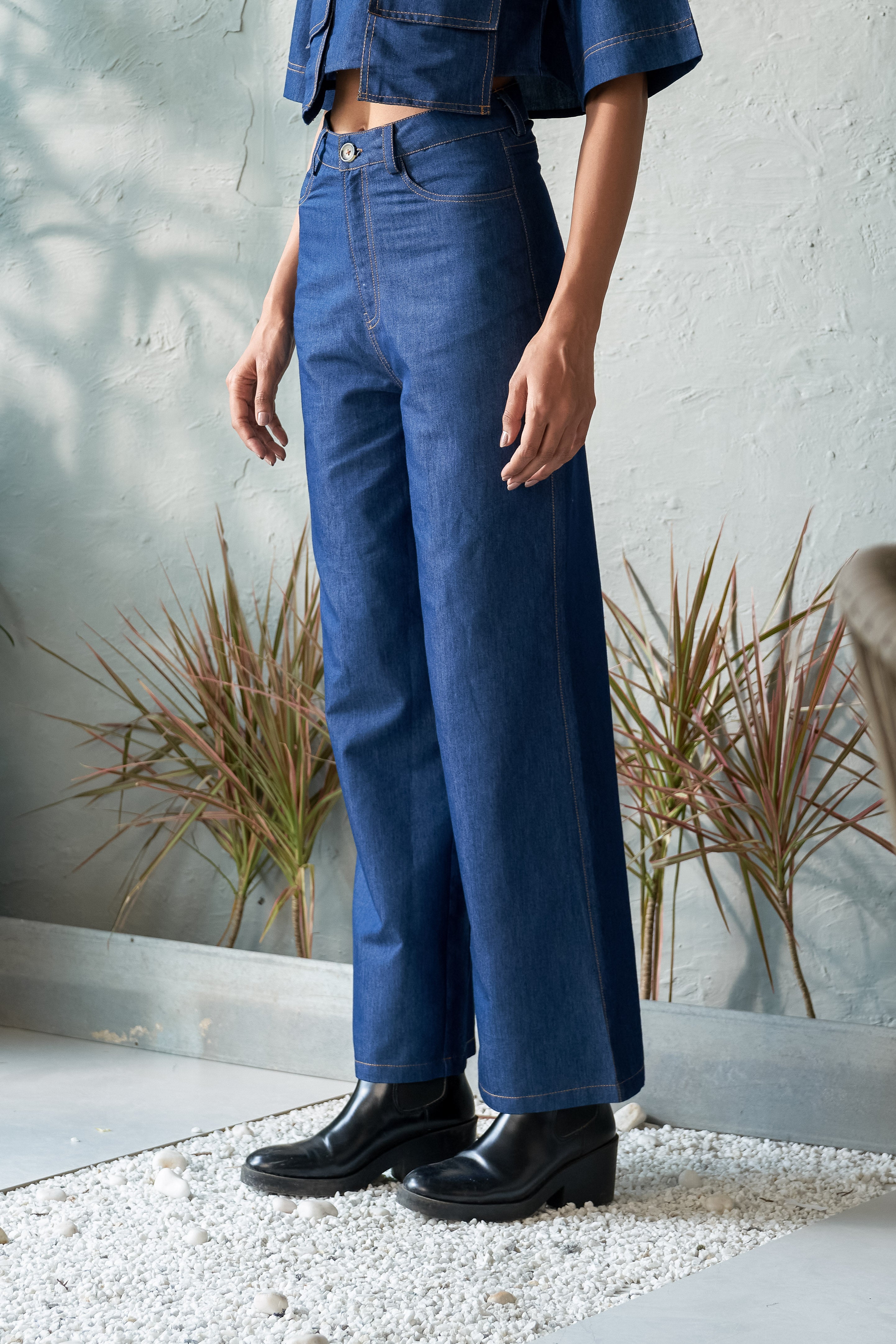 These timeless Onyx Blue Denim Pants feature a high-waist and straight fit, making them a flattering addition to any wardrobe. The leg-elongating high-waist design and classic tailored silhouette make these pants perfect for both casual and formal occasions. Dress them up with heels or keep it casual with flats or sneakers - either way, you'll look effortlessly chic.