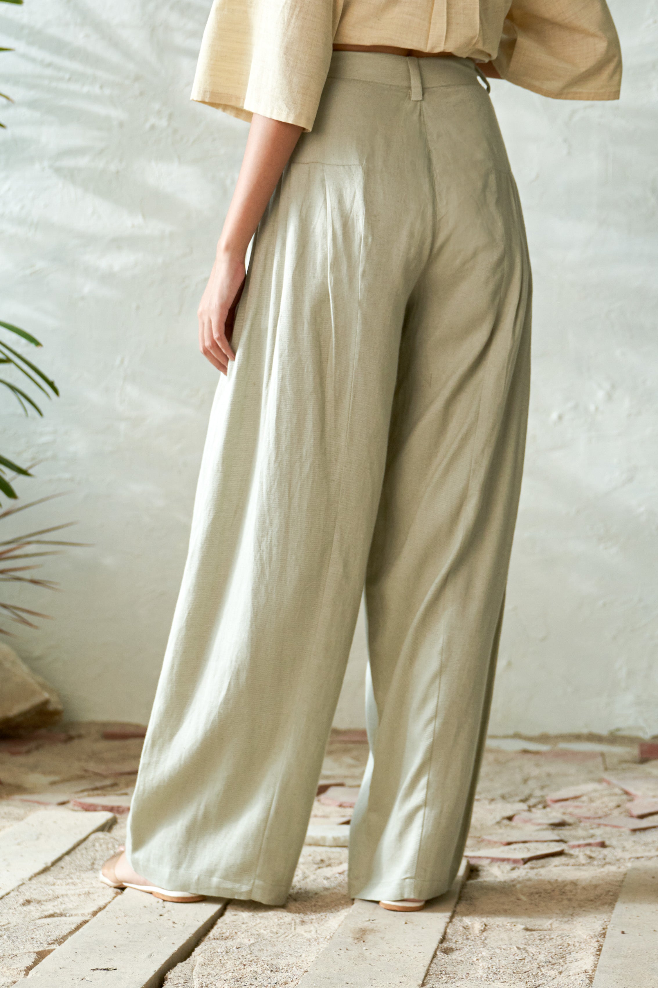 Add a playful twist to your wardrobe with the Pistachio Side Pleat Pant. Crafted from soft flex rayon, these pants flow effortlessly, offering comfort and style. The side pleats add a touch of elegance, creating a breezy, flared look perfect for casual outings or relaxed gatherings.