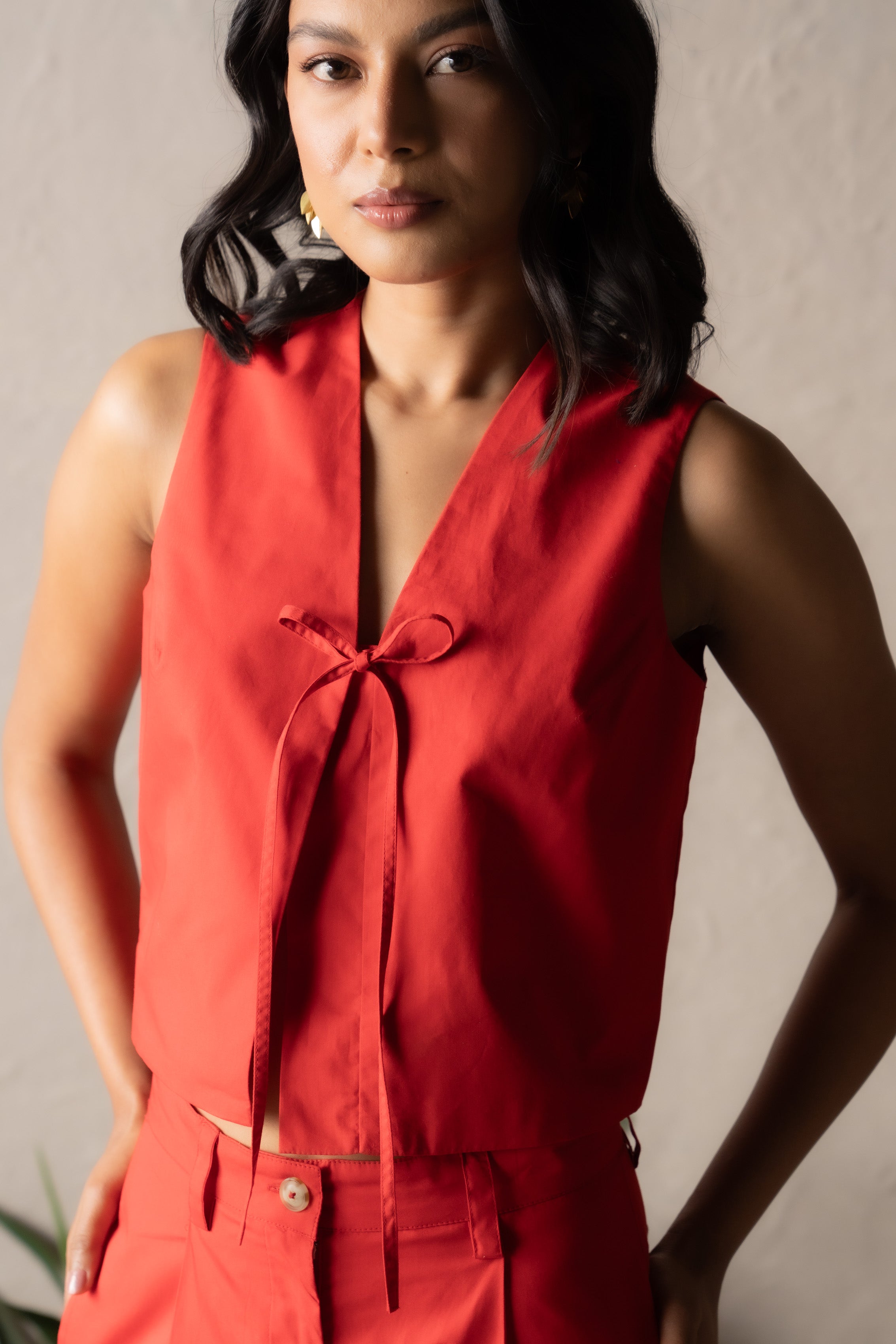 Inspired by the melodic ascent of beauty and sophistication, the Aarohi Top redefines timeless charm. Crafted from breathable cotton, this sleeveless design features delicate tie-up strings on the front placket and a refined V-neckline. Perfect for versatile styling, it effortlessly blends grace with everyday comfort, making it a must-have for your wardrobe.