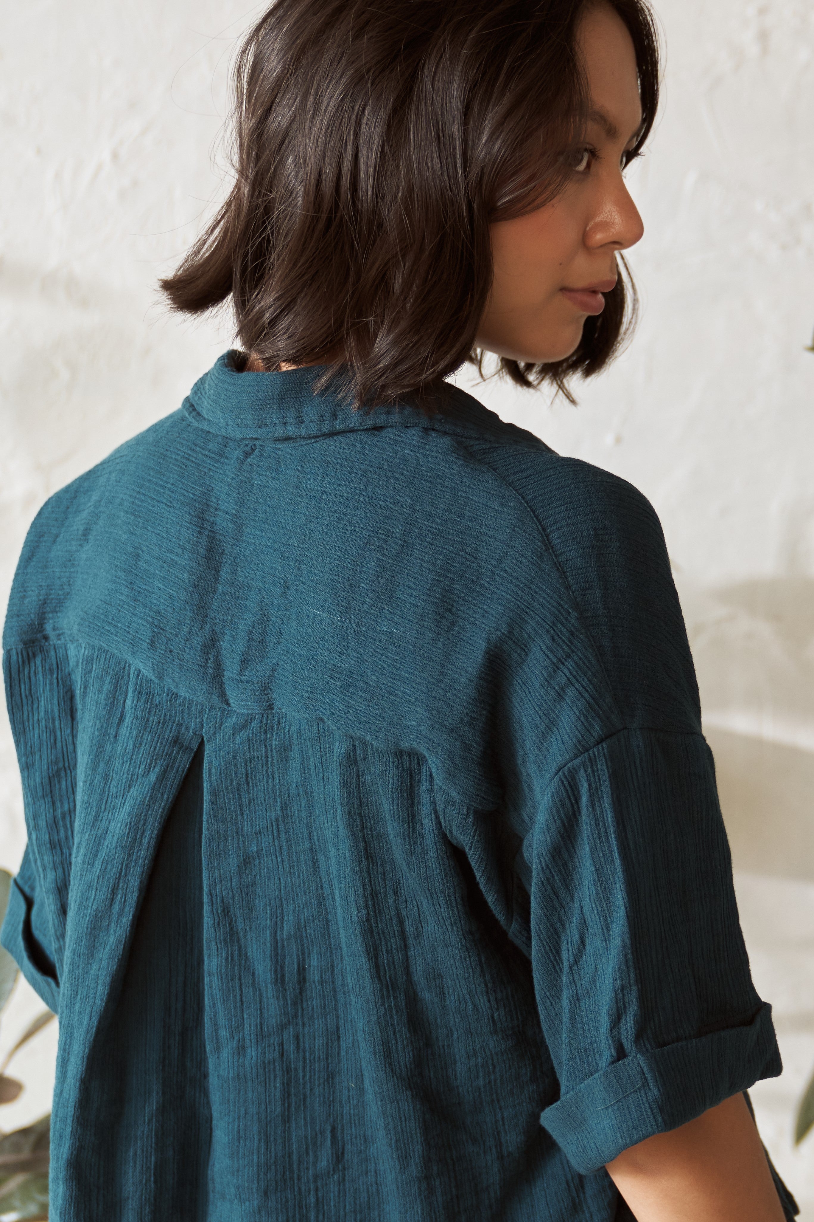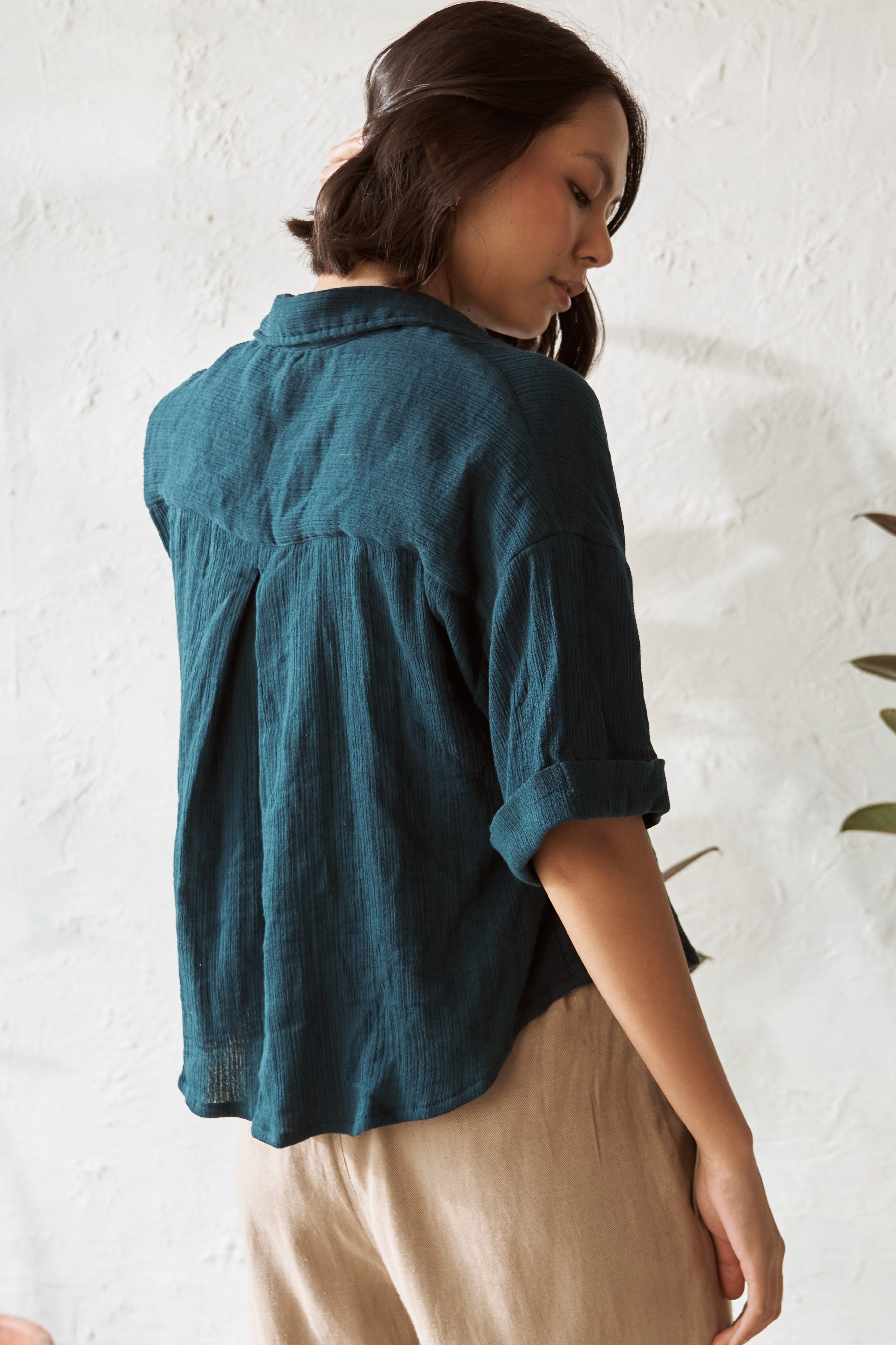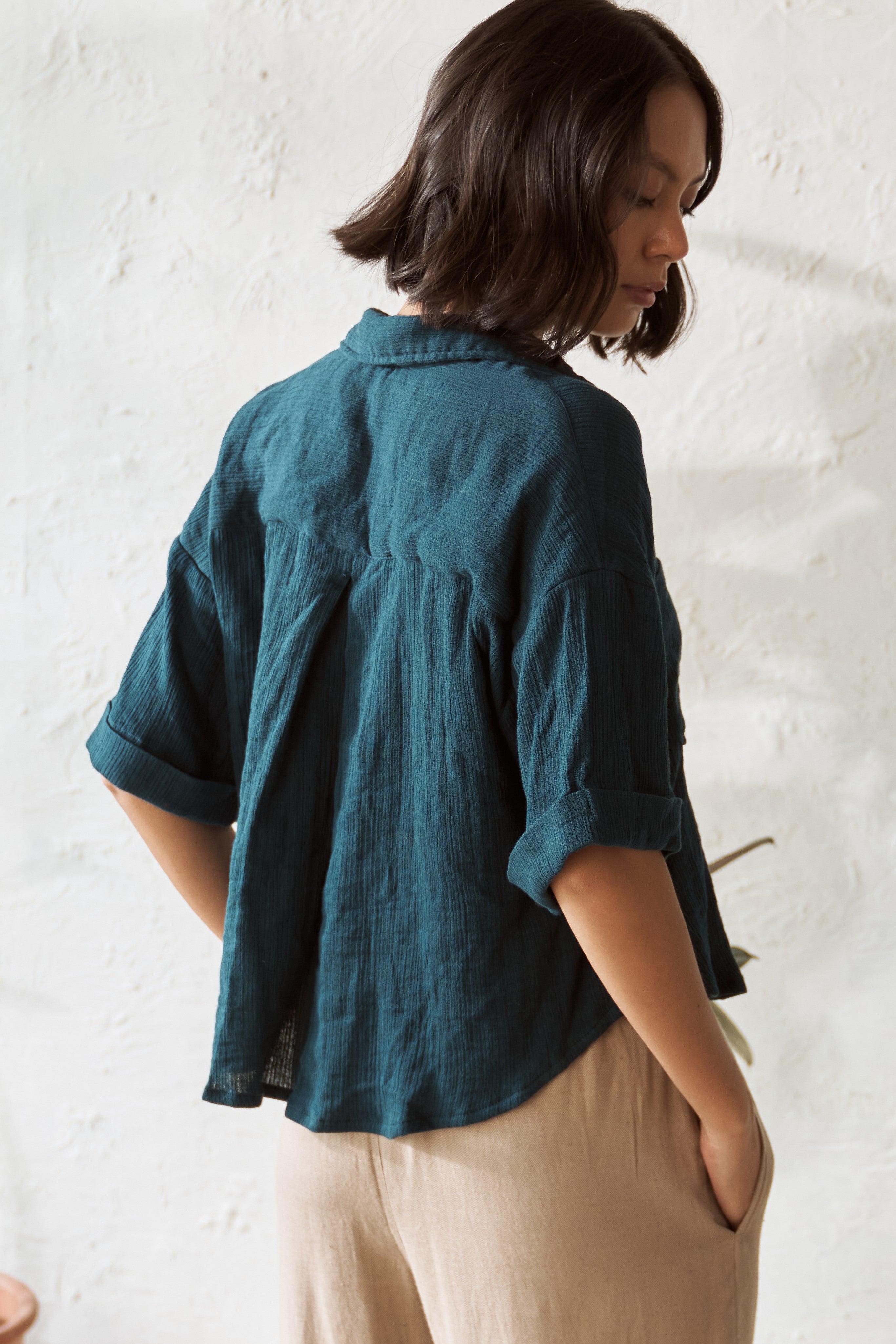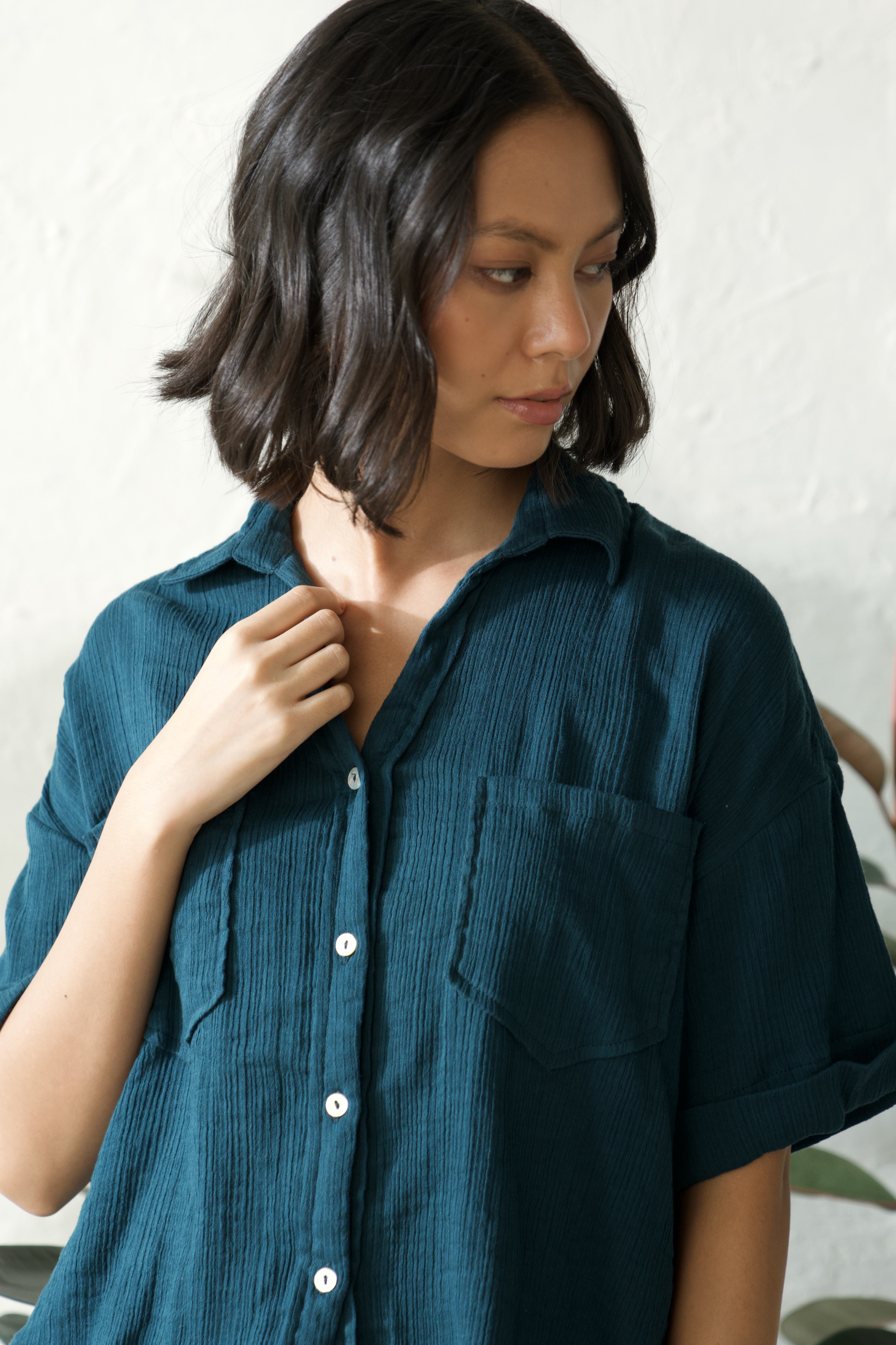 Imagine rocking this cool short crop shirt in your everyday wear! It's got these neat pockets in the front. You can pair it with shorts or any pants you like, giving you tons of options to mix and match. This shirt is just what you need for everyday. The crop shirt is going to be a staple stay in your wardrobe.