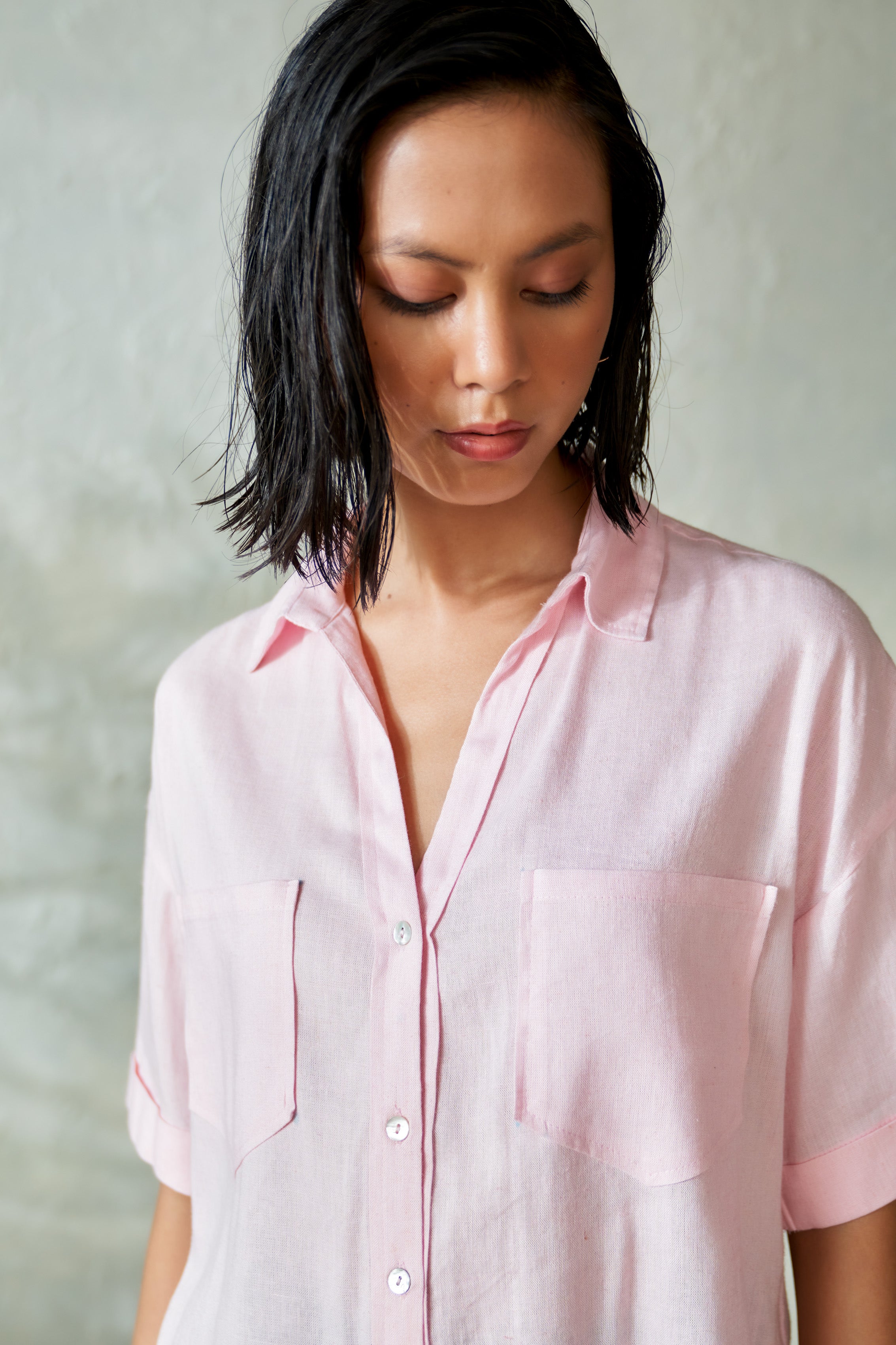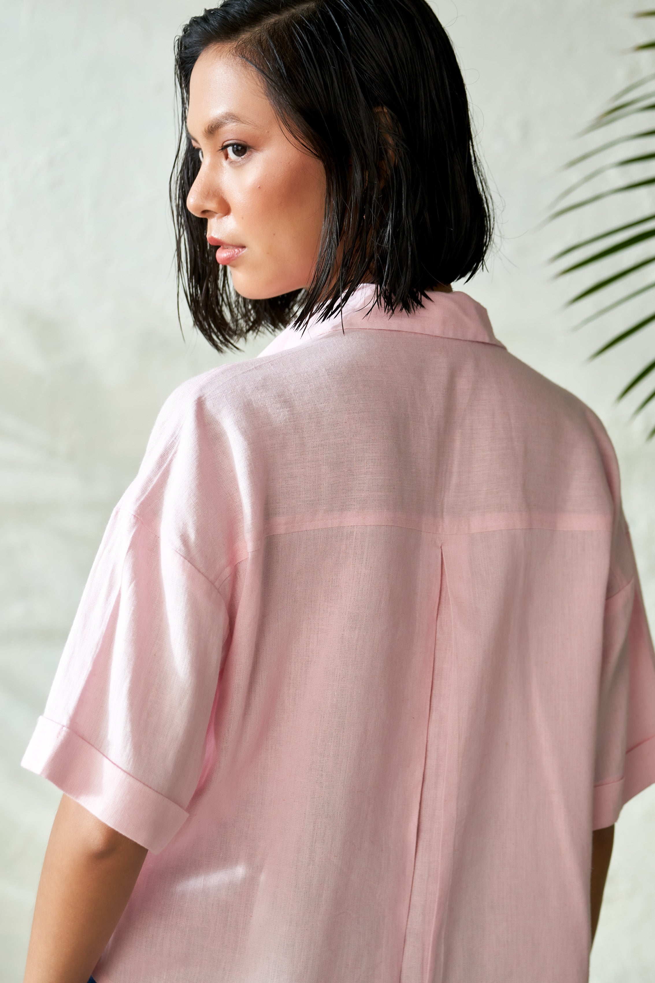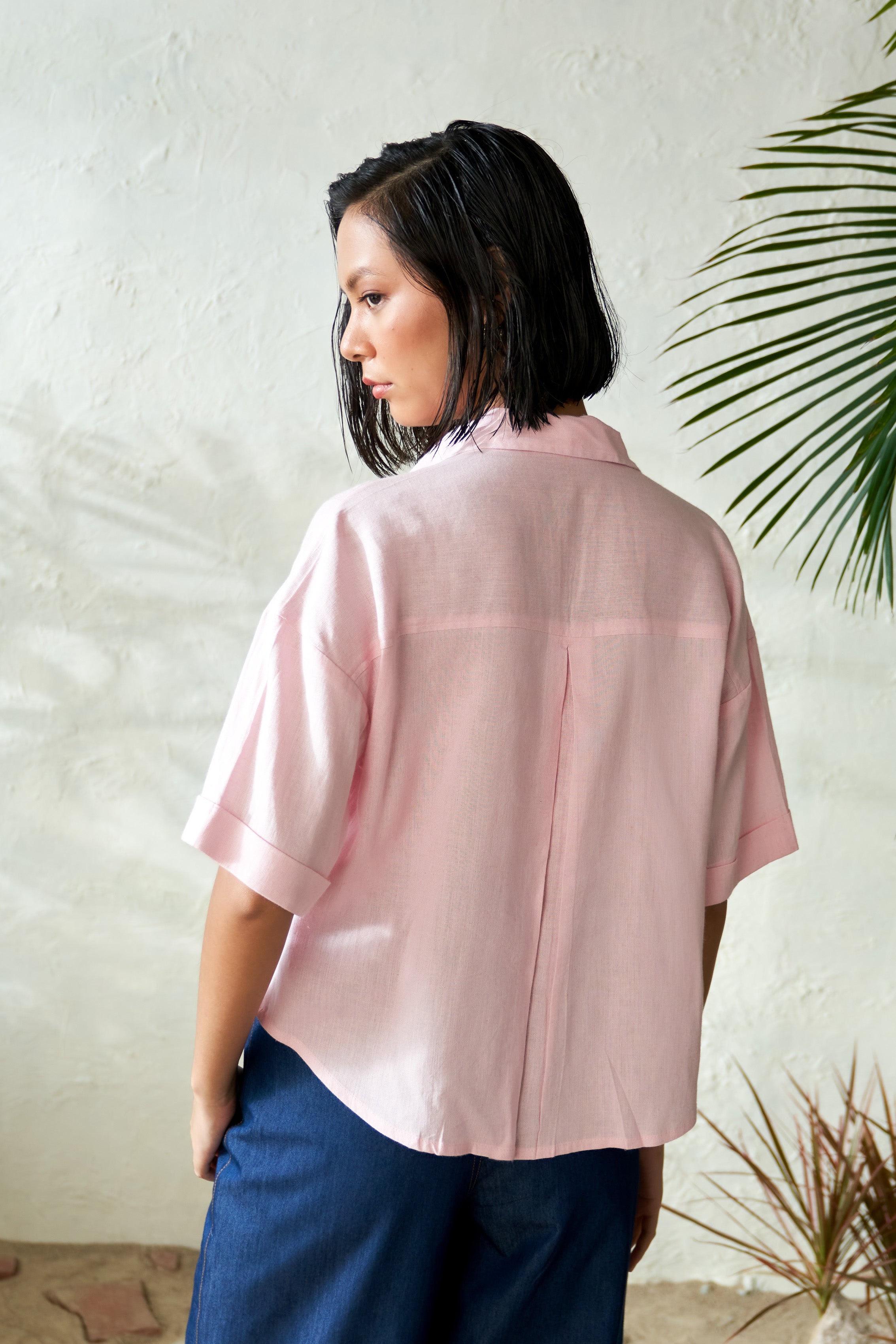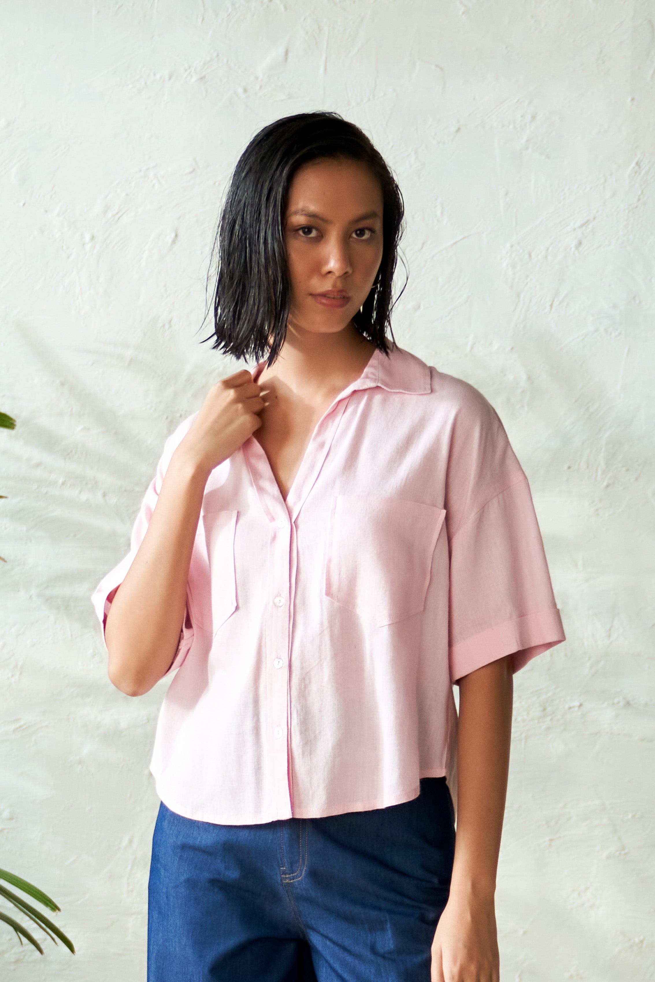 Start your day with the refreshing charm of the Candy Slush Shirt. This cropped light pink shirt, crafted from breathable summer staple flex fabric, features neat front pockets and exudes effortless style. A Canoopi-recommended must-have for a chic and sunny vibe.