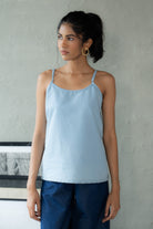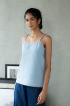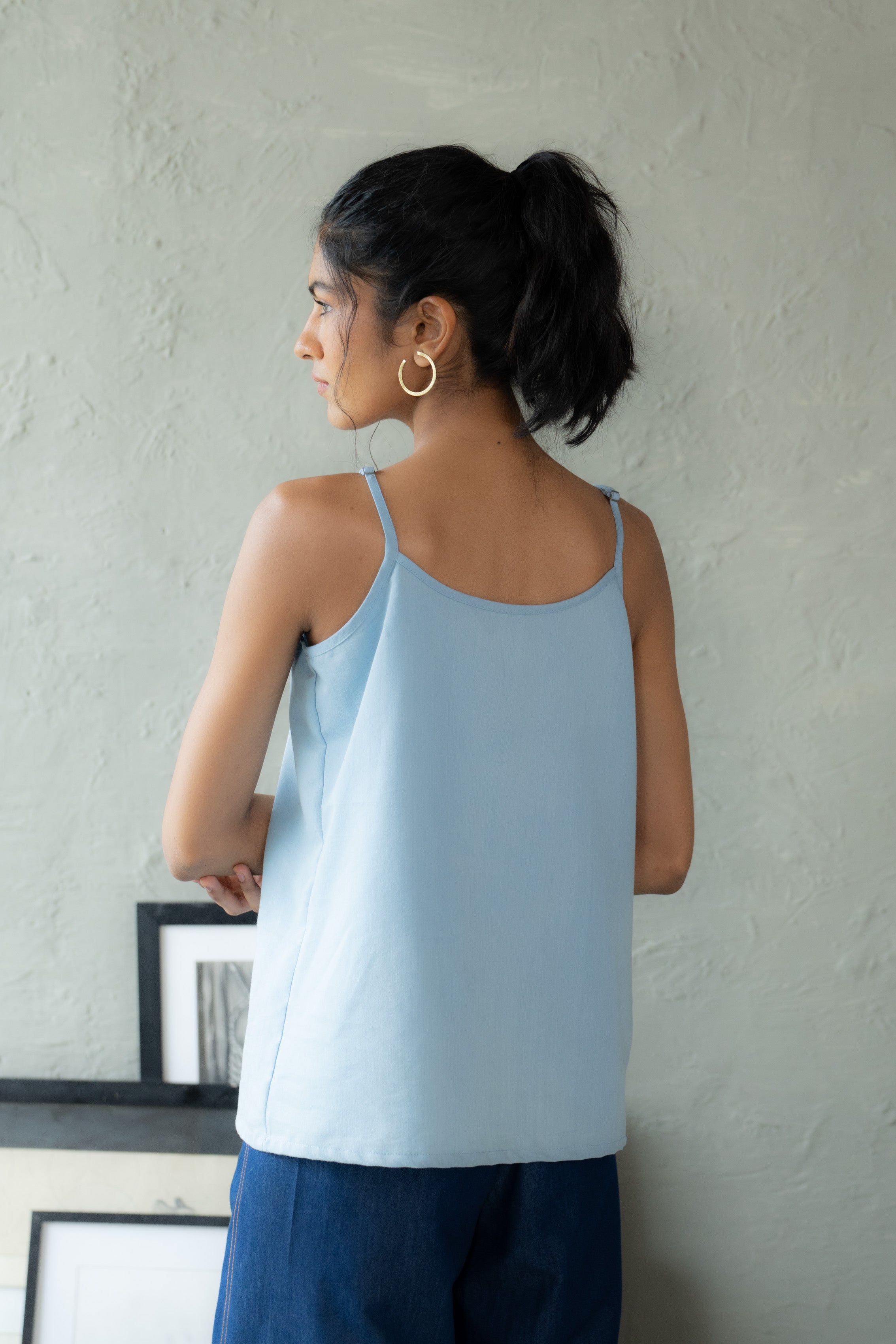 The Heritage Wayfarer Top in soft cotton denim is designed with slim spaghetti straps and a fluid, relaxed fit. Perfect for layering or wearing solo, it pairs effortlessly with denim pants, skirts, or under the matching overlay for a versatile look.