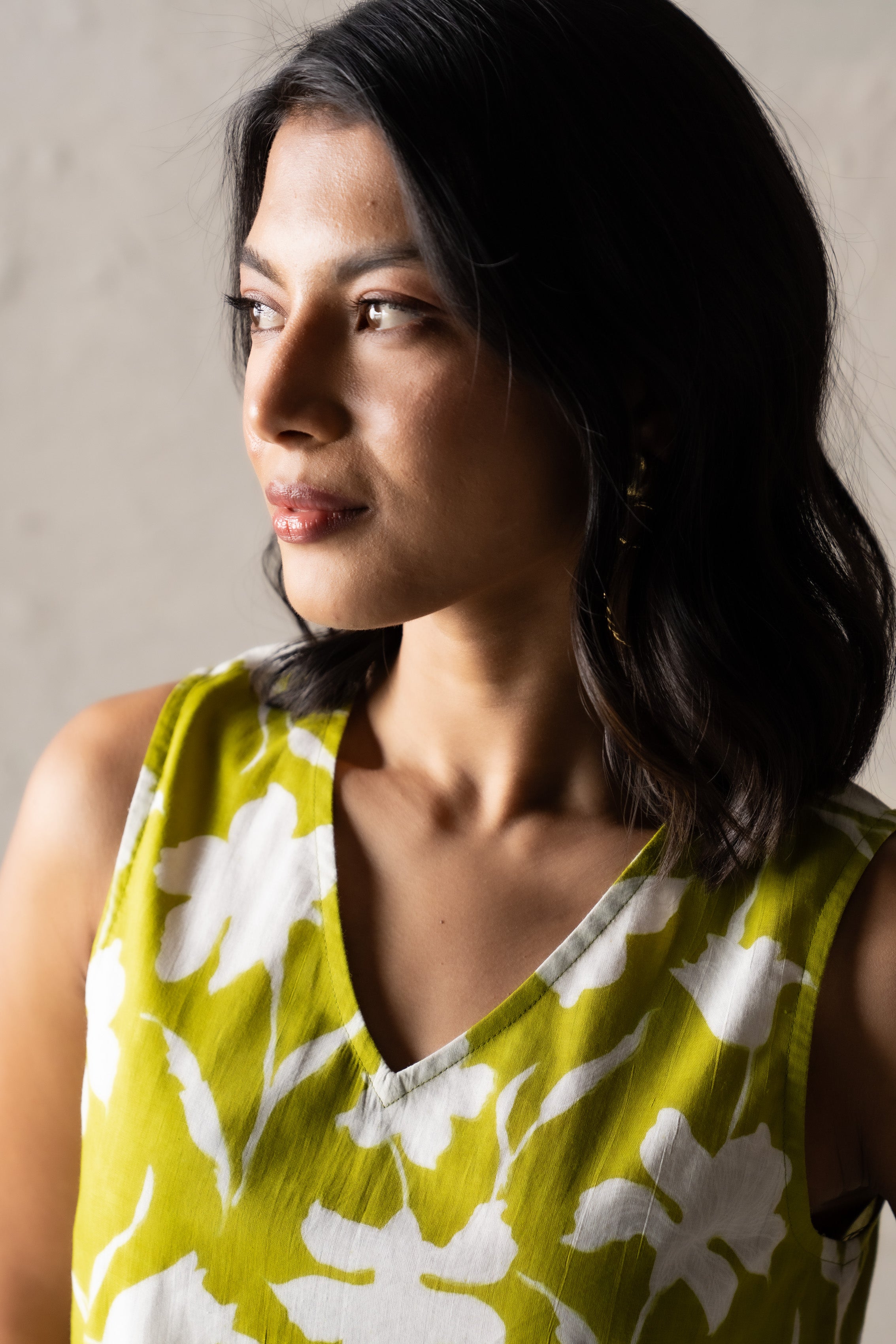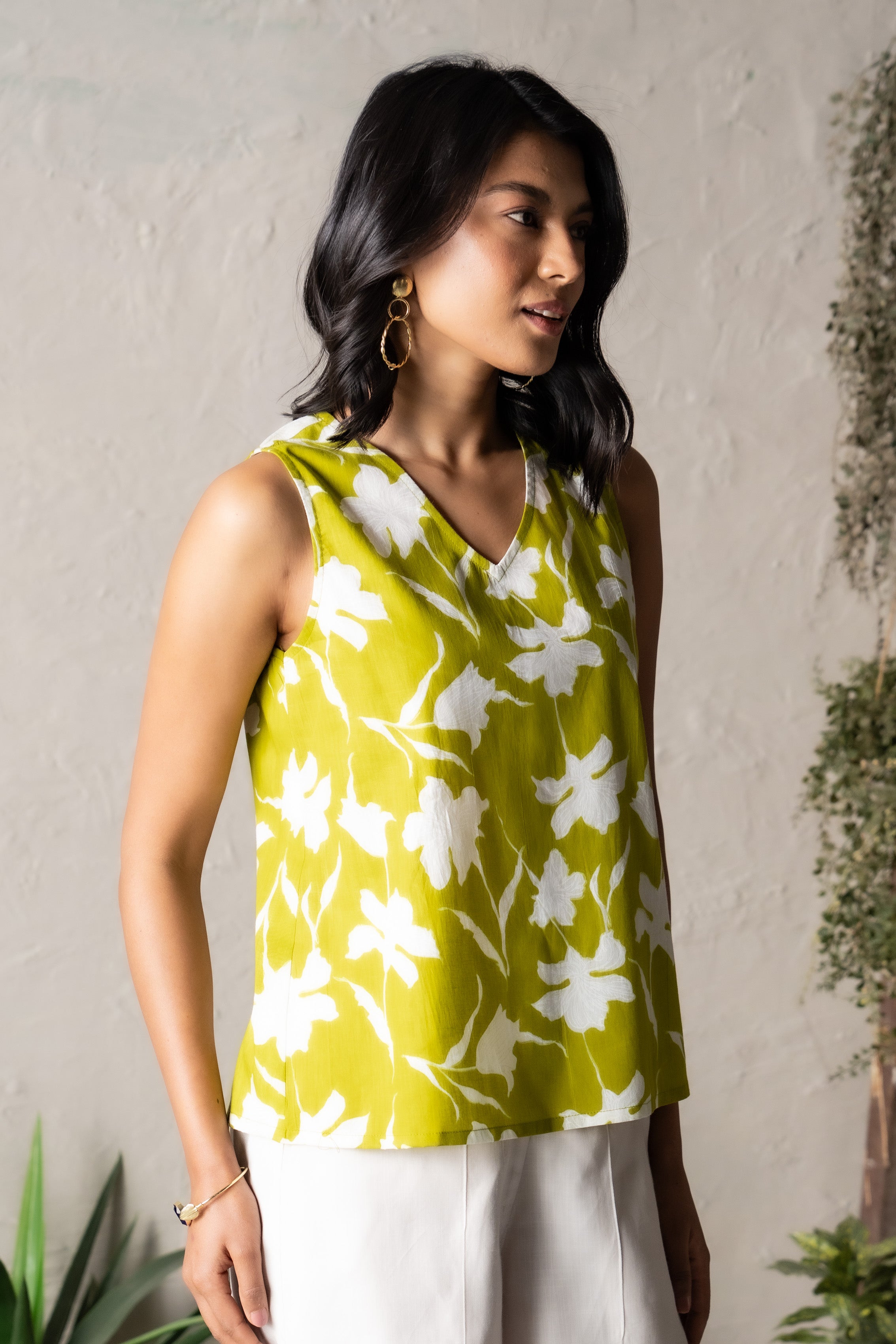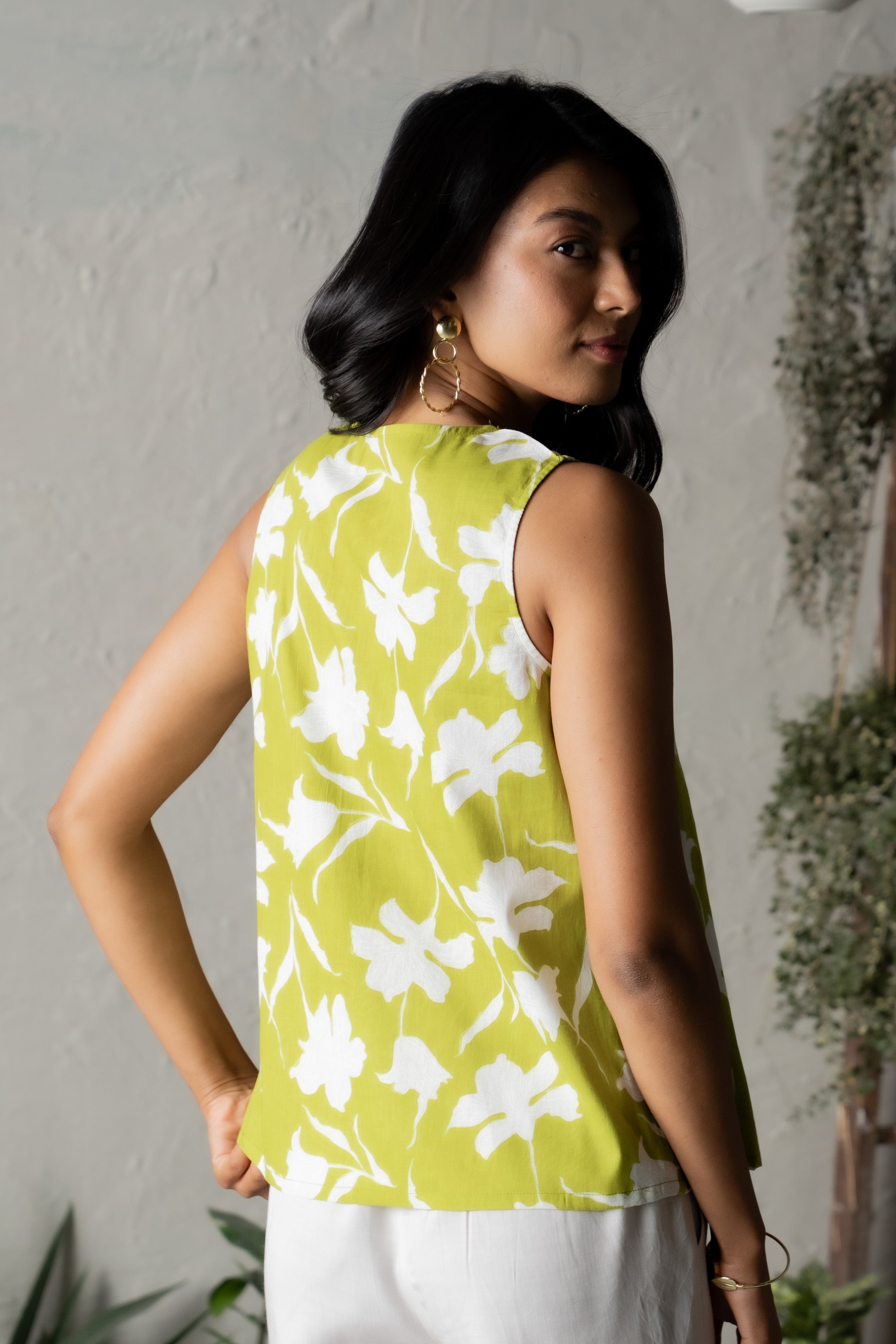 Discover the carefree charm of the Pergola Charm Set, featuring a lime green top and classic white pants. The top is designed with a relaxed silhouette, a flattering V-neckline, and bold front pockets for a blend of style and functionality. Crafted from lightweight cotton, it provides a barely-there feel, ensuring comfort throughout the day.
