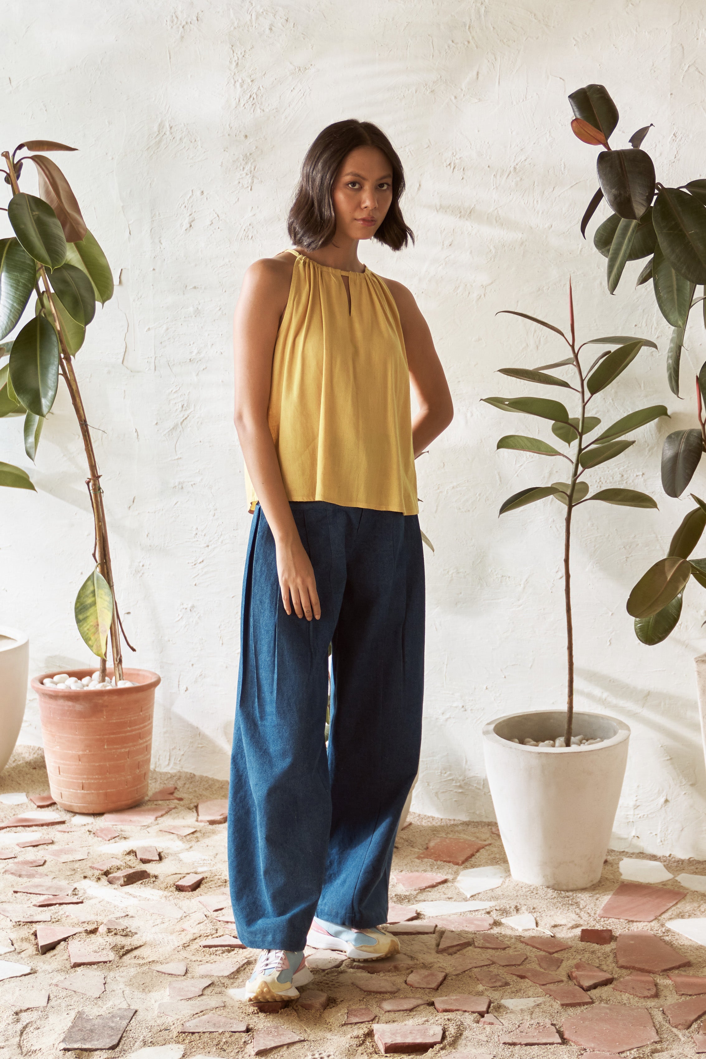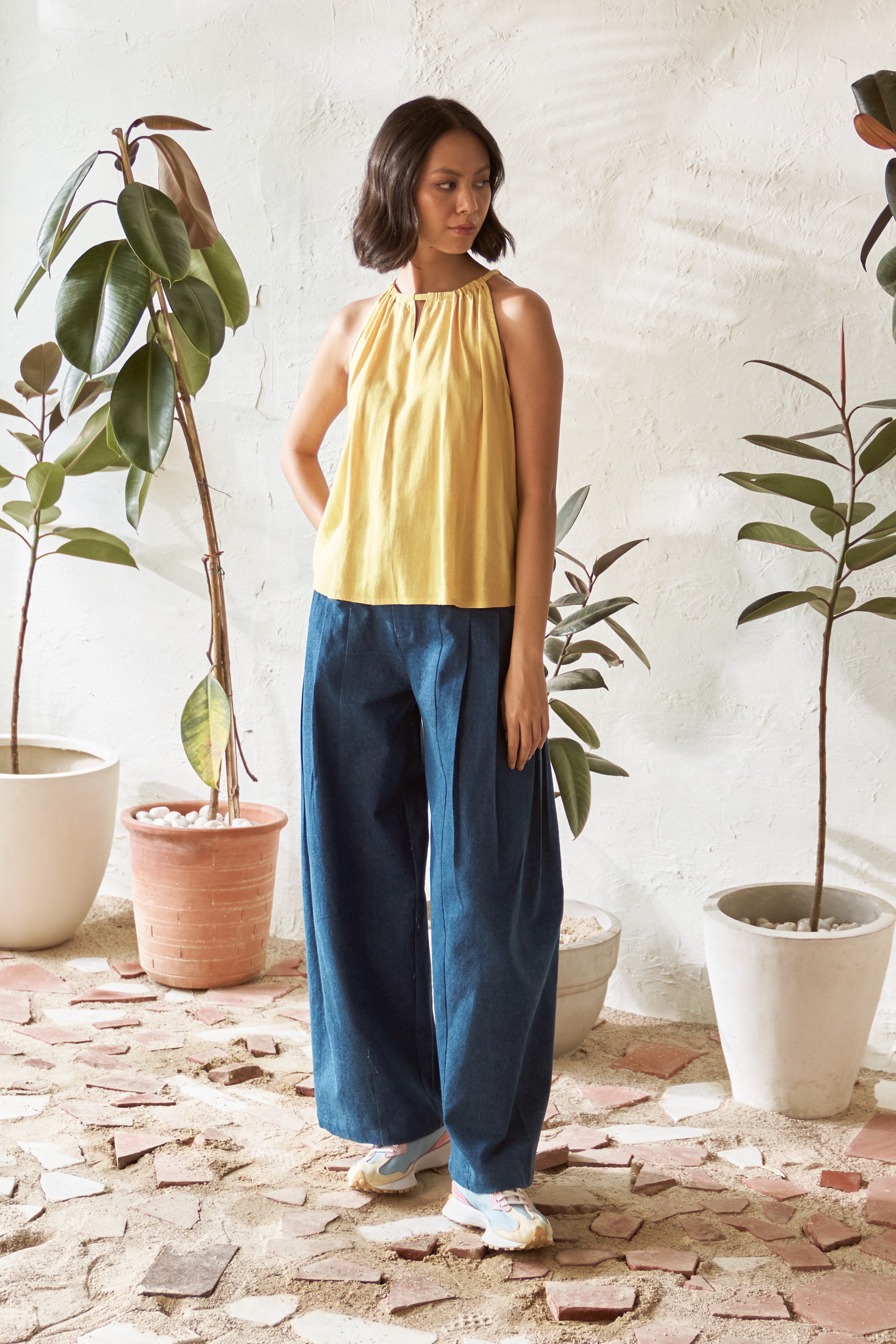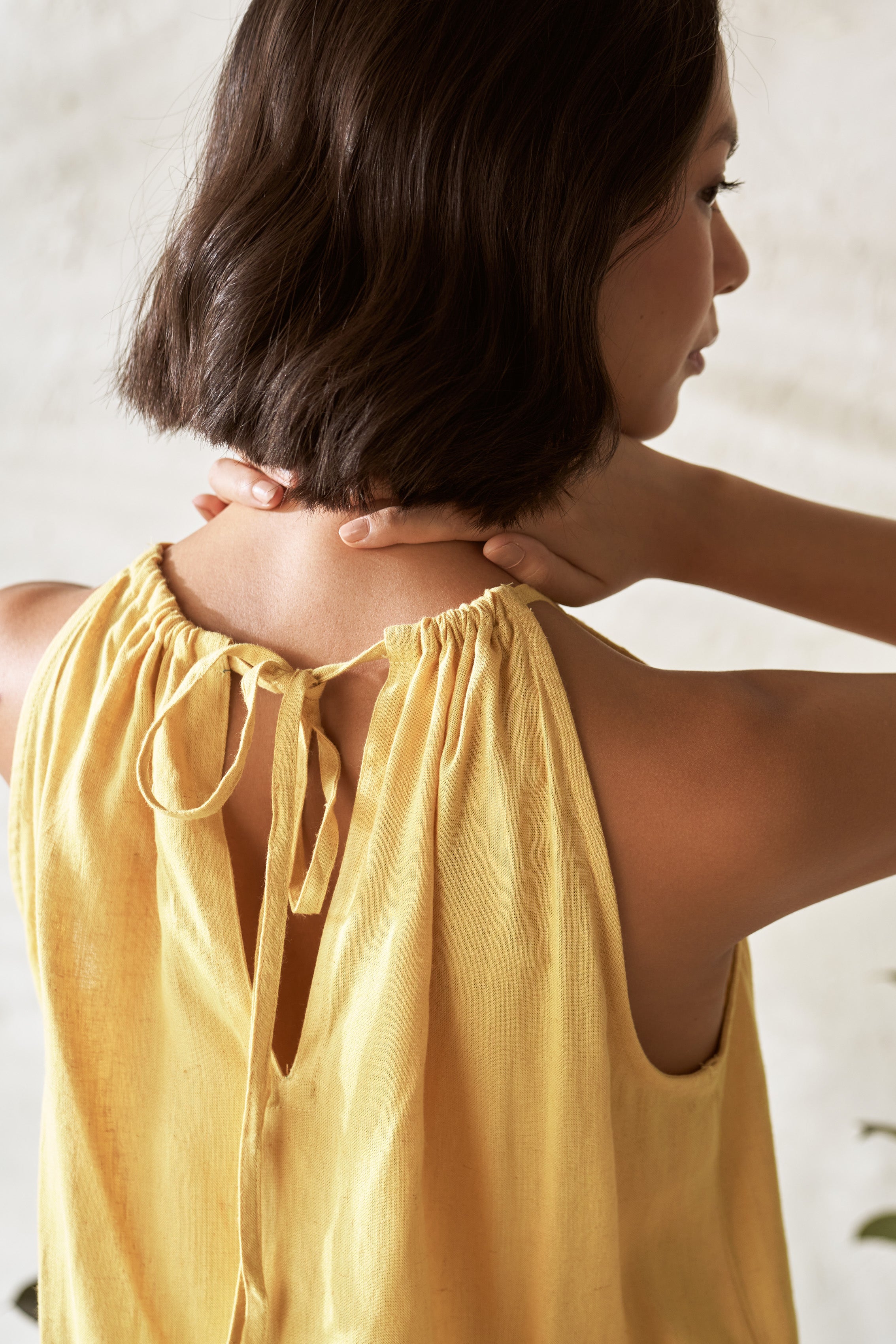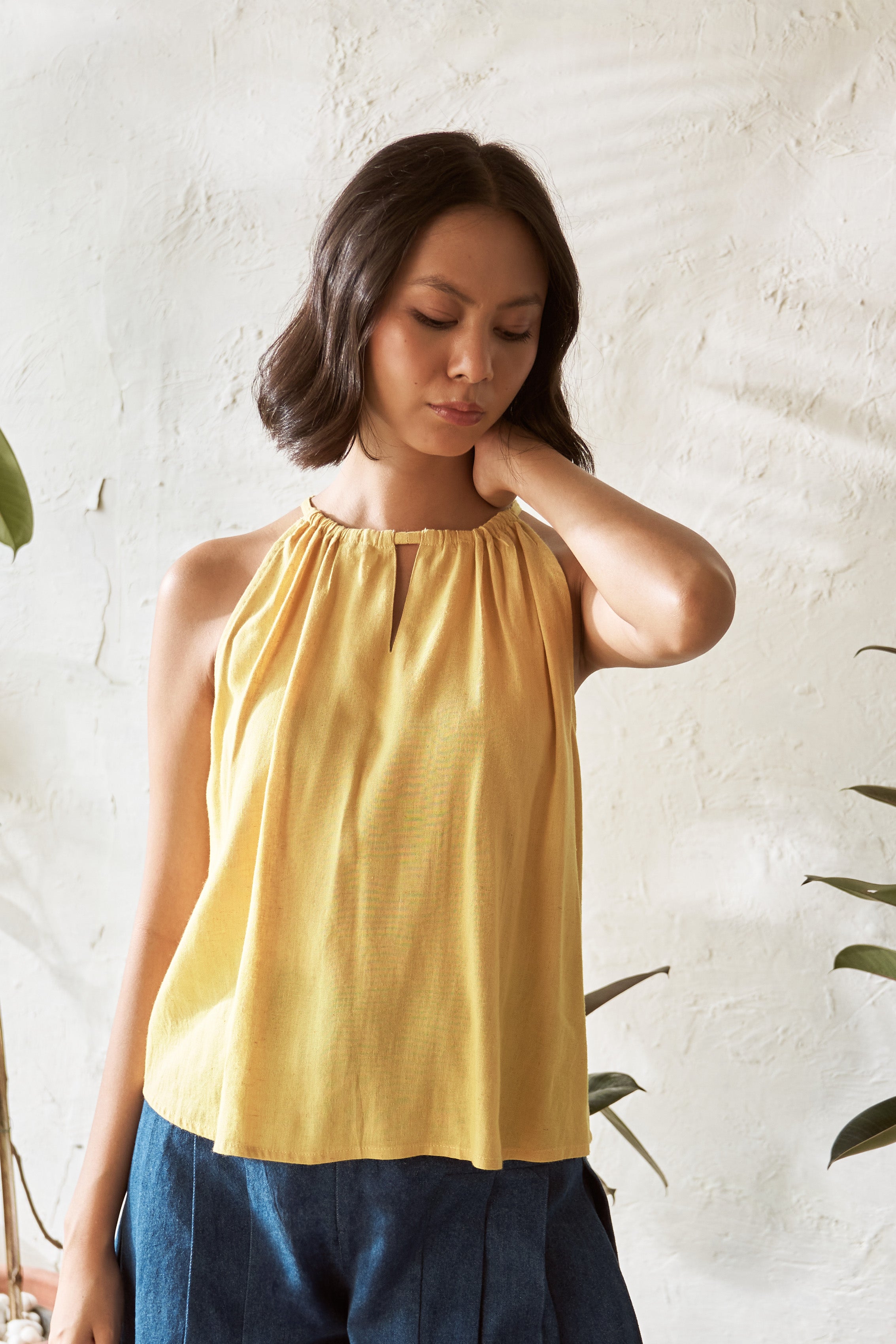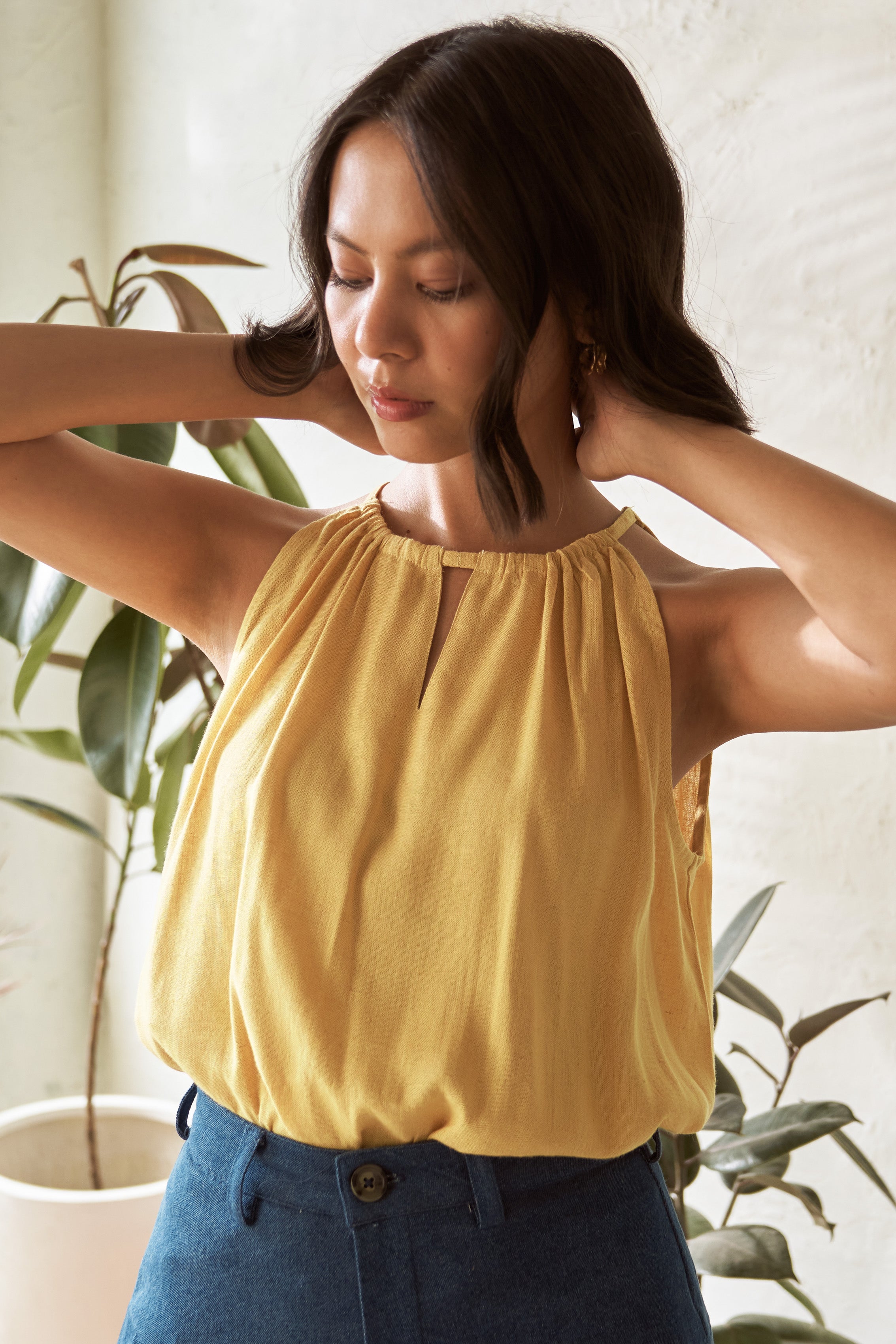 Channel the golden glow of sunny fields with the Honeygrass Top. This halter-neck tank, crafted from crisp flex fabric, features a tie-up neckline that mimics the natural beauty of soft waves in the sand. Its cropped length pairs effortlessly with high-waisted bottoms, making it ideal for sun-soaked adventures and breezy beach outings.