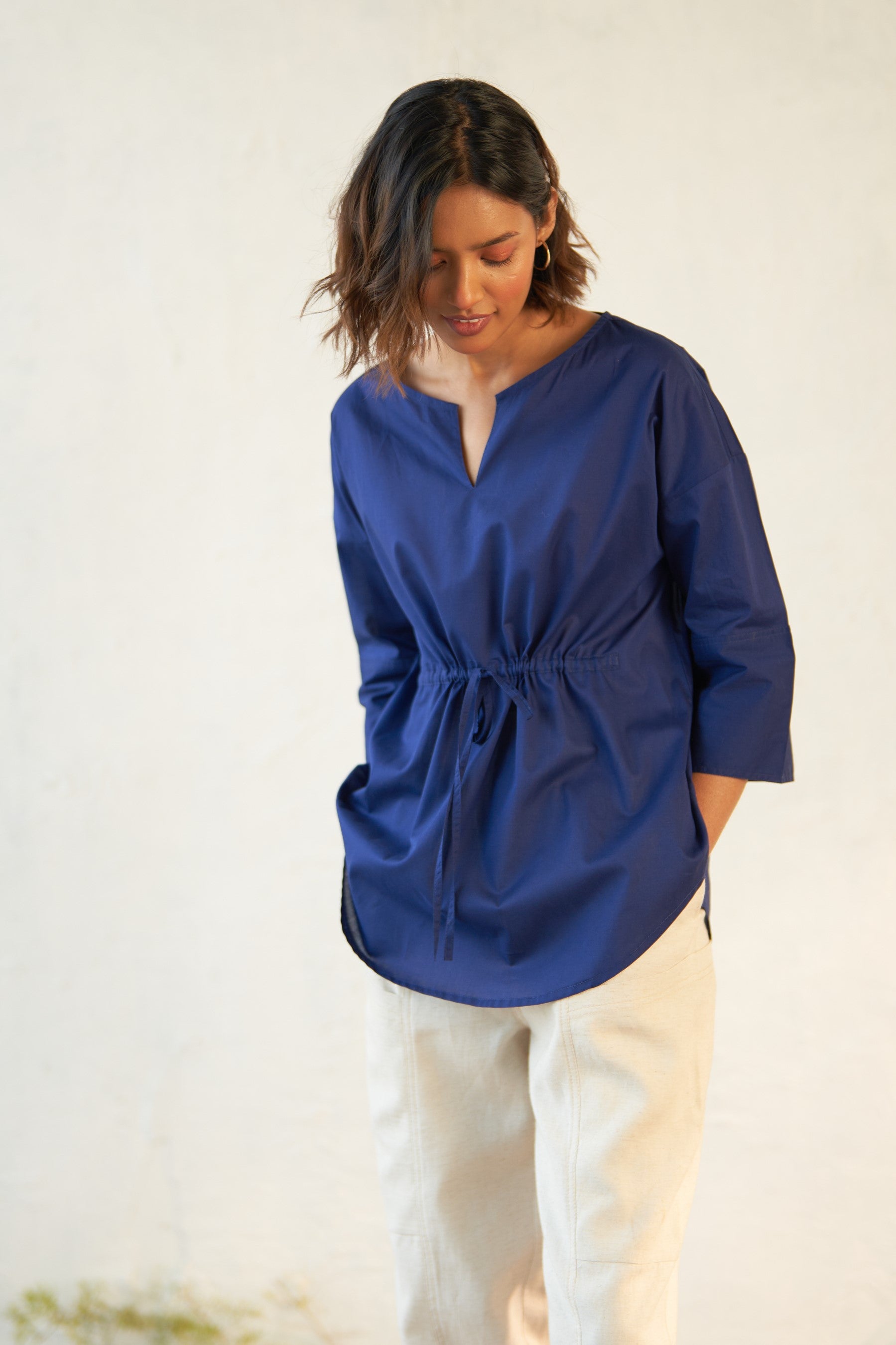 This drawstring top effortlessly harmonizes with your existing wardrobe essentials. Fashioned from soft karachi lawn, its waistline drawstring detail creates captivating gathers, ensuring a flattering fit for all body types.
