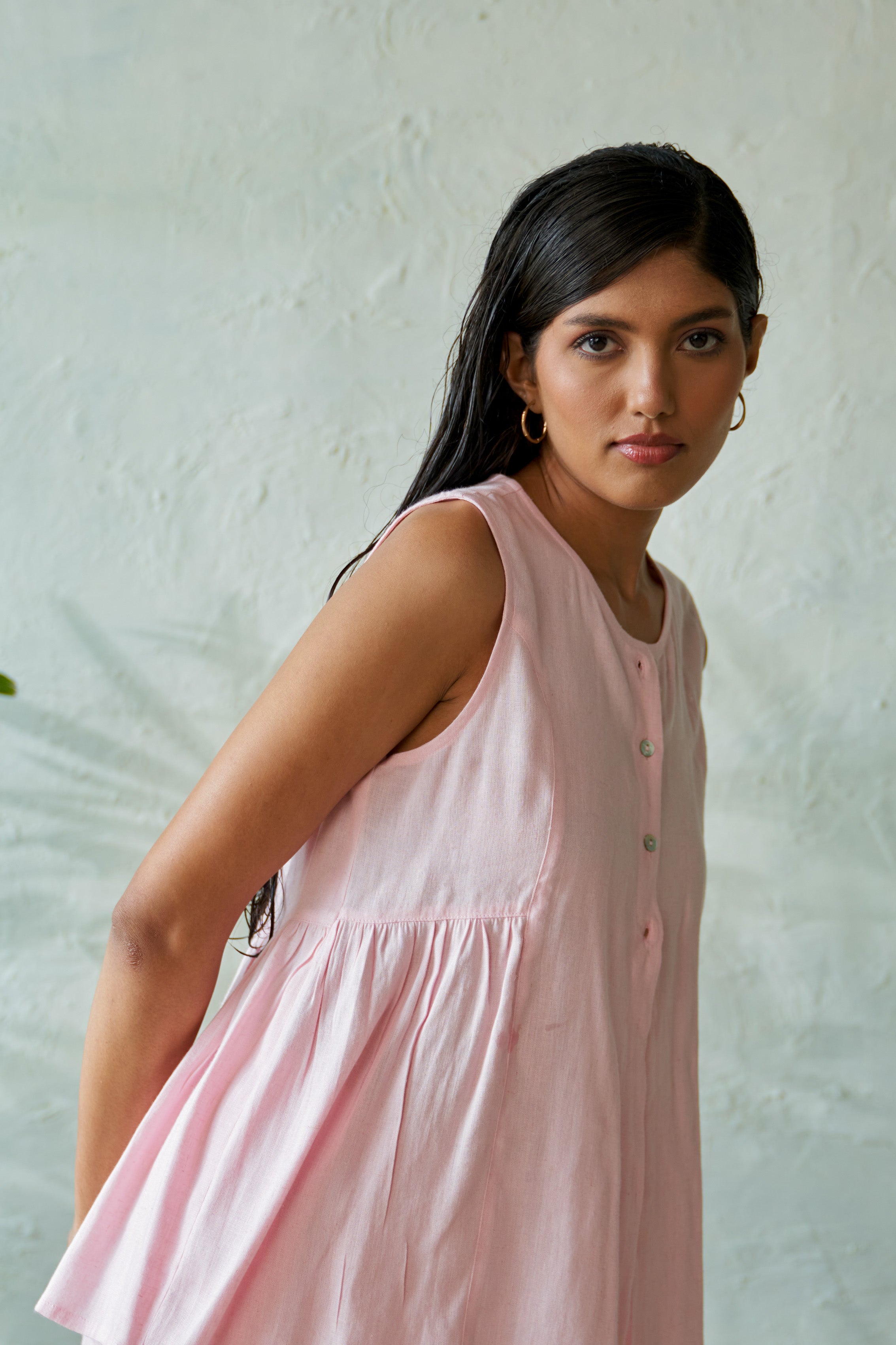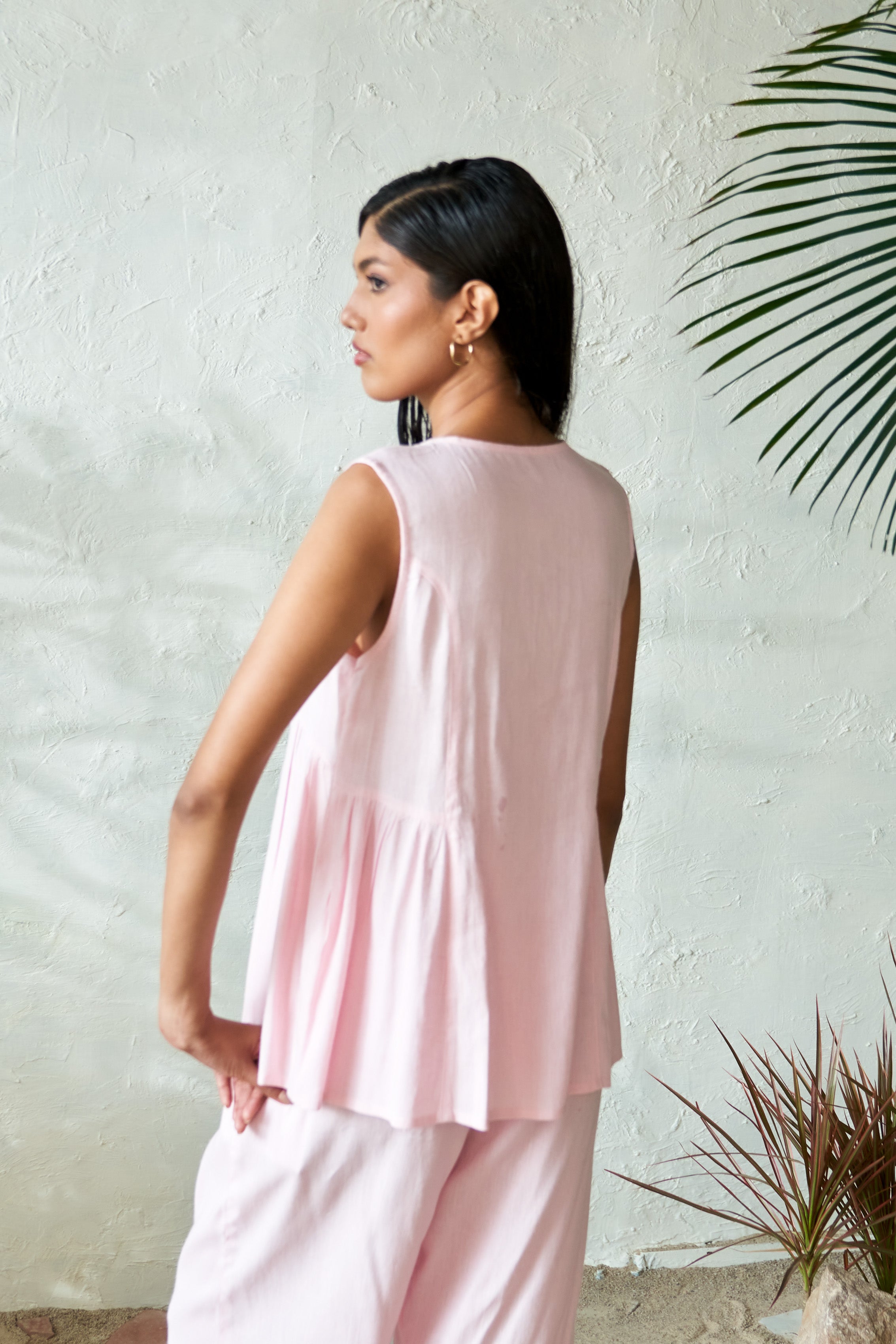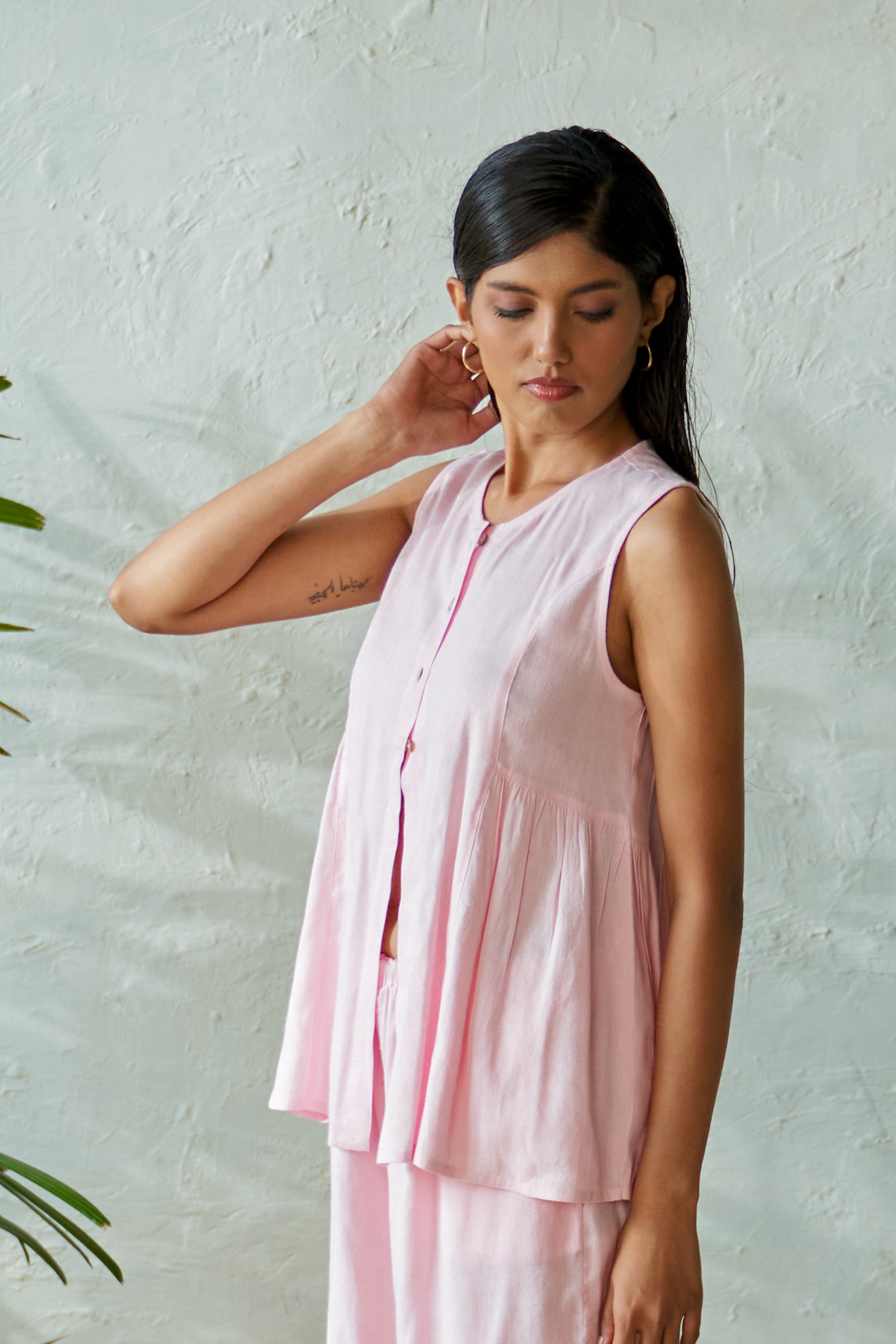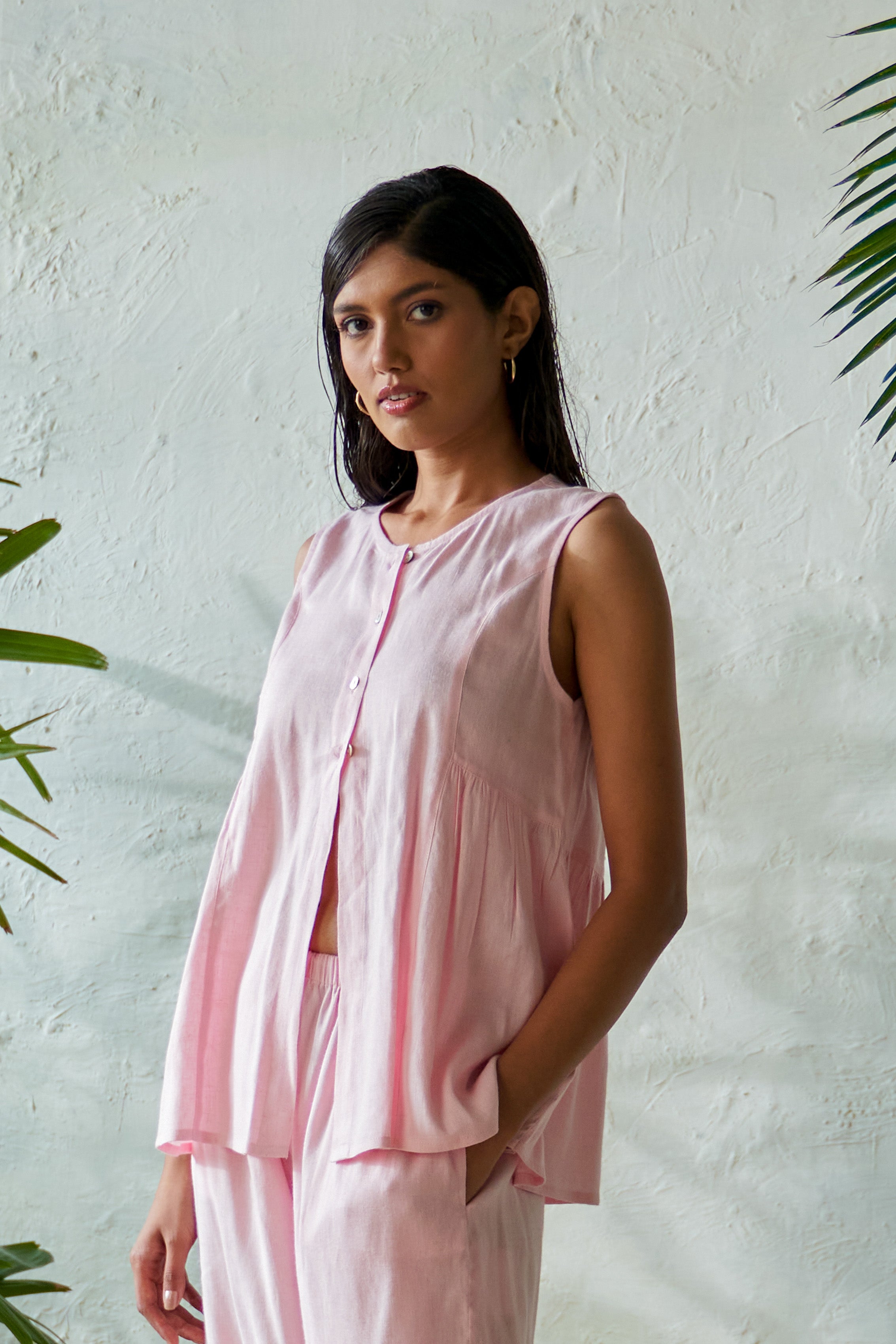 Capture the glow of a rosy sunset with the Pink Radiance Top. Featuring a sleeveless design, gathered detailing, and a summer staple cotton flex fabric, this versatile piece is perfect for sunlit strolls or brunch by the shore. Style it effortlessly by leaving the lower buttons open for a relaxed, radiant vibe.