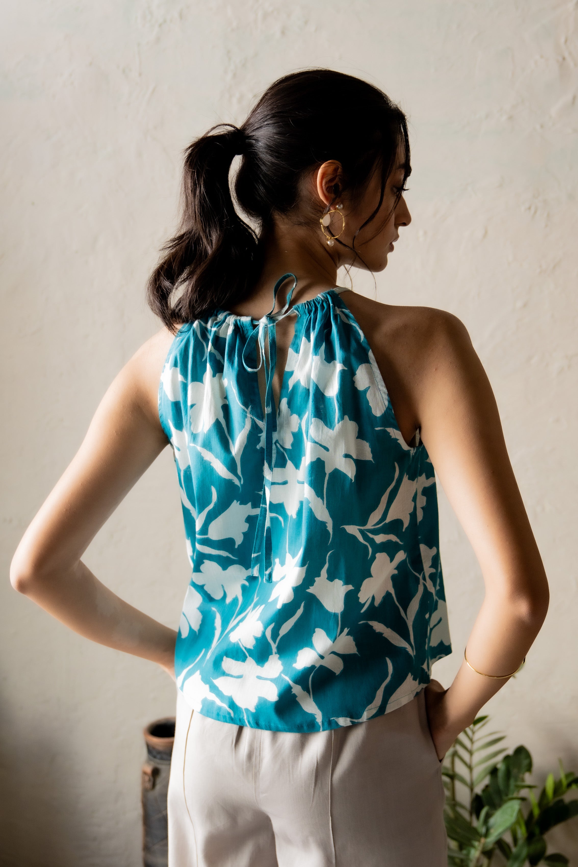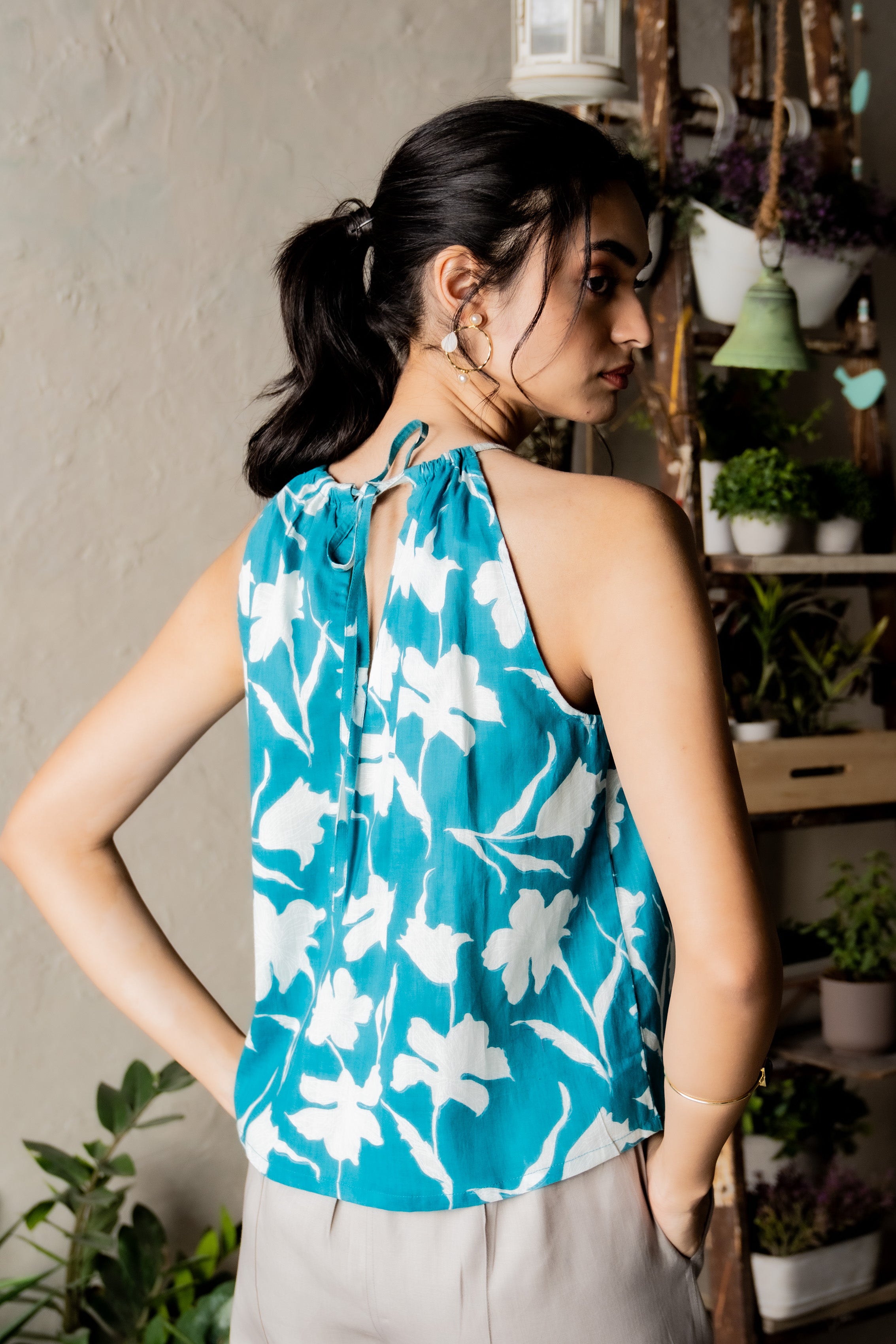 Channel the tranquil charm of nature with the Serene Shade Top. This halter-neck top, crafted from crisp and soft cotton, boasts a graceful leafy shadow print that captures the essence of serene adventures. The elegant tie-up neckline adds a sophisticated touch, making it a versatile piece for your wardrobe.