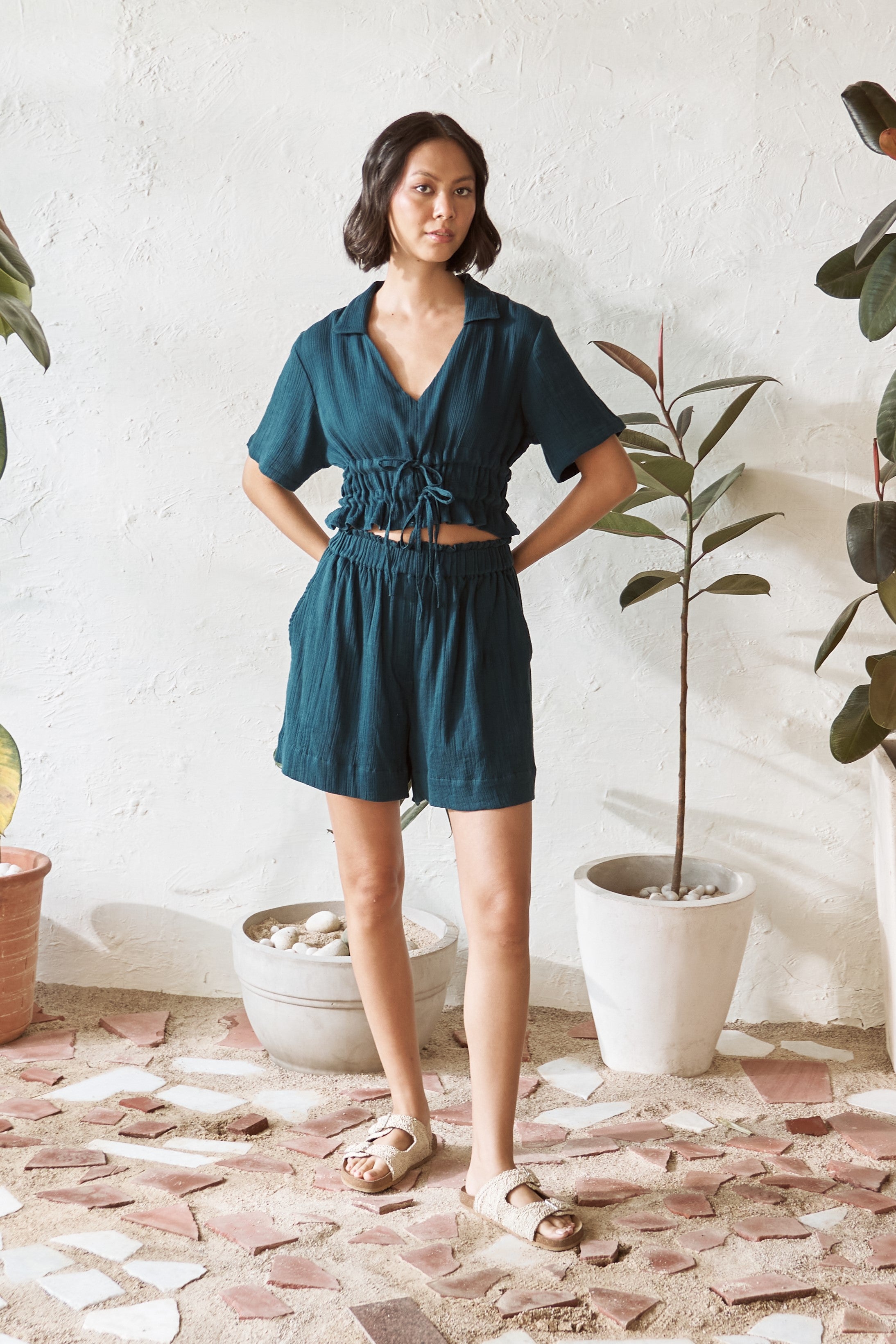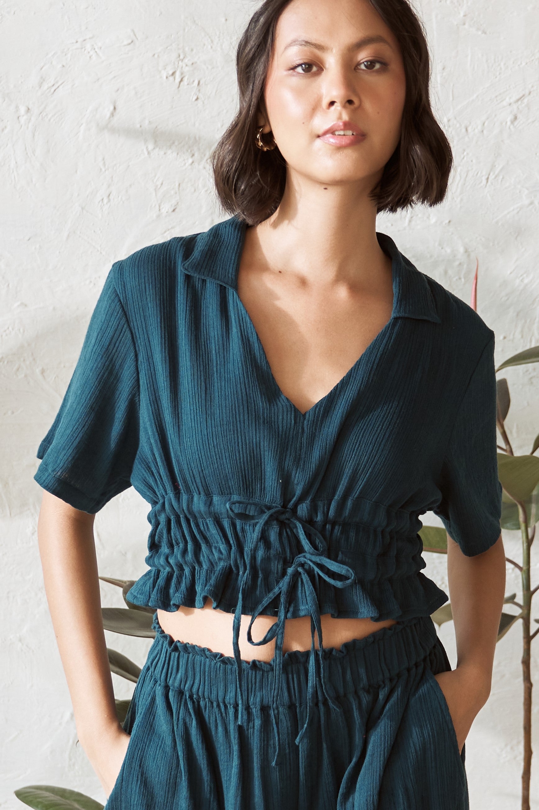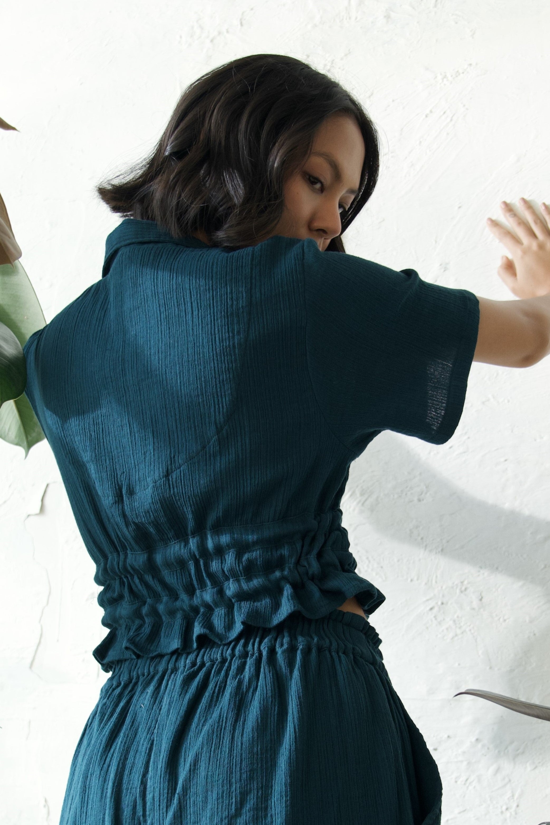 Make a statement this summer with our Crimson drawstring crop top. Crafted from lightweight crush fabric, this top offers breathable comfort with a vibrant pop of color. The adjustable drawstring detail lets you tailor the fit to your liking, making it as versatile as it is stylish. Pair it with high-waisted pants for an effortlessly chic look that’s perfect for sunny days and casual outings.