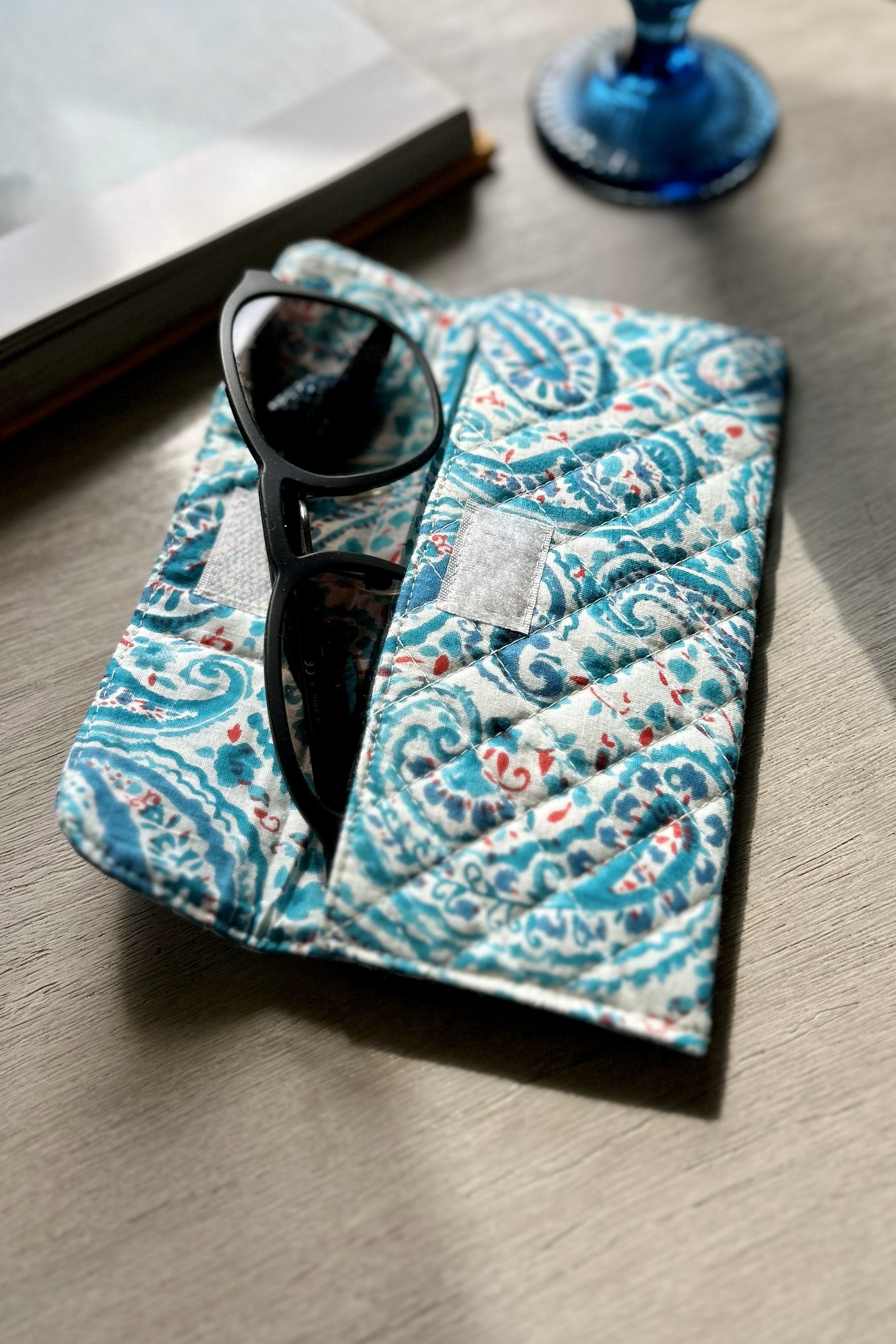 Carry along lightweight aviator pouch, tailored to shield your eyewear from scratches and minor impacts on the go. Something that you look for when you want to get rid of a robust hardcase for your everyday. Handmade from fabric, this quilted cover has a foam layering. A foldable cover securely fastened with a velcro.
