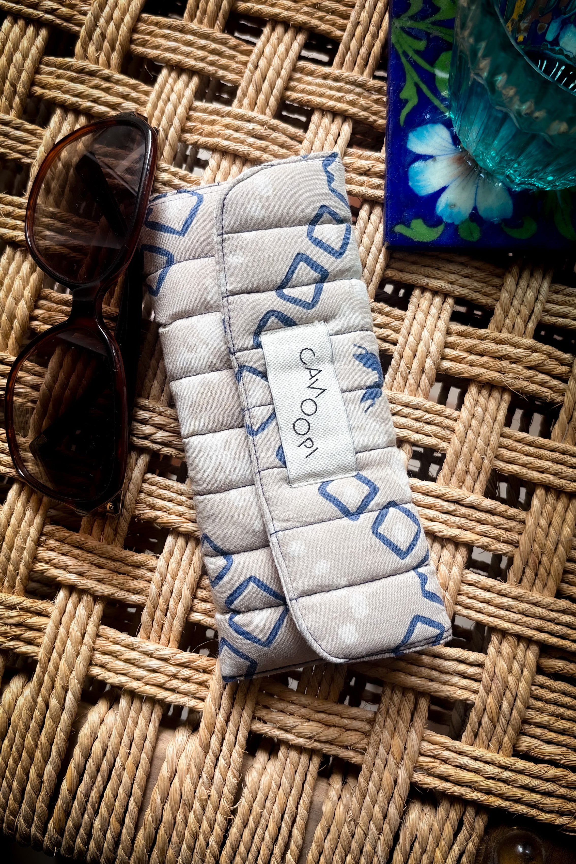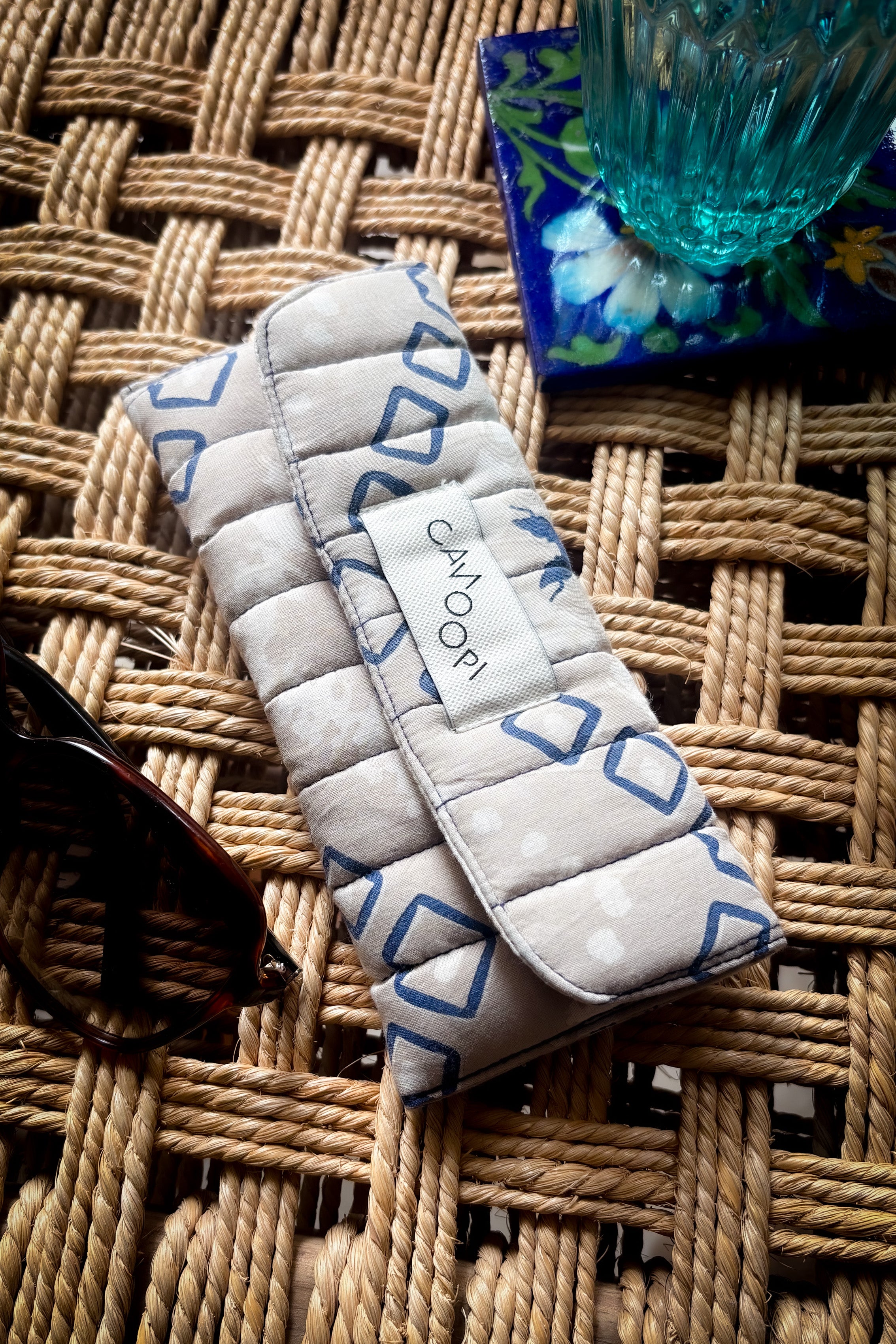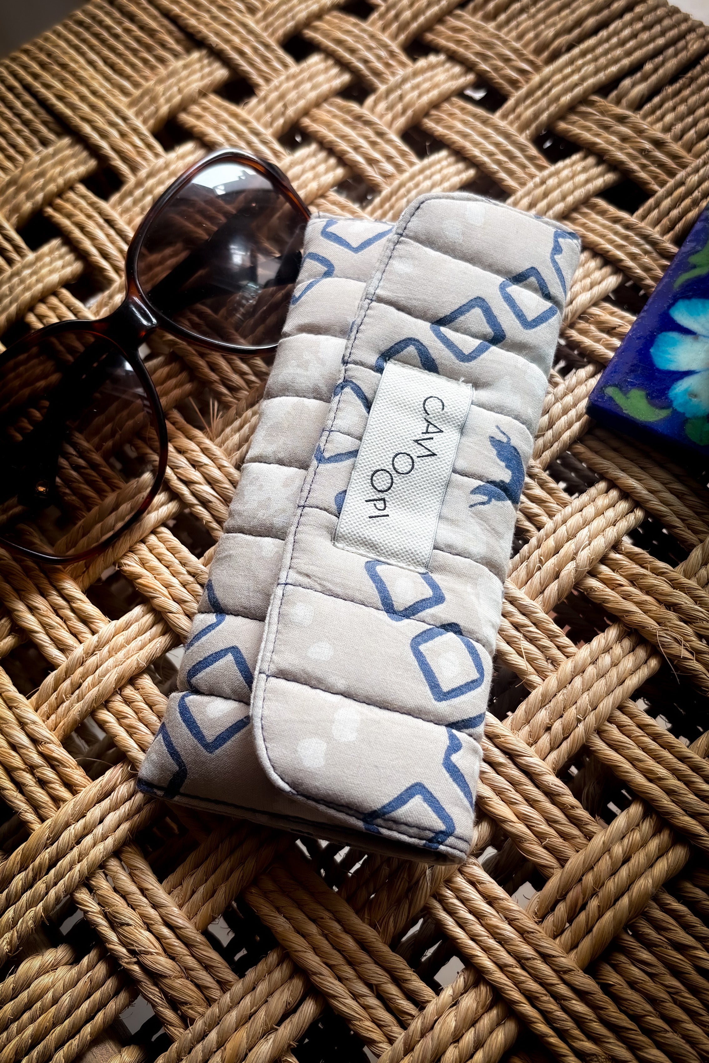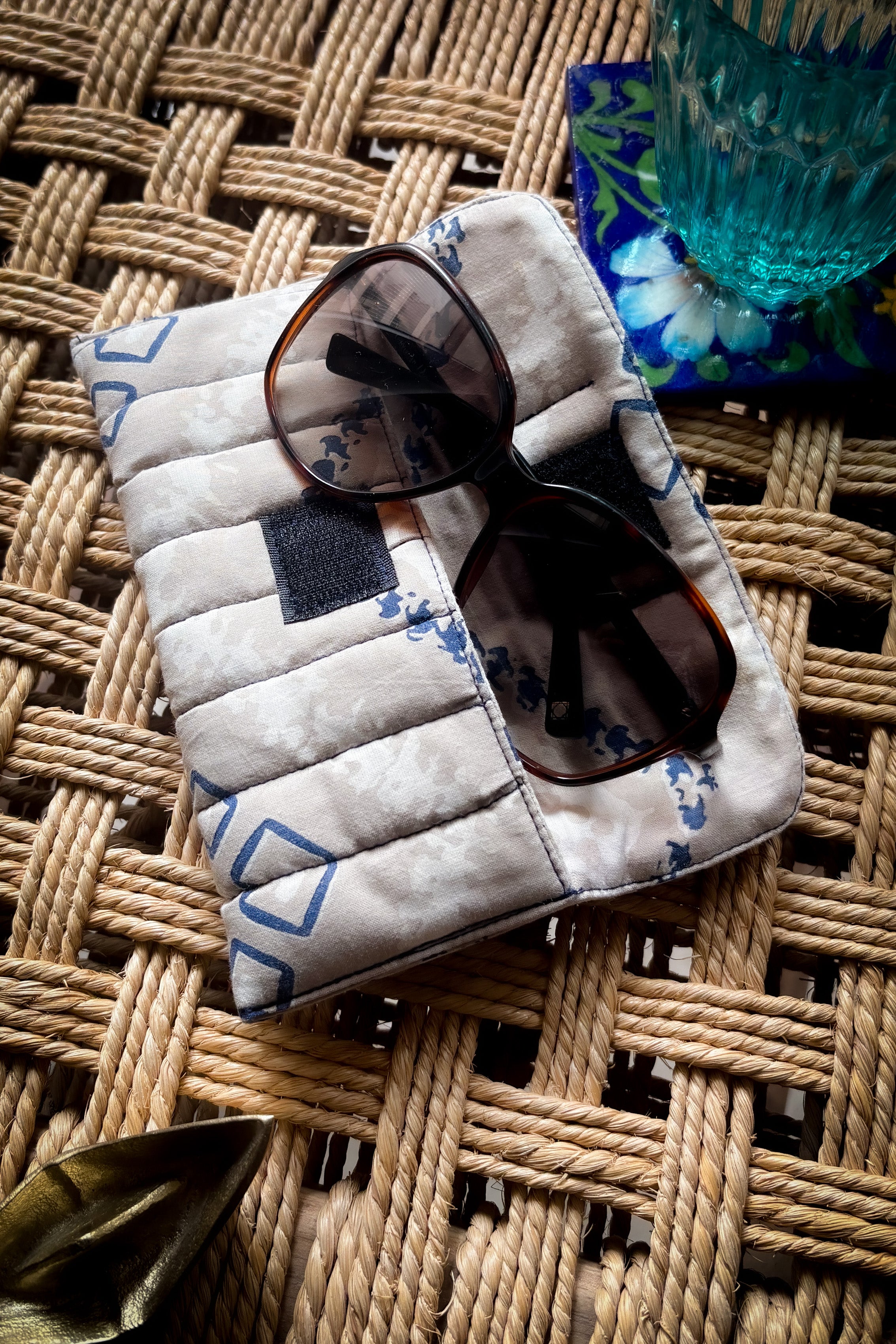 Wrap your sunglasses in this clever protective cover! The plush quilted fabric and foam padding team up to shield your frames from scratches and impacts, while a sturdy velcro snap keeps everything locked in place. Its smart foldable design collapses flat for easy packing, so you get serious protection without the weight.