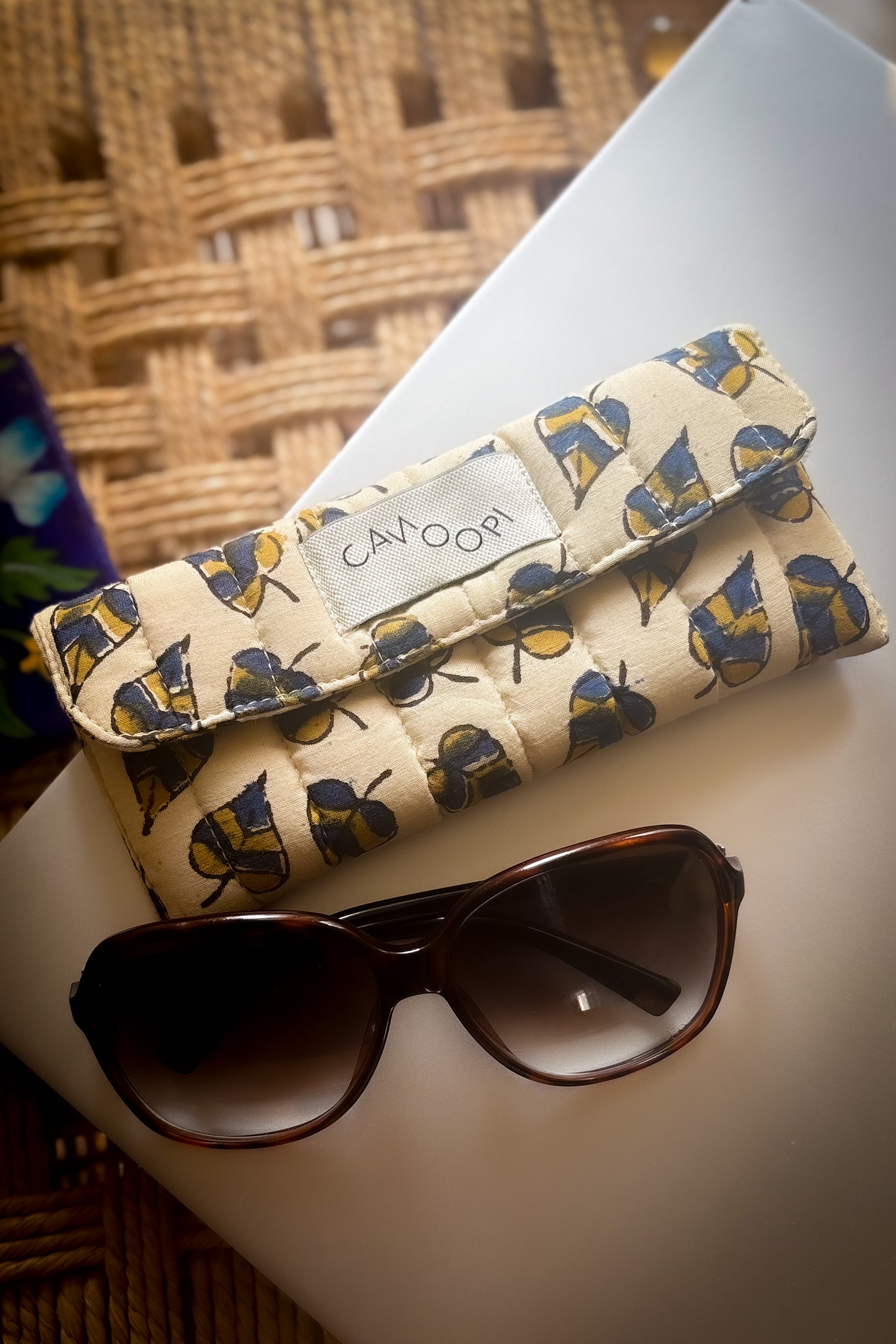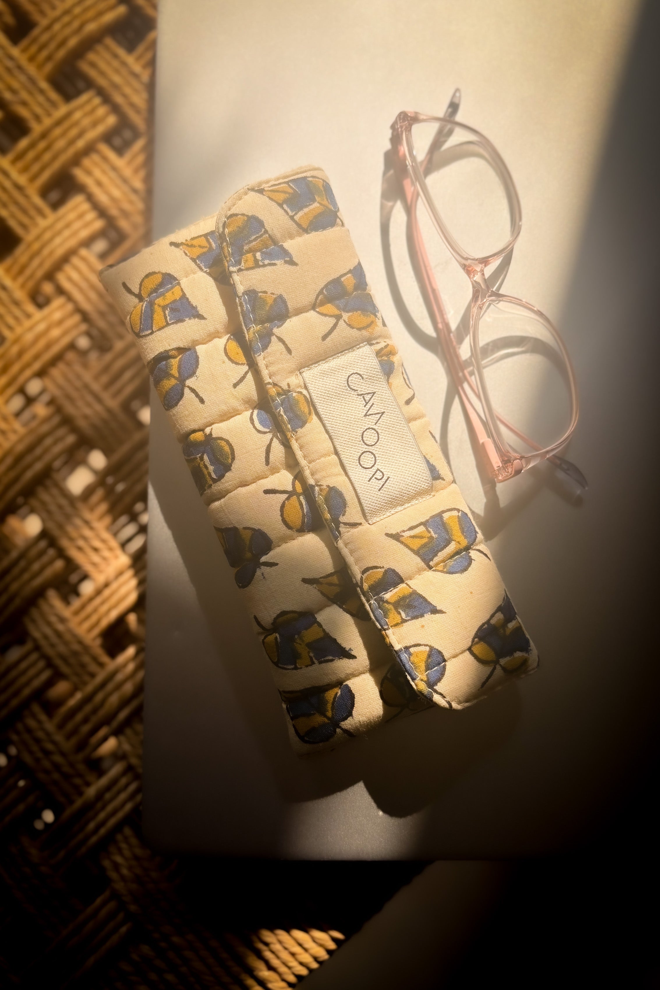 Nature-inspired style meets practical protection! This leafy sunglass case features a soft quilted exterior and cushioned foam layer that work together to defend your frames against scratches and bumps. A secure velcro fastener holds everything snugly in place, while the clever fold-flat design packs down small for travel. Get the protection your shades deserve without sacrificing bag space.