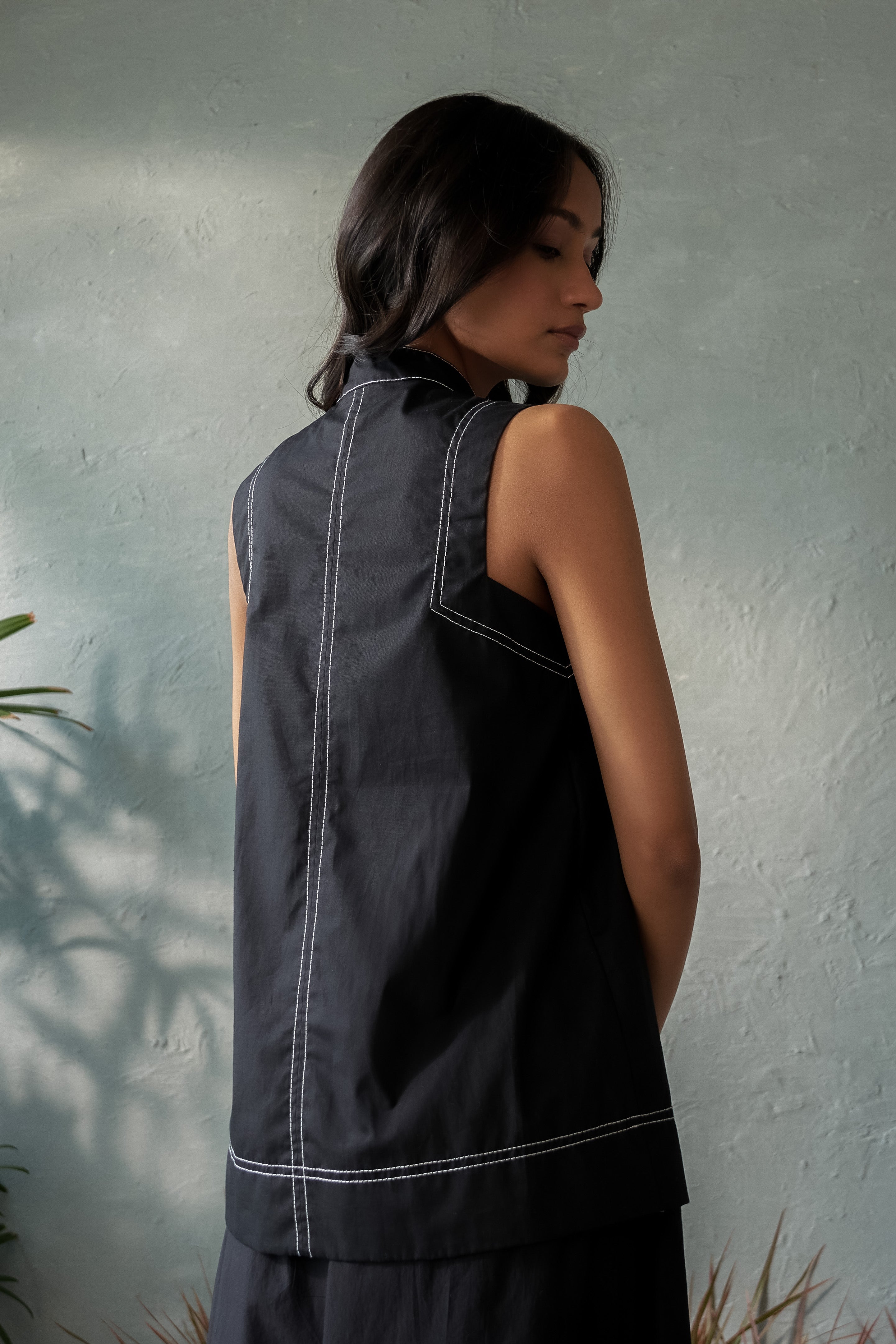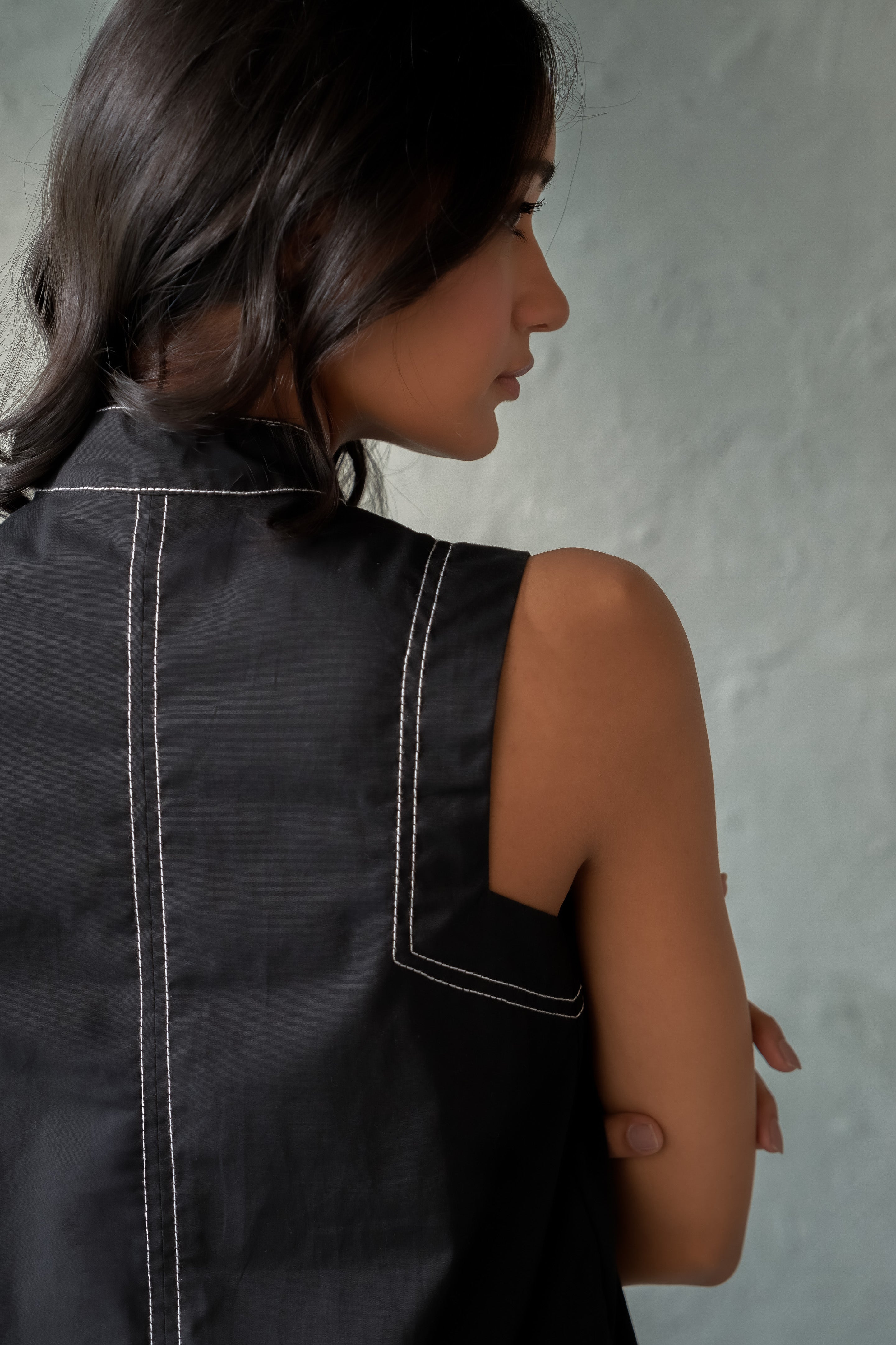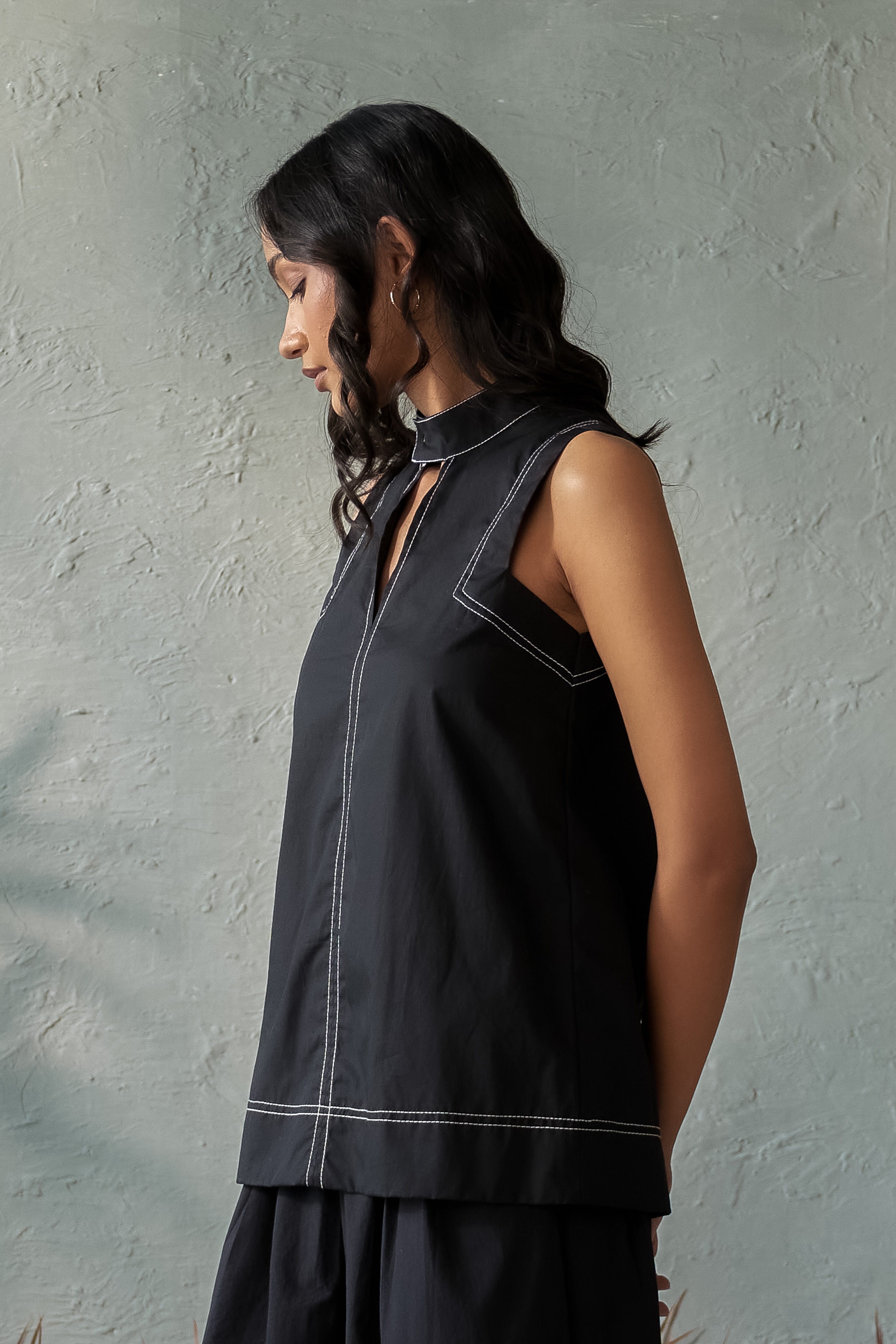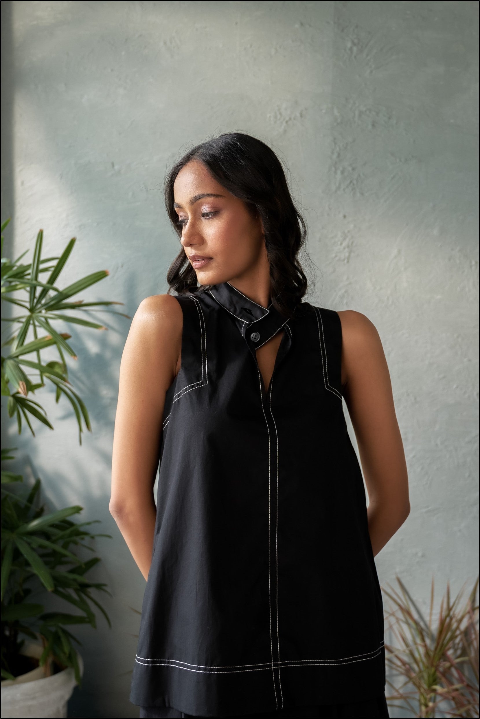 Elevate your everyday style with this chic Neck Band Top crafted in premium black poplin. Featuring intricate stitch detailing along the neckline, this top combines classic elegance with modern sophistication. The sleek neck band adds a subtle yet distinct flair, making it perfect for both casual outings and dressier occasions. Crafted from soft, breathable fabric, this versatile piece can be paired effortlessly with your favorite denims, pants, skirts, or overlays for a stylish and comfortable look.