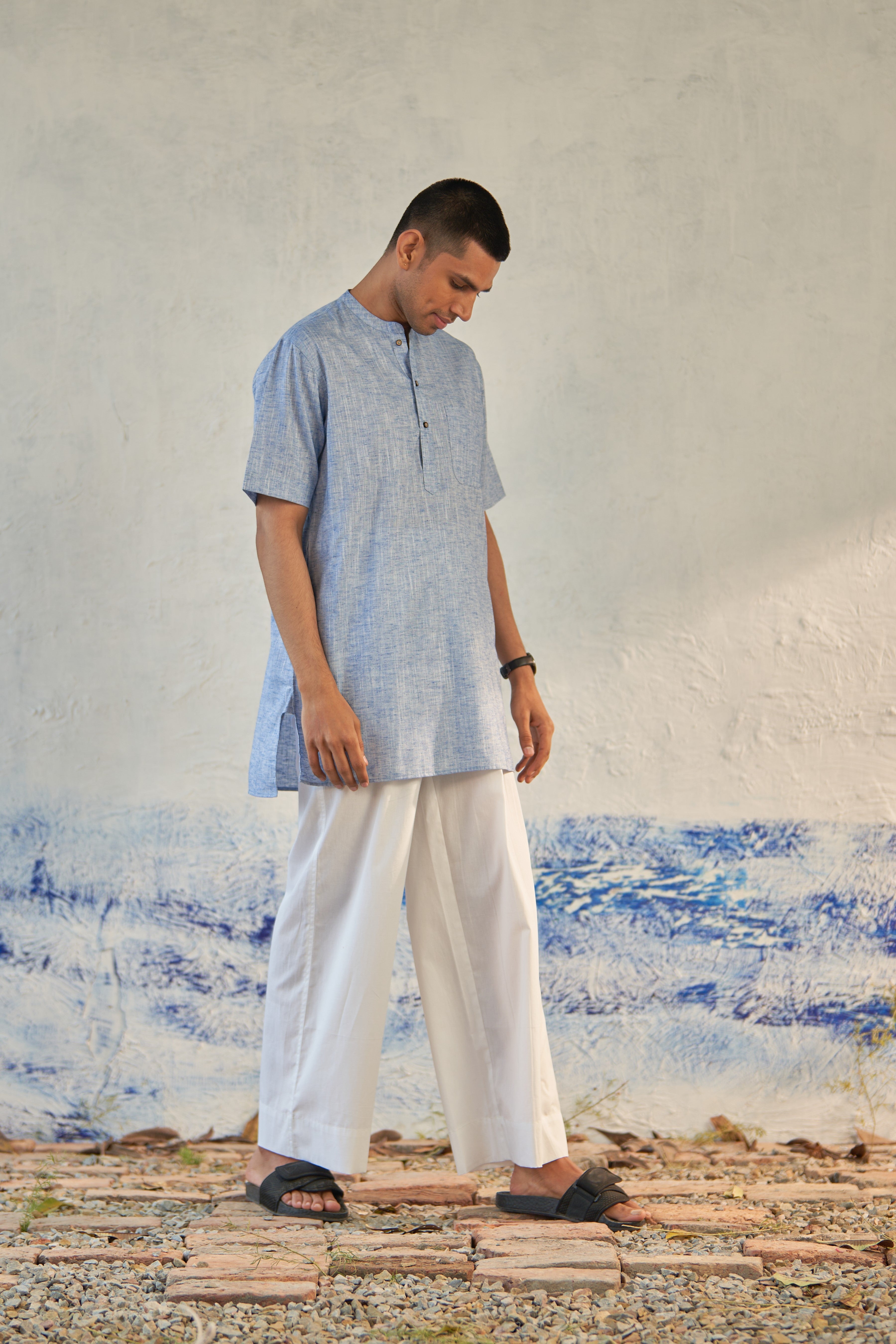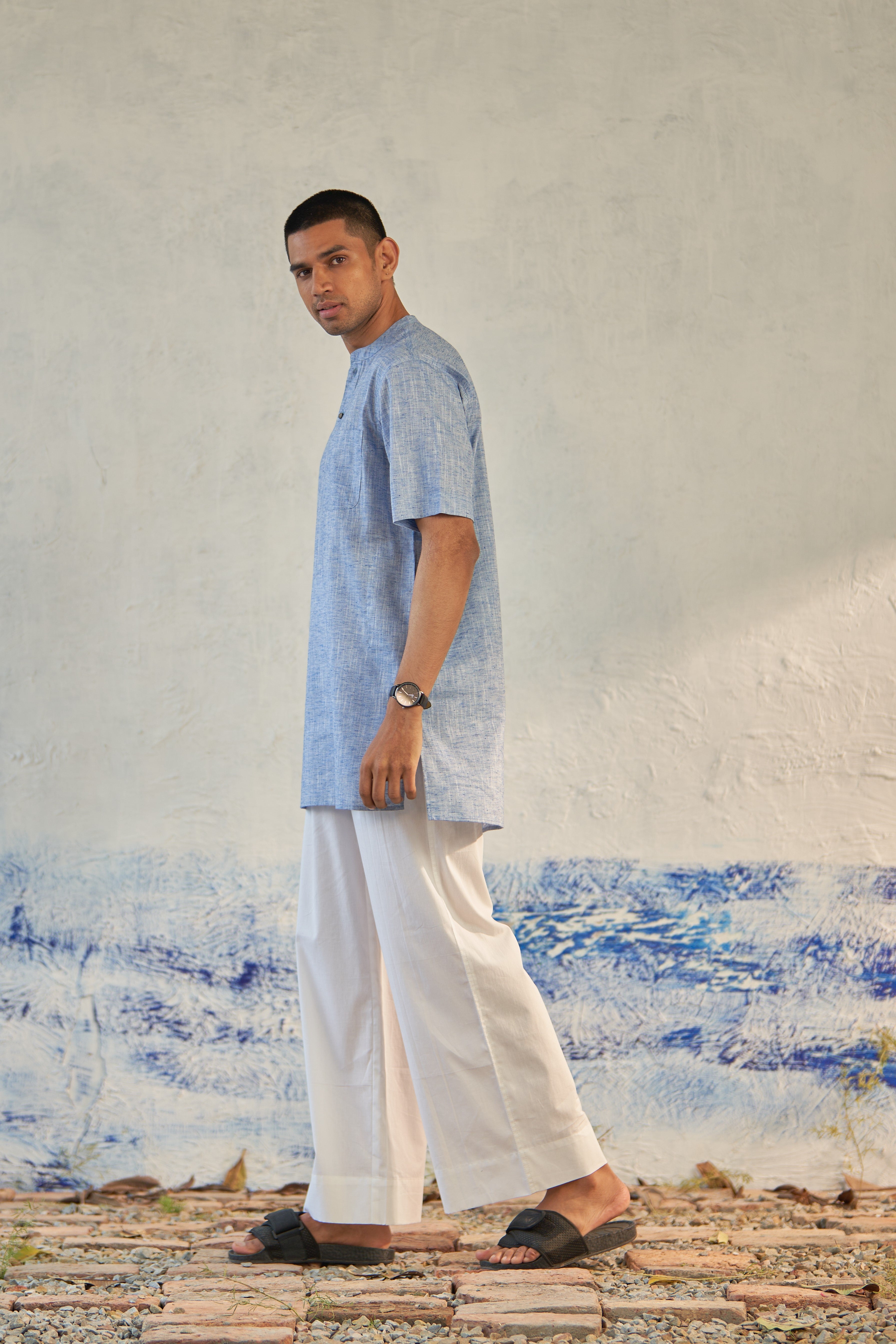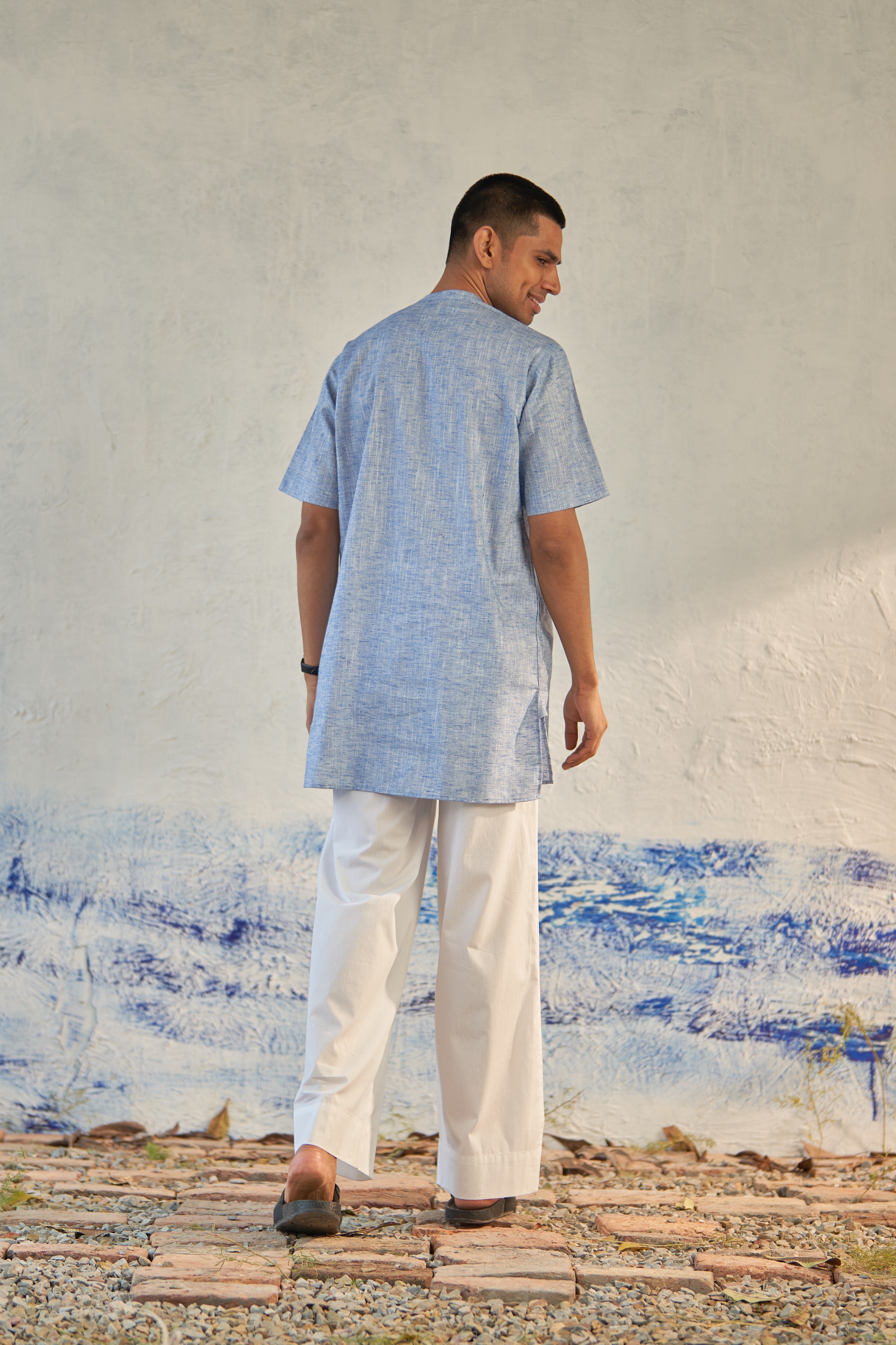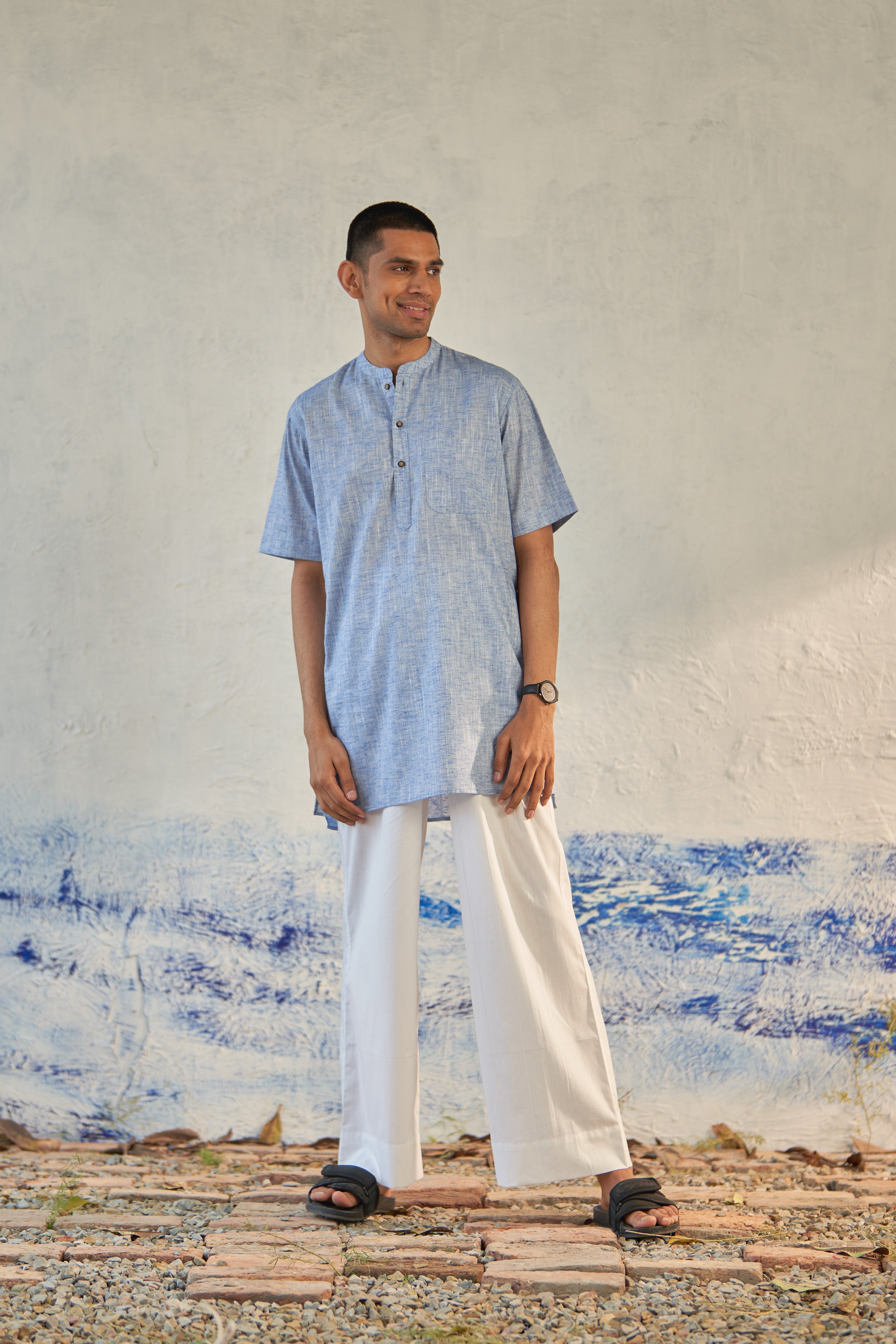 Whether paired with traditional pyjamas or styled with modern joggers or shorts, this kurta effortlessly elevates any ensemble. Redefine your style with refreshing simplicity.