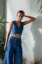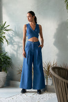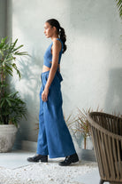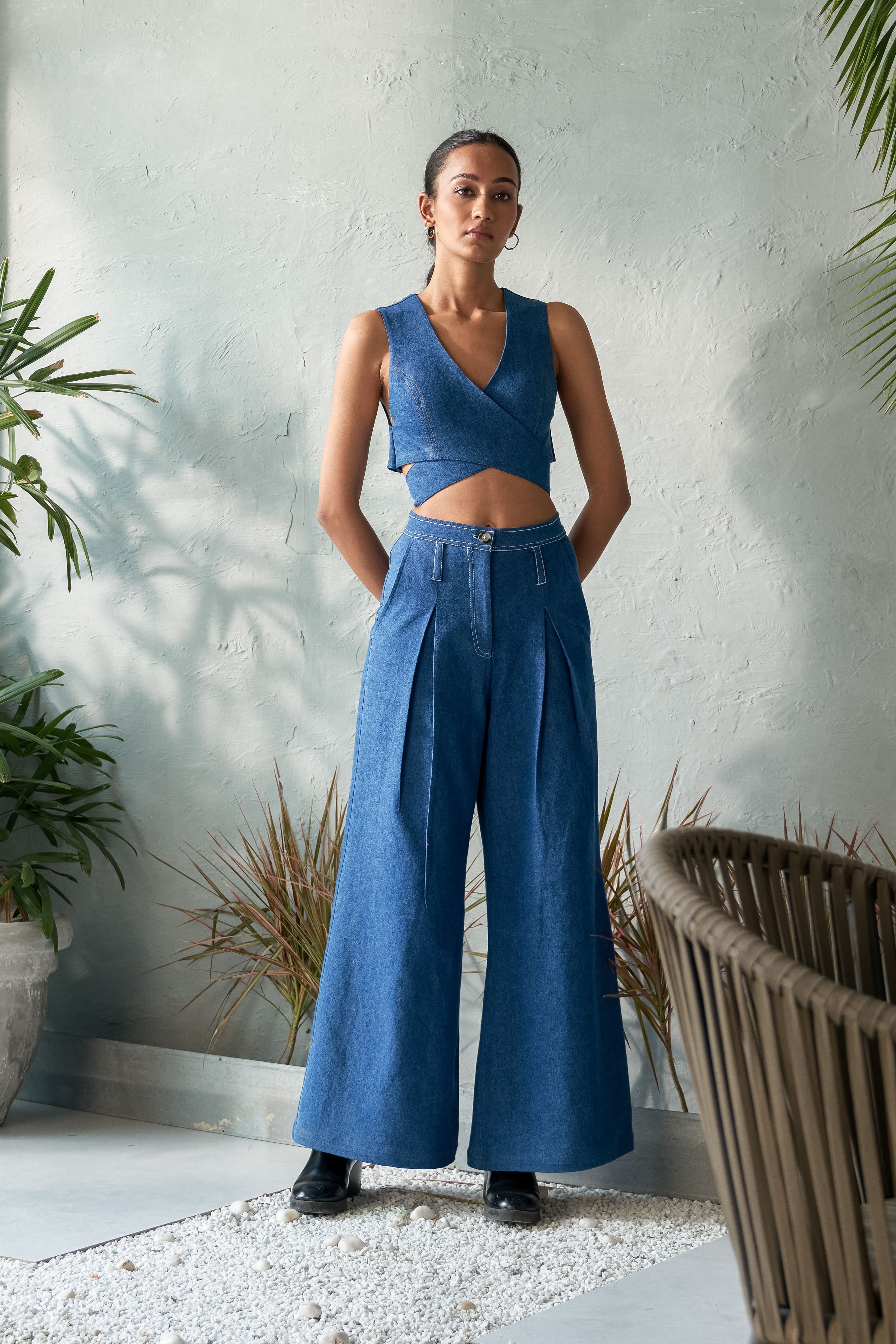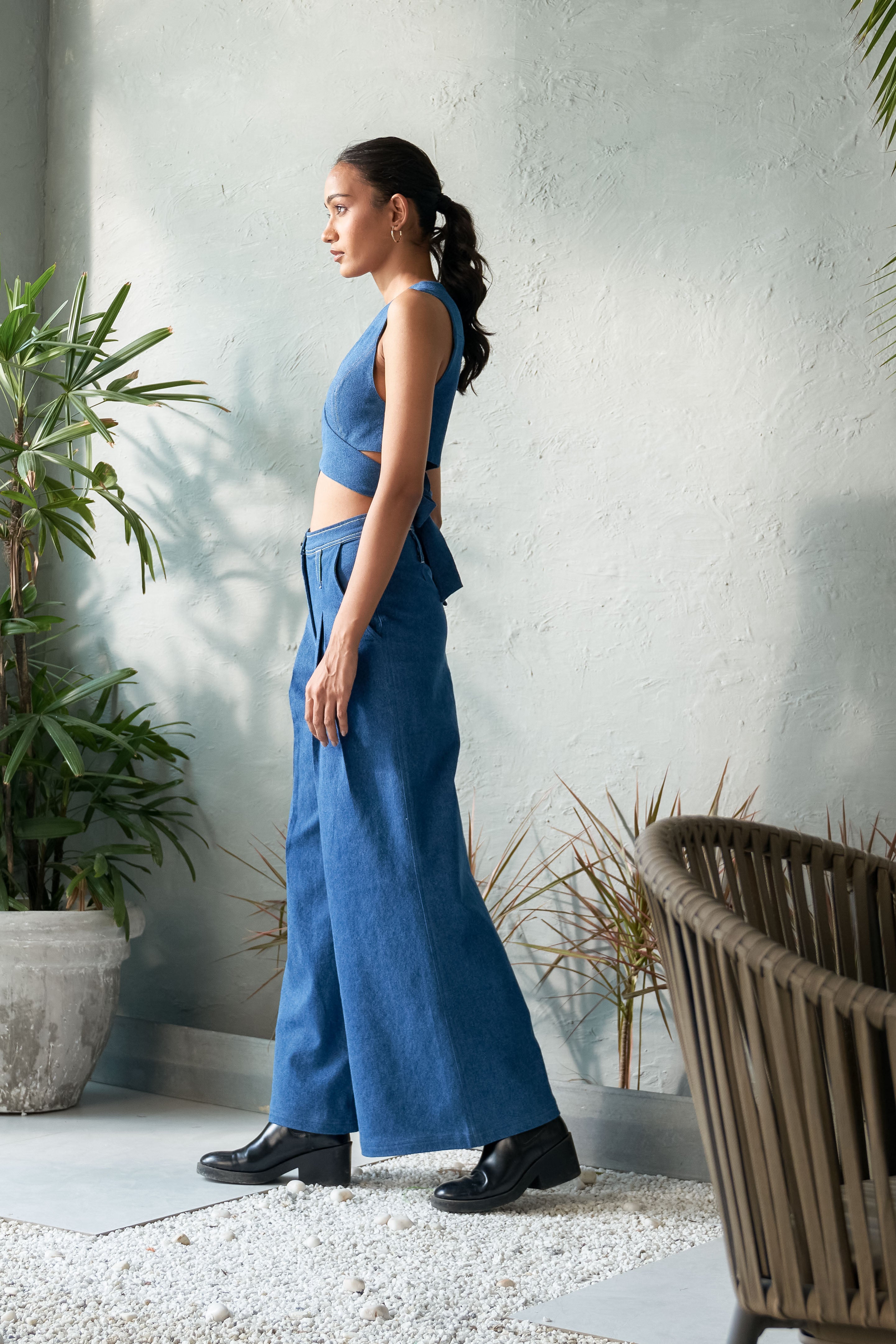 Step into effortless style with our Denim Back Tie-Up Top and Flared Pants Coord. This chic ensemble features a trendy back-tie detail on the top, adding a playful and feminine touch. The denim top pairs perfectly with the high-waisted flared pants, giving a flattering silhouette that elongates your legs.
