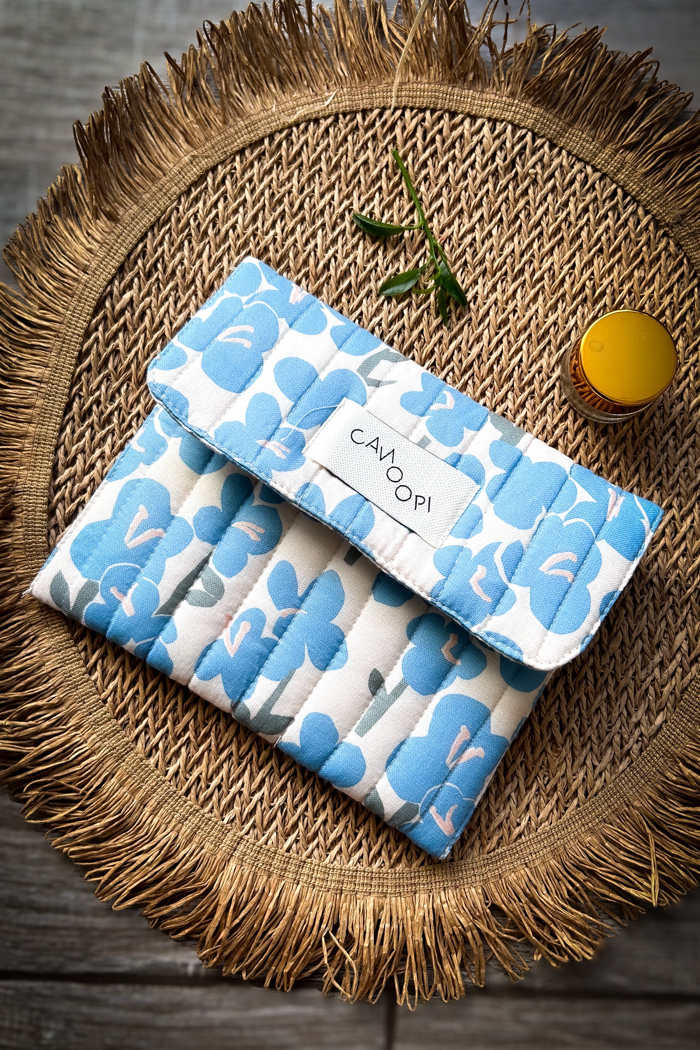 Each pouch is handmade with fabric, featuring quilted foam layering for lightweight protection. The pouches offer versatile utility, whether for organizing your larger essentials or stashing smaller knick-knacks. The foldable cover with secure velcro fastening ensures you can easily access your belongings, making them perfect for everyday use or travel.