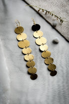 A pair of statement earrings with interlocking discs handcrafted in brass.