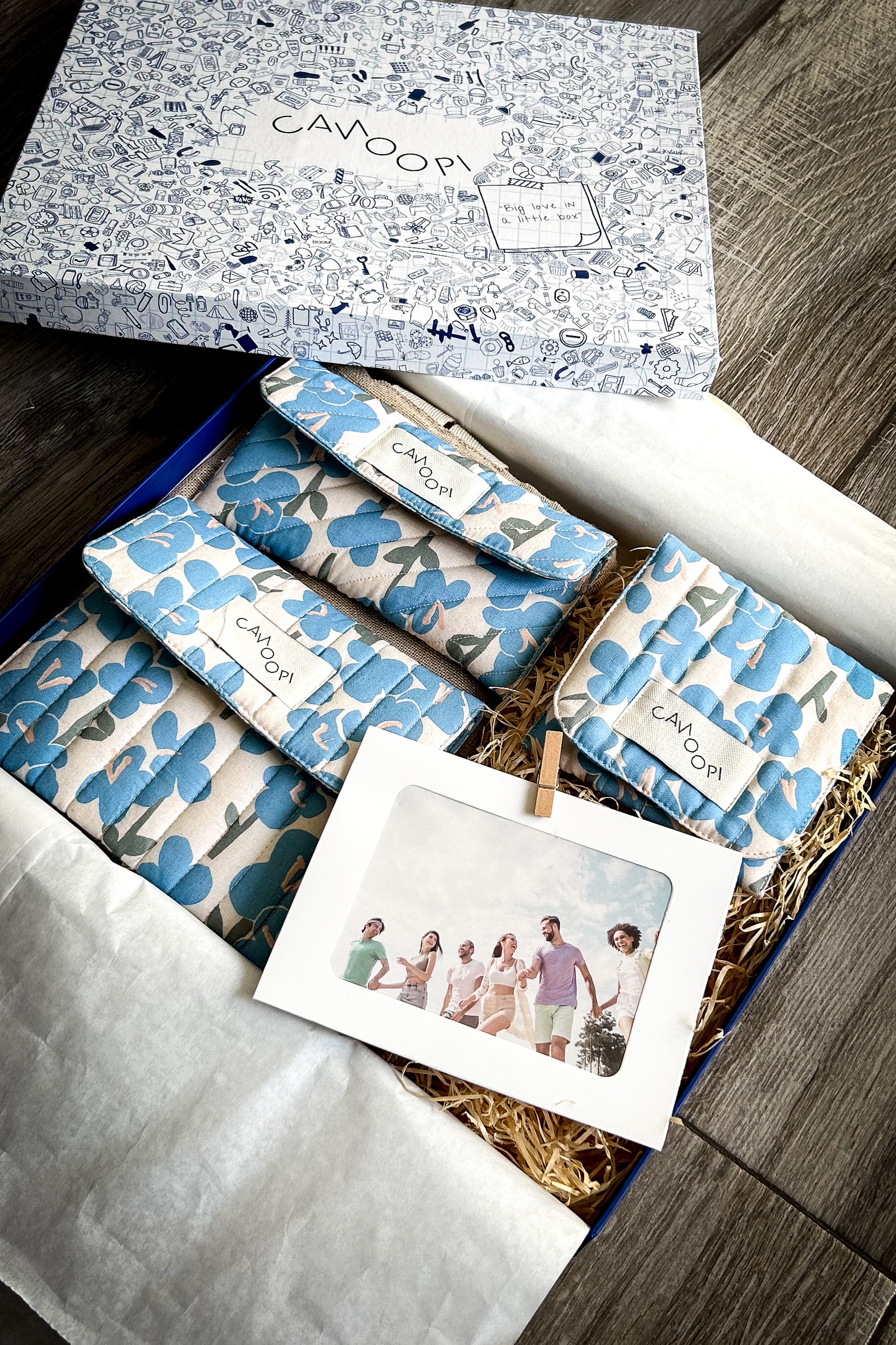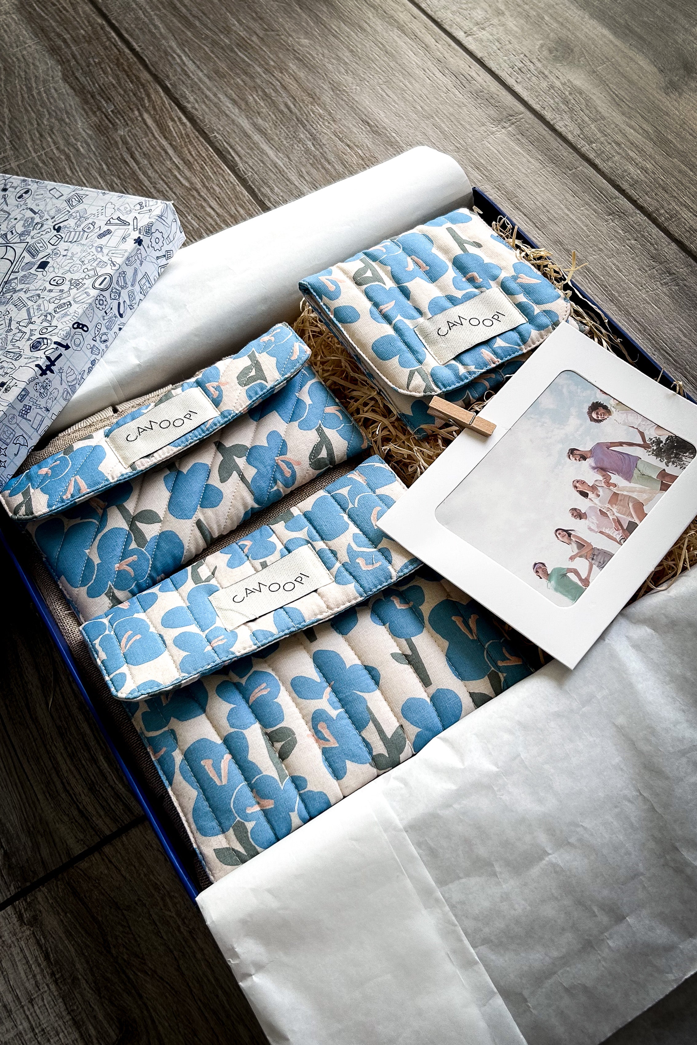 Dive into a burst of floral charm with the Treasure Trio Gift Box in the cheerful Blue Daisy Print. It makes for a perfect gift.