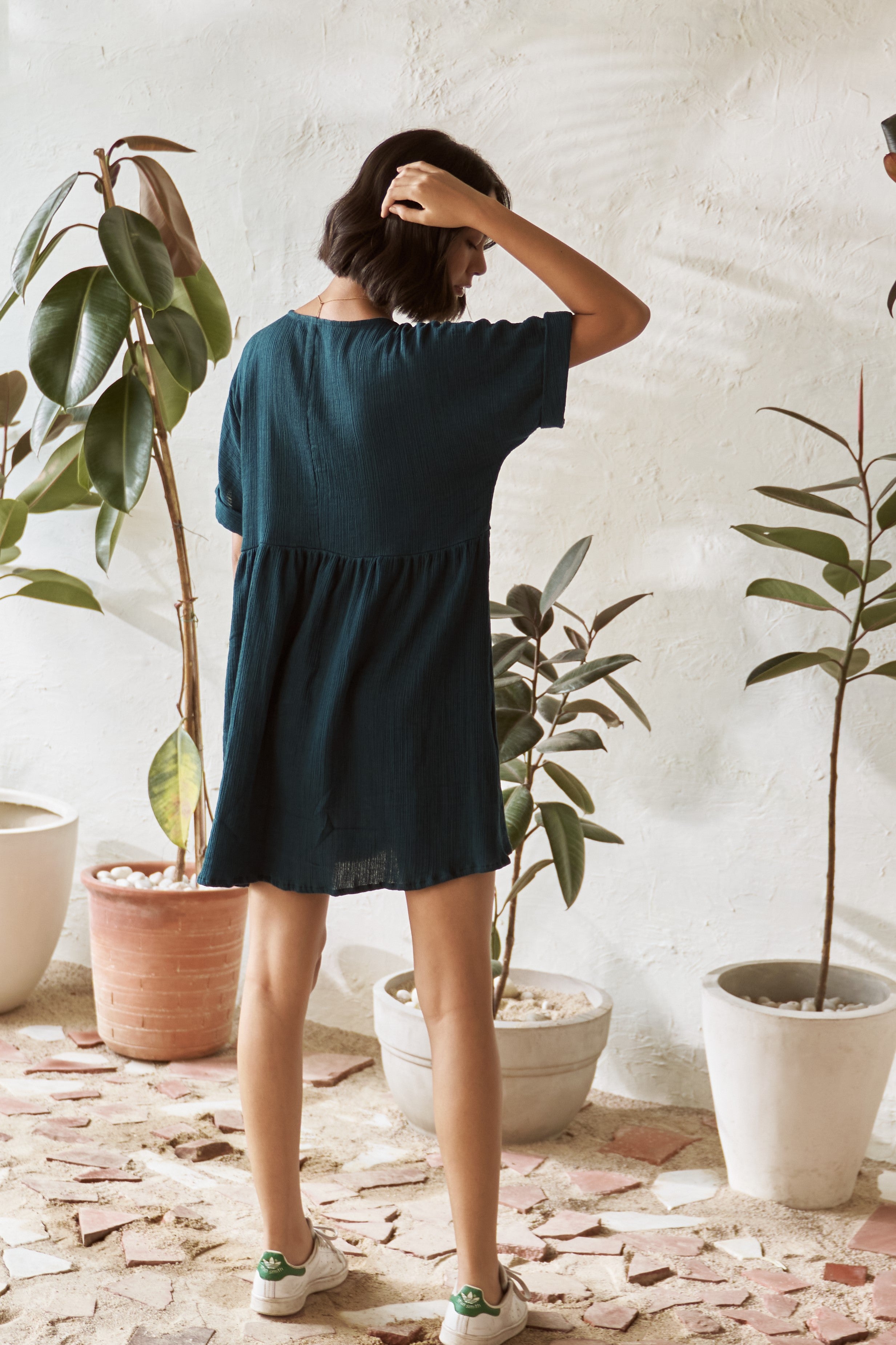 Meet the Canoopi Waterlily Dress, designed for effortless everyday elegance. This short dress provides an easy, relaxed fit, perfect for days when you want to look stylish without the fuss. With its simple yet refined design, the dress is ideal for casual outings and errands, combining comfort with chic style. Just slip it on, and you're ready to explore your day in comfort and confidence. The Canoopi Teal Dress is the wardrobe essential you'll turn to again and again for a stylish, carefree look.
