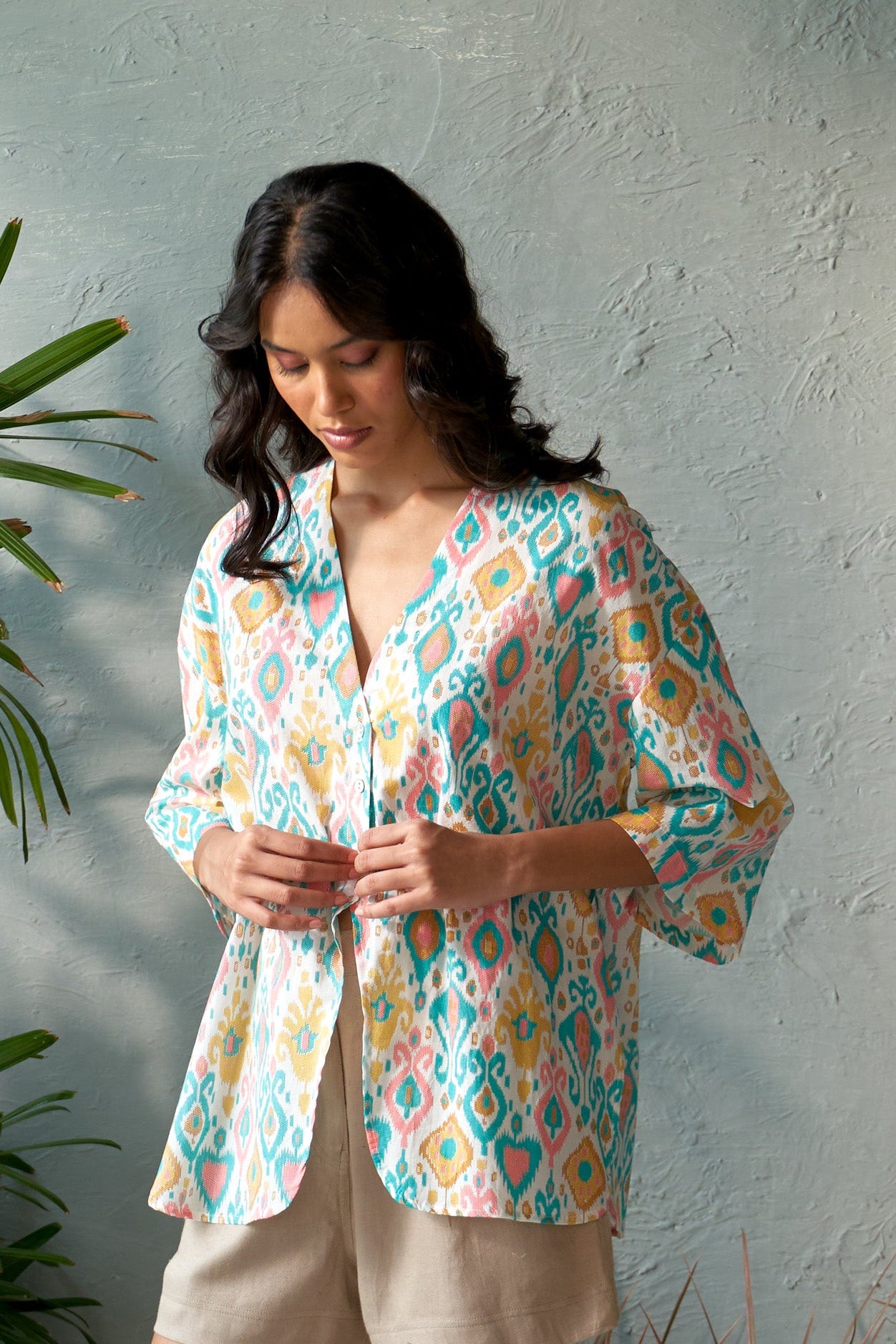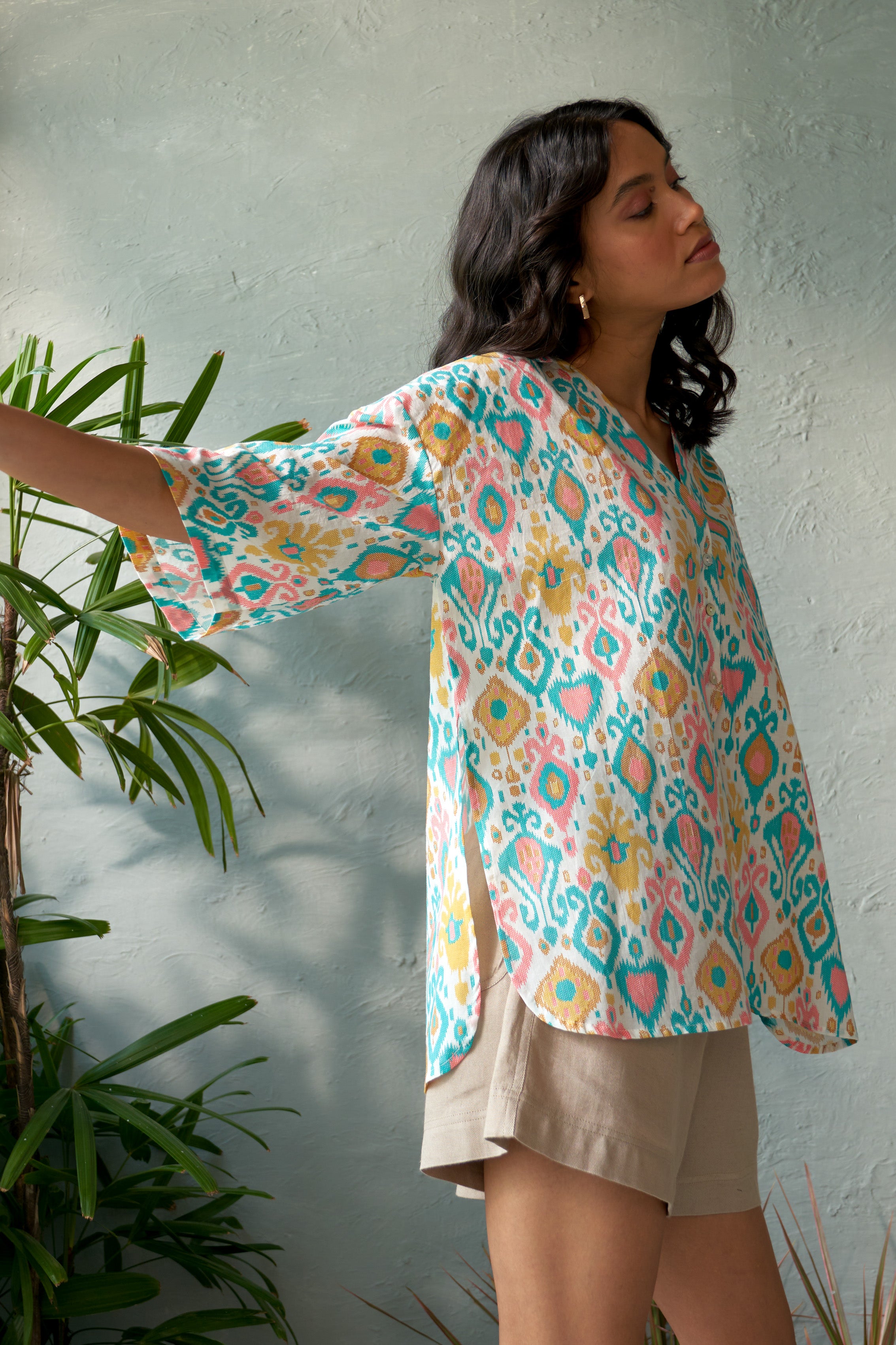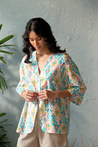 Brighten up your wardrobe with this oversized, lightweight cotton shirt. Designed for both comfort and style, it features a multicolored, vibrant palette that adds a playful touch to any outfit. The standout U-shaped front panels create a unique silhouette, making this shirt a perfect choice for casual outings or artistic layering. Effortlessly chic and versatile, the Willow Shirt is your go-to for a relaxed yet fashion-forward look.